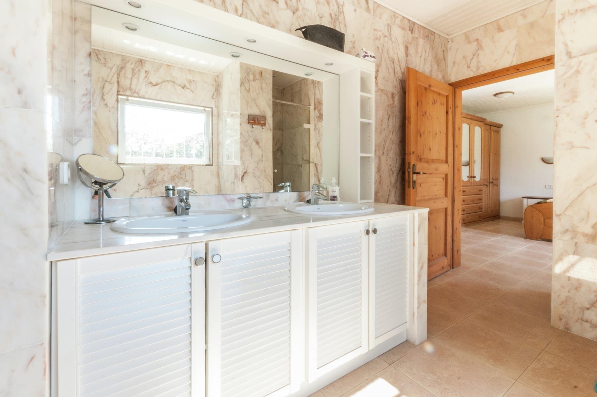 Stueetage: (sofastue(Fjernsyn(fladskærm, parabol, Hollandske TV-kanaler, Tyske TV-kanaler), pejs, DVD-afspiller, CD-afspiller, stereoanlæg), køkken-alrum(spisebord, komfur(glaskeramisk), kaffemaskine, ovn, mikrobølgeovn, opvaskemaskine , køleskab), Soveværelse med badeværelse(king size-seng(180 x 200 cm), Fjernsyn(fladskærm, Hollandske TV-kanaler, Tyske TV-kanaler), Bubble bath, bruser, 2x håndvask, toilet, klimaanlæg), toilet(håndvask, toilet), Repos, bryggers(tørretumbler, vaskemaskine), have(privat, 325 m2), parkering, swimmingpool(privat, 9 x 4 m.)) På 1. etage: (soveværelse(dobbeltseng, balkon, klimaanlæg), soveværelse(dobbeltseng(180 x 200 cm), balkon, klimaanlæg), badeværelse(bruser, håndvask, toilet))