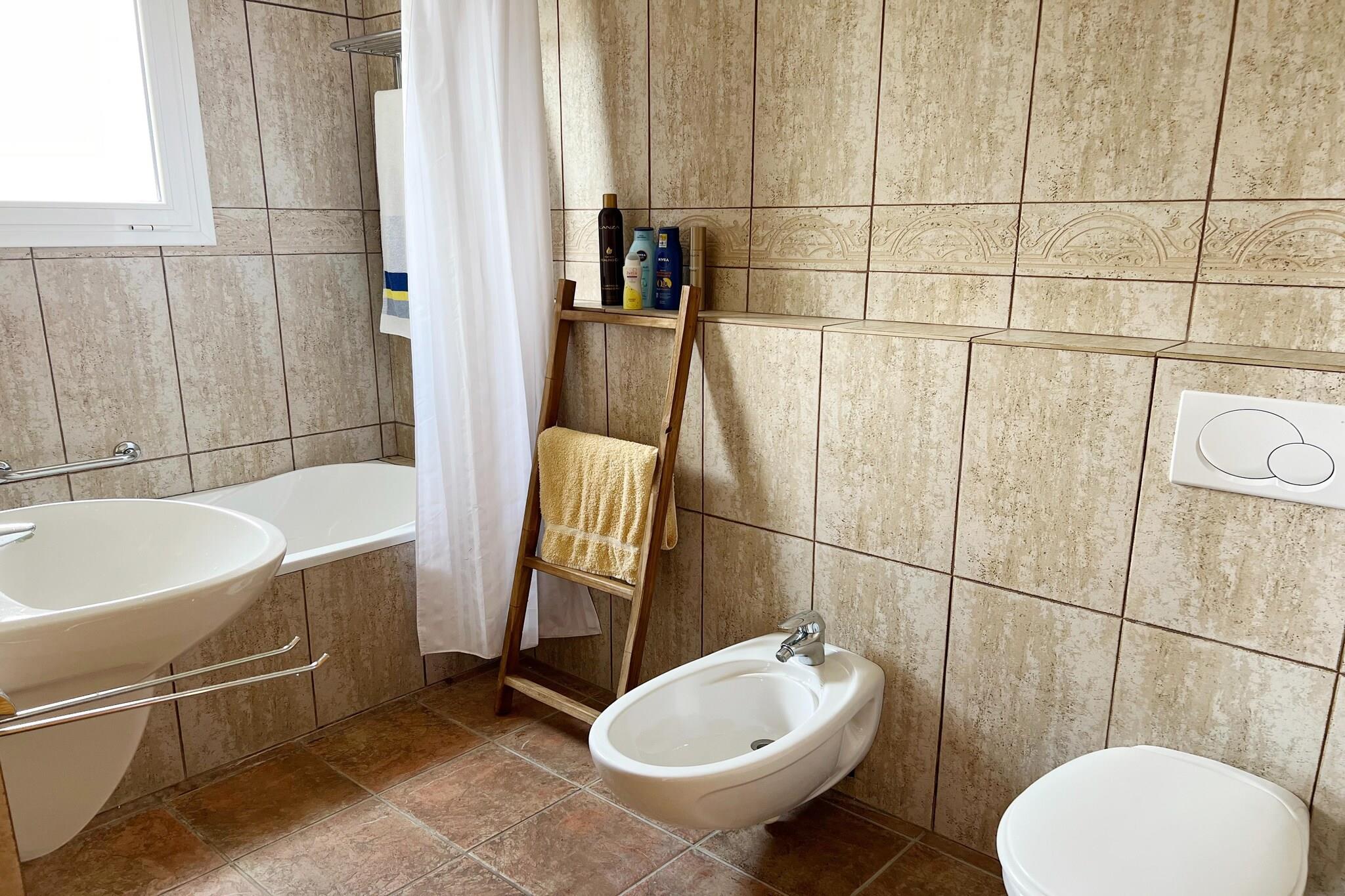 Stueetage: (Stue(Fjernsyn(parabol), sofahjørne, klimaanlæg), køkken-alrum(komfur(glaskeramisk), kaffemaskine, ovn, mikrobølgeovn, opvaskemaskine , køle-fryseskab), soveværelse(2x køjeseng(80 x 200 cm), klimaanlæg), Soveværelse med badeværelse(dobbeltseng(180 x 200 cm), bruser, håndvask, toilet, klimaanlæg), badeværelse(badekar, håndvask, toilet), veranda) På 1. etage: (soveværelse(dobbeltseng(180 x 200 cm), klimaanlæg), soveværelse(dobbeltseng(180 x 200 cm), tremmeseng, klimaanlæg), Soveværelse med badeværelse(dobbeltseng(180 x 200 cm), bruser, håndvask, toilet, klimaanlæg), Soveværelse med badeværelse(dobbeltseng, badekar, håndvask, toilet, klimaanlæg), badeværelse(bruser, håndvask, toilet)) Kælderetage: (garage(adgang udefra)) bruser(udendørs), vaskemaskine, have(privat, indhegnet, anlagt have, ikke anlagt have, oplyst), havemøbler, grill, swimmingpool(privat, 10 x 5 m.)