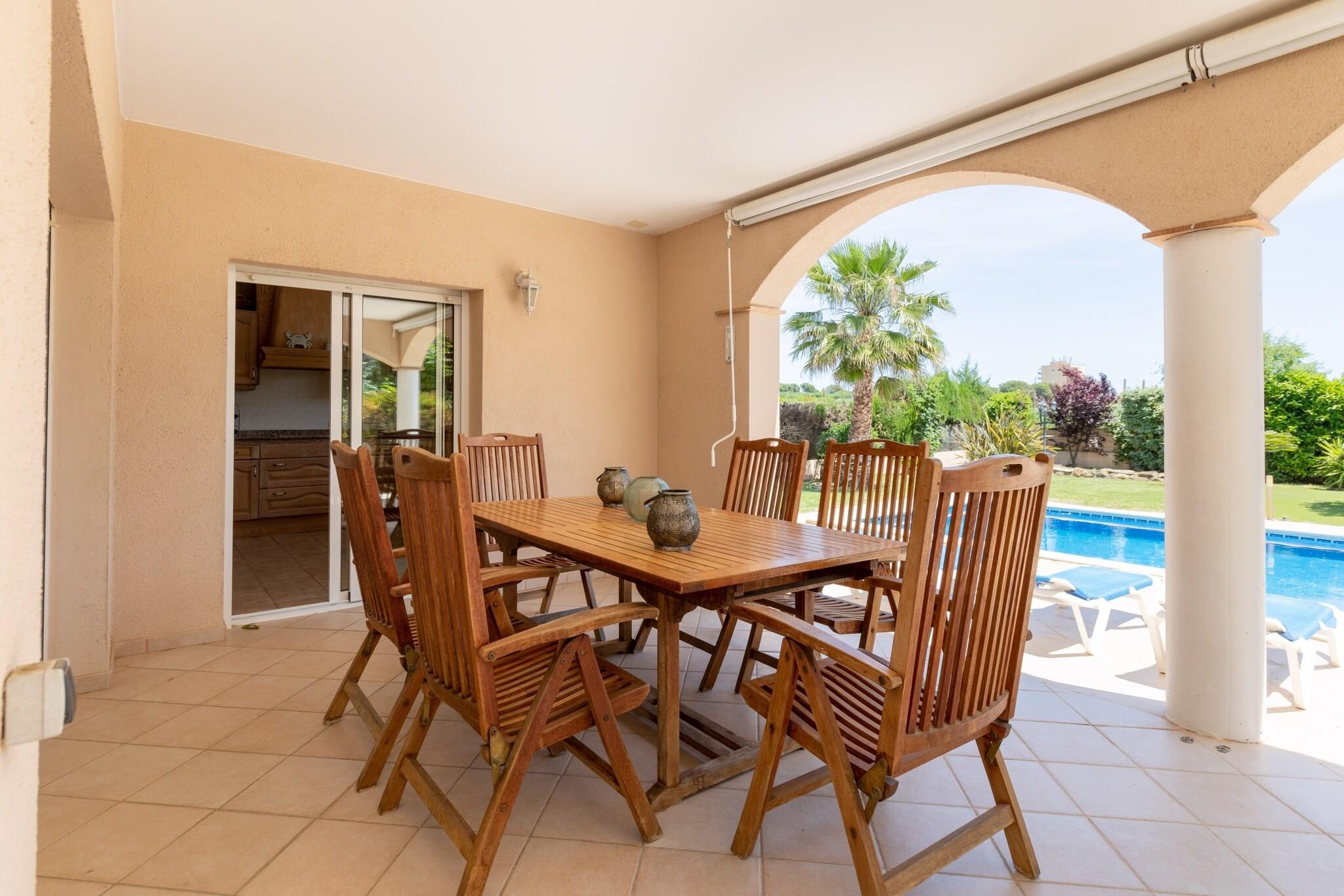 Fritliggende villa med privat swimmingpool nær landsbyen og stranden på Costa Brava. Du kan opleve en vellykket ferie i dette smukke, luksuriøse sommerhus. Villaen har 4 soveværelser, 3 badeværelser, en elegant møbleret og rummelig stue med lyse farver og et veludstyret stort køkken. Du kan spise på den smukke terrasse eller nyde den store private swimmingpool. Eller slap af på liggestole i solen og nyd det dejlige vejr. Og forbered et lækkert måltid sammen med familie eller venner på grillen. Villaen ligger meget tæt på landsbyen Sant Pere Pescador, kendt for vandsporten, de brede sandstrande og den tilstødende naturpark.