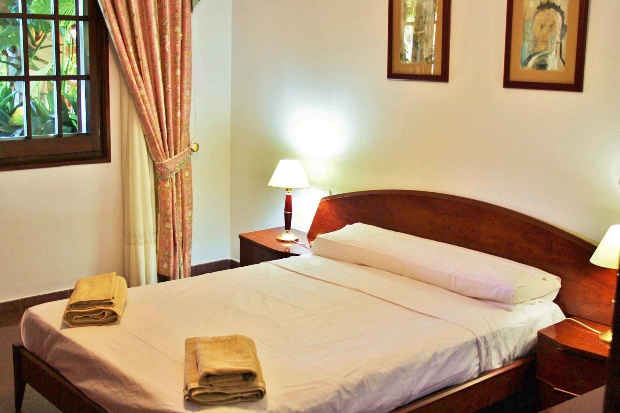 Stueetage: (Stue(Fjernsyn, pejs, DVD-afspiller), åbent køkken(spisebord, kogeplade(Komfur med fire kogeplader), elkedel, brødrister, emhætte, kaffemaskine, ovn, combi-mikroovn, opvaskemaskine , køle-fryseskab), soveværelse(køjeseng), soveværelse(enkeltseng), badeværelse(badekar med bruser, håndvask, toilet)) På 1. etage: (soveværelse(dobbeltseng(135 x 180 cm), balkon), soveværelse(dobbeltseng(135 x 180 cm), balkon), soveværelse(enkeltseng, enkeltseng), soveværelse(enkeltseng), badeværelse) tørretumbler, varme, terrasse, have, havemøbler, grill, swimmingpool(privat, 9 x 4 m.), barneseng, barnestol, strygebræt, strygejern