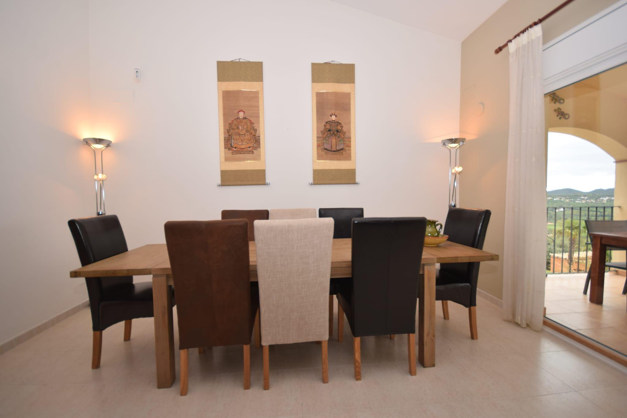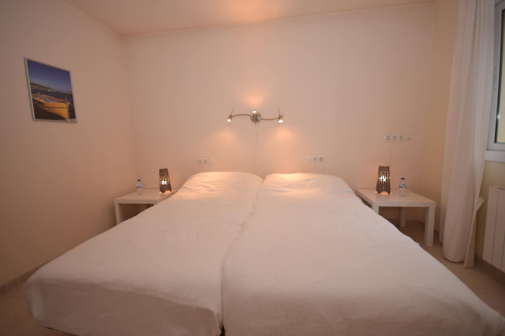 Stueetage: (Indgang (adgang via udendørs trappe), Køkken(kogeplade, elkedel, brødrister, kaffemaskine(kopper, kaffetragt), ovn, mikrobølgeovn, opvaskemaskine , køle-fryseskab), stue / spisestue(spisebord(8 personer), pejs, sofahjørne), soveværelse(enkeltseng(90 x 200 cm), enkeltseng(90 x 200 cm), klimaanlæg), Soveværelse med badeværelse(enkeltseng(90 x 200 cm), enkeltseng(90 x 200 cm), badekar med bruser, håndvask, toilet, bidet, klimaanlæg), badeværelse(bruser, håndvask, toilet)) På 1. etage: (soveværelse(enkeltseng(90 x 200 cm), enkeltseng(90 x 200 cm), klimaanlæg), soveværelse(dobbeltseng(180 x 200 cm), klimaanlæg), badeværelse(bruser, håndvask, toilet)) vaskemaskine, balkon, terrasse, havemøbler, solstole, grill, Parasol, swimmingpool(privat, 7 x 4 m.), barneseng, barnestol