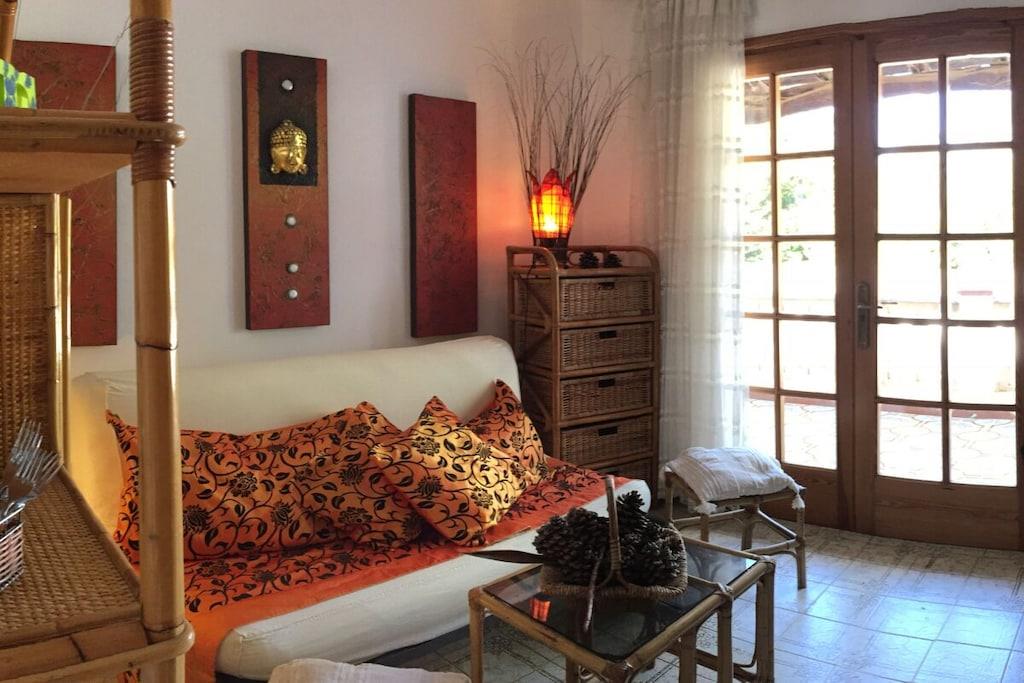 Besøg vores hyggelige villa, der ligger direkte ud til havet i anden række. 350 m² ren ferie venter dig med tre dobbeltværelser, hvoraf to er designet som stue/soveværelser. Med tre komplette badeværelser har hvert dobbeltværelse sit eget private badeværelse. En stue/soveværelse, "studiet", er også fuldt udstyret med køkken, balkon og separat adgang. Derudover tilbydes der et fuldt udstyret køkken med spiseplads, en spisestue til 12 personer, en stue og et kontor med aircondition. En stor 100 m² terrasse (indre gårdhave) har forskellige plantearter samt en koi-fontæne. En stor have omkring huset har en grill.