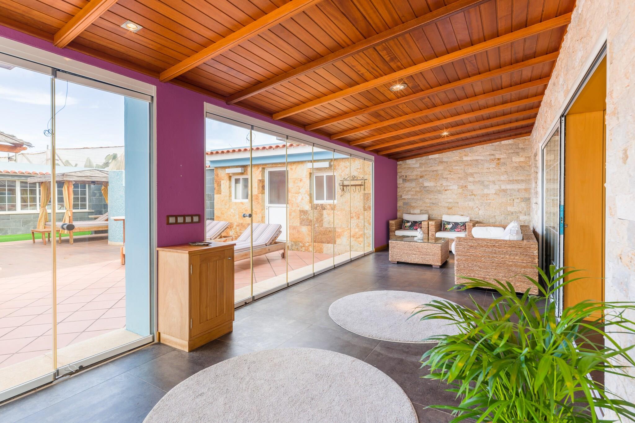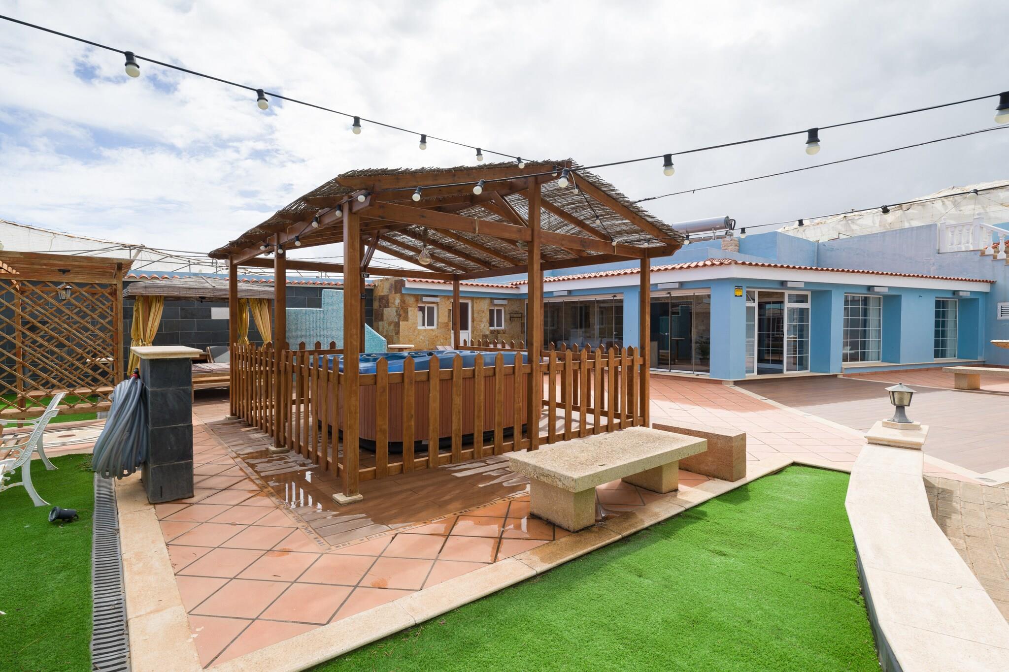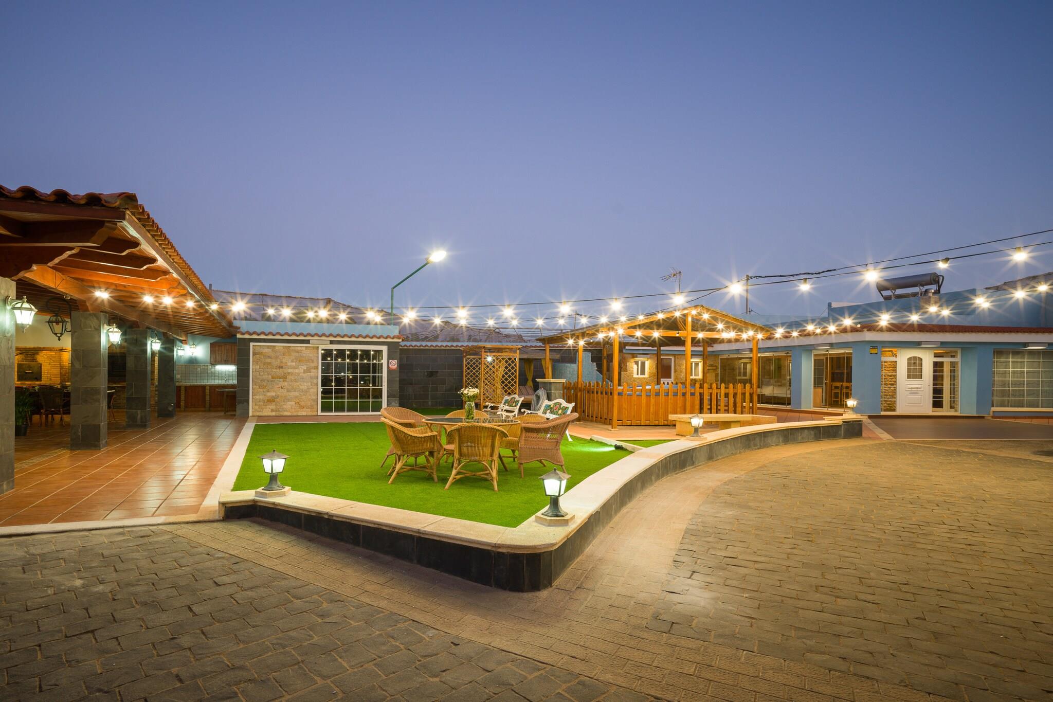 Flygt til denne fredelige og rummelige landlige ejendom i Santa María de Guía, Gran Canaria - ideel til familier, par, spirituelle retreater eller grupper af venner. Denne charmerende indkvartering administreres af Canarias Getaway og tilbyder ro omgivet af natur og bananplantager._x000D_ _x000D_ Hovedhuset har plads til op til 4 gæster og har 2 store soveværelser (1 kingsize-seng, 1 dobbeltseng) og 2 badeværelser - det ene med badekar og det andet med bruser. For grupper på mere end fire er et tilstødende hus tilgængeligt, der tilbyder en dobbeltseng, køkken og badeværelse, hvilket bringer den samlede kapacitet til 6 personer. Nyd et fuldt udstyret køkken med køleskab, fryser, ovn, opvaskemaskine, kaffemaskine, vaskemaskine, tørretumbler og alle nødvendige redskaber - perfekt til at tilberede måltider og dele særlige øjeblikke._x000D_ _x000D_ Udenfor kan du slappe af på den rummelige terrasse med grillplads, boblebad, liggestole og udendørs bruser. Privat parkering er tilgængelig for op til 2 køretøjer, og gæsterne kan anmode om guidede besøg på de omkringliggende bananplantager. Vedligeholdelsespersonalet besøger én gang om ugen med forudgående varsel til gæsterne._x000D_ _x000D_ Uanset om du søger ro, forbindelse til naturen eller delte minder med dine kære, er denne landlige ejendom en perfekt base for at udforske Gran Canarias naturlige skønhed i absolut komfort._x000D_