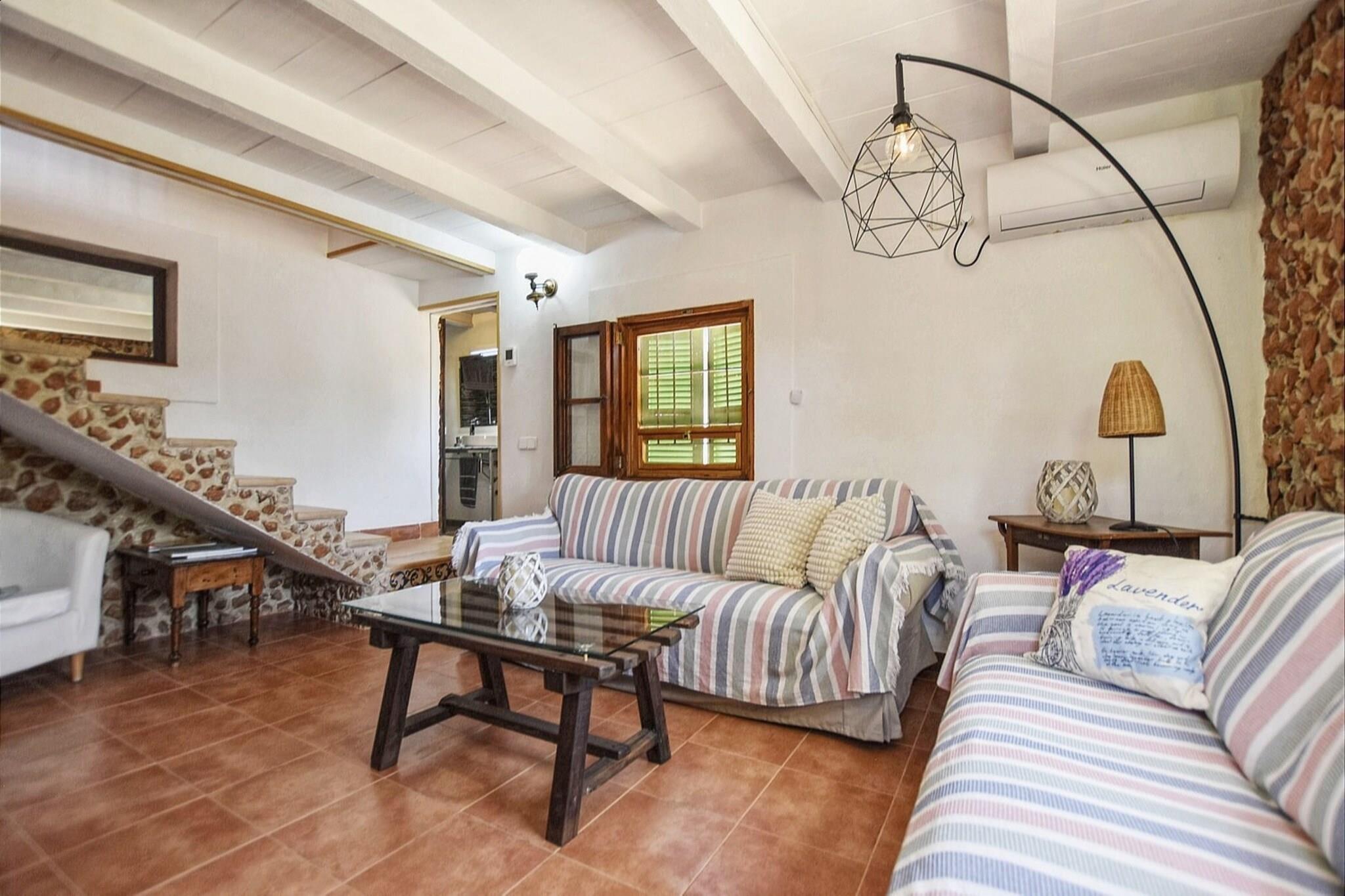 Flygt til hjertet af Mallorca, et charmerende landligt tilflugtssted beliggende mellem Santa Maria og Buñola, lige ved foden af de majestætiske Tramuntana-bjerge. Omgivet af fredelige landskaber og kun få minutter fra den pulserende landsby Santa Maria, tilbyder denne rustikke, men kærligt møblerede ejendom rolige omgivelser for uforglemmelige ferier. Fordelt på to etager og 120 m² boligareal, rummer huset komfortabelt op til seks gæster i tre hyggelige soveværelser og tre badeværelser. Uanset om du slapper af i den luftige stue, nyder rolige øjeblikke på mezzaninen med en god bog eller tilbereder en lokal ret i det fuldt udstyrede køkken, inviterer hvert hjørne af dette hjem dig til at sætte farten ned og nyde øjeblikket. Træd udenfor og find dit eget stykke paradis: en smukt anlagt have, en privat saltvandspool (9m x 4m) med liggestole, en skyggefuld terrasse perfekt til udendørs spisning og endda et indbygget grillområde. Børnene vil elske det hævede legehus, mens voksne kan nyde lette træningspas i det lille fitnessområde ved siden af poolen. For cyklister gør et dedikeret cykelopbevaringsområde det nemt at udforske de naturskønne stier i nærheden. Uanset om du rejser med familie, en gruppe venner eller leder efter en aktiv ferie i naturen, er Sa Caseta din ideelle base på Mallorca - hvor rustik charme møder moderne komfort i omgivelser, der er både rolige og inspirerende.