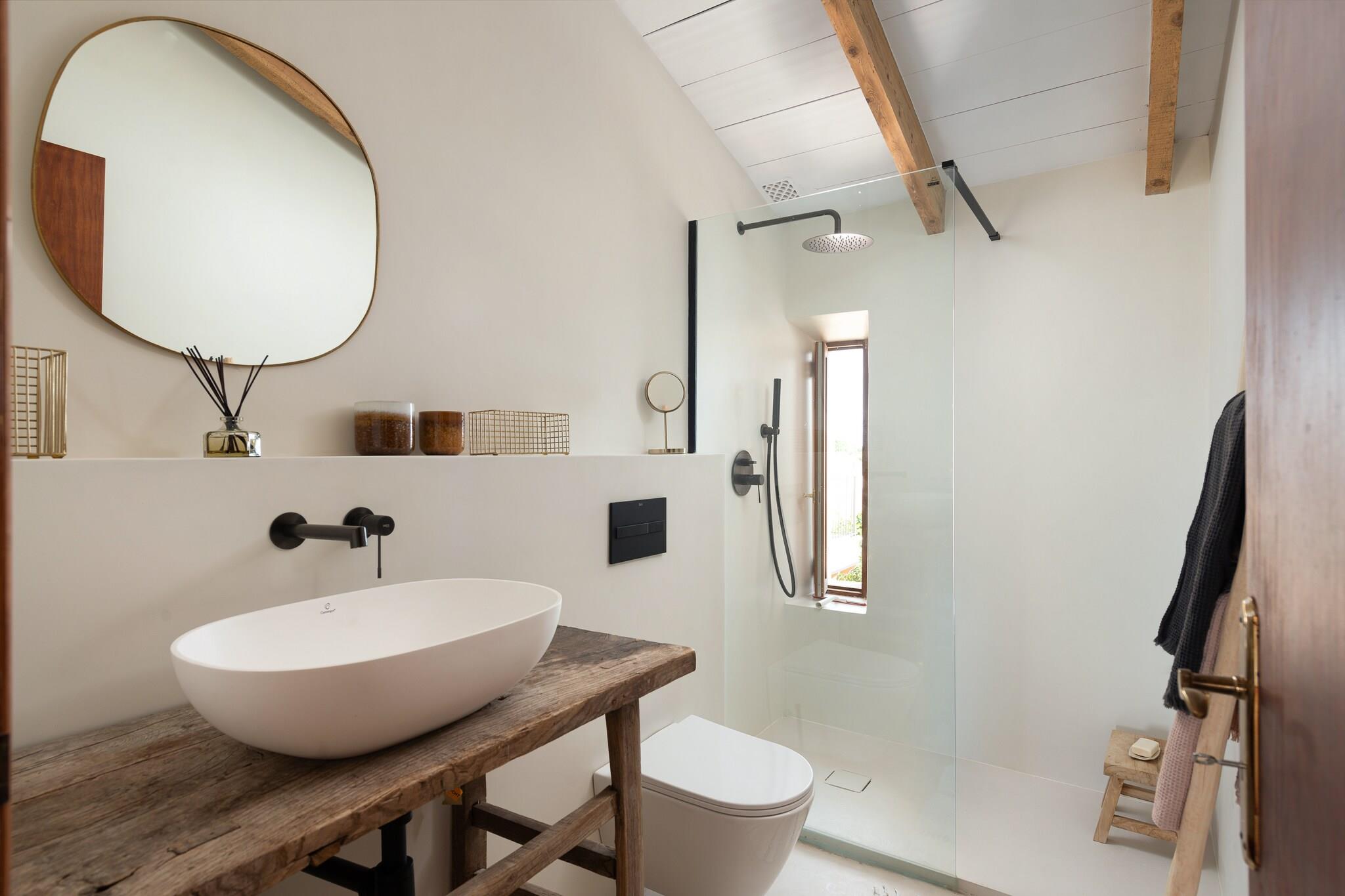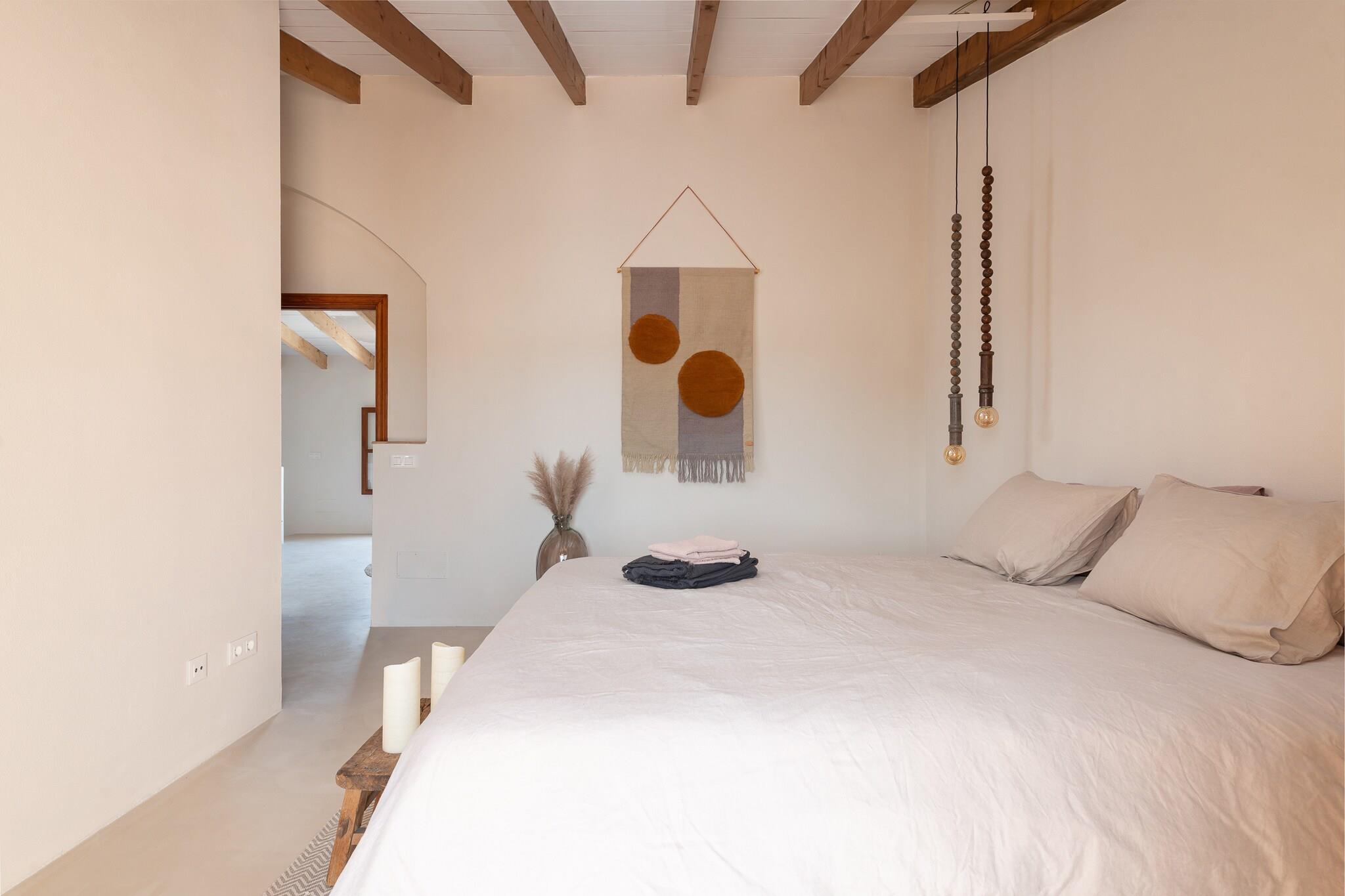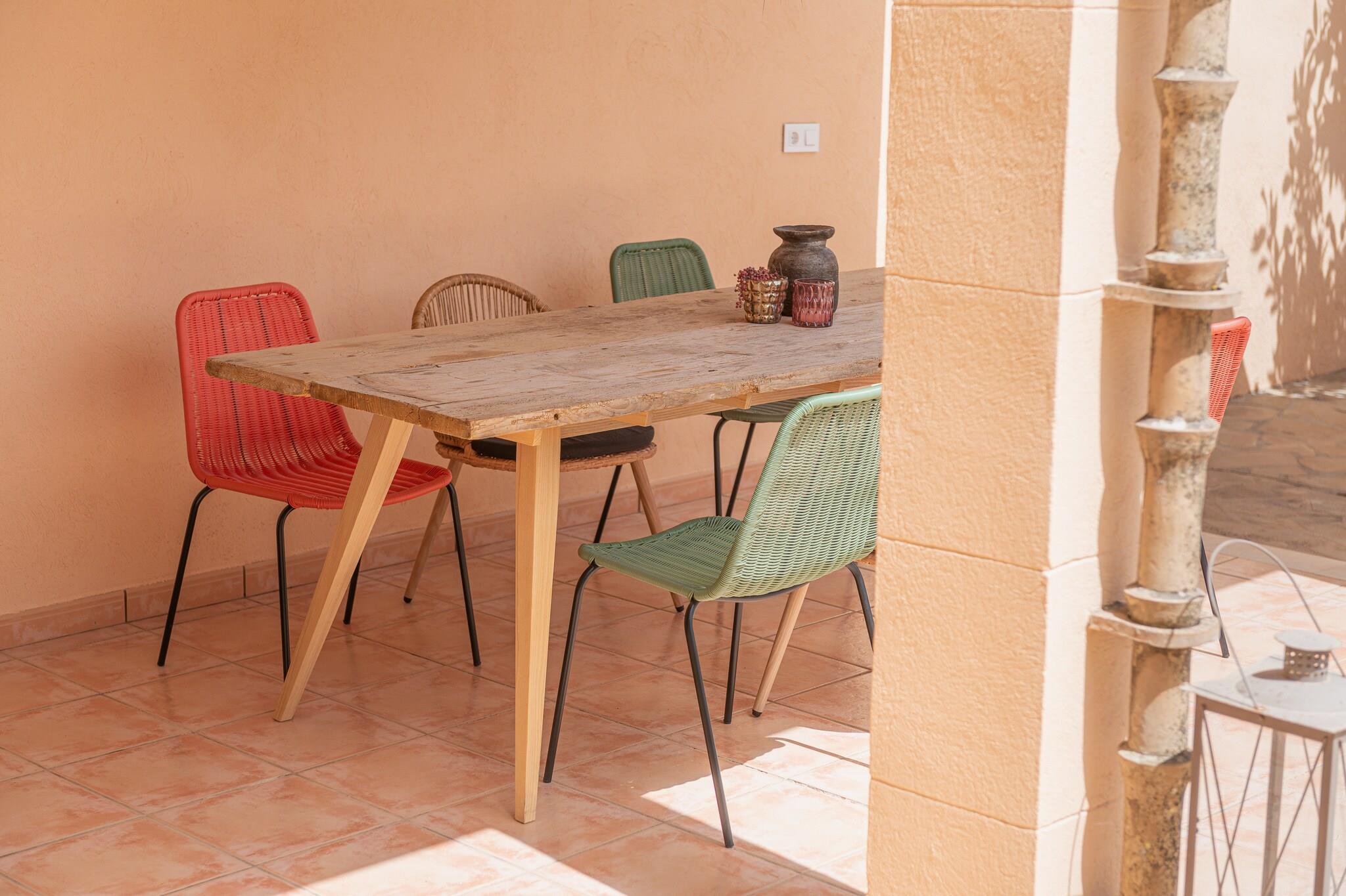 Dit gezellige huis, gelegen in een rustige omgeving vlak bij de in- of uitgang van de stad, heeft een groot terras met een eigen chloorzwembad van 3,5 x 3 meter en 0,80 meter diep, en een fantastisch gemeubileerde veranda waar u 's avonds kunt genieten van een heerlijk diner. Het is een ruimte vol harmonie die hen de langverwachte rust garandeert die ze verdienen. Het huis verdeelt zijn ruime en aangename kamers over twee verdiepingen en biedt een prachtige rustiek-moderne stijl met alle nodige comfort voor uw verblijf. Op de begane grond hebben ze een formidabele woon-eetkamer met satelliettelevisie. De keuken sluit vloeiend aan op deze ruimte en heeft een keramische kookplaat met alle essentiële keukengerei. Op dezelfde verdieping is er een toilet en een ontspanningsruimte om yoga te beoefenen. Als ze de trap opgaan, vinden ze een nieuw ruimteconcept: een ruime kamer met een werktafel en... een badkuip! In de gang is er een AC, erg handig als het gaat om het koelen van de drie slaapkamers, allemaal met tweepersoonsbedden. Twee van hen hebben een eigen badkamer met douche, en een van hen heeft toegang tot een charmant terras waar u het prachtige Mallorcaanse platteland kunt bewonderen. Er is een wasmachine. Als u met een baby reist, kunnen wij u voorzien van een wieg en een kinderstoel. Santa Margalida is een stad in het midden van het eiland, dus het heeft relatief snelle toegang tot elk deel van het eiland. Het is een praktisch landelijk gebied, bewoond door de lokale bevolking, een perfecte voorwaarde om het authentieke Mallorca te leren kennen en ontdekken. Slechts 9 km scheidt hen van het strand van Ca'n Picafort, bekend om zijn fijne witte zand en kristalheldere water, en zijn traditionele restaurants. Ga niet weg zonder een voortreffelijke paella op het strand te hebben geproefd! De boulevard van Ca'n Picafort en Puerto de Alcúdia zijn erg levendig als je wat meer drukte en vertier wilt. Voor eventuele extra kosten kunt u contact opnemen met de adverteerder. Wij accepteren geen huisdieren. Het vieren van evenementen is niet toegestaan. Afstanden Strand: 9 km - Ca´n Picafort Luchthaven: 57,3 km - Son Sant Joan Golfbaan: 22 km - Golf Aucanada Stad: 0,2 km - Santa Margalida Treinstation: 6,2 km - Muro Bushalte: 1 km - Plaça de la Vila, Santa Margalida Veerboot: 19 km - Port d´Alcúdia Ziekenhuis: 20 km - Ziekenhuis Comarcal d´Inca Toeristenvergunning: ETV/5737 Op de Balearen geldt een toeristenbelasting, Ecotasa genaamd, die door de gast moet worden betaald. Het bedrag varieert tussen EURO 0,55 / per nacht per persoon in het laagseizoen en EURO 2,2 / per nacht per persoon in het hoogseizoen. Vanaf de negende dag wordt het met de helft verminderd. Personen onder de 16 jaar uitgesloten.