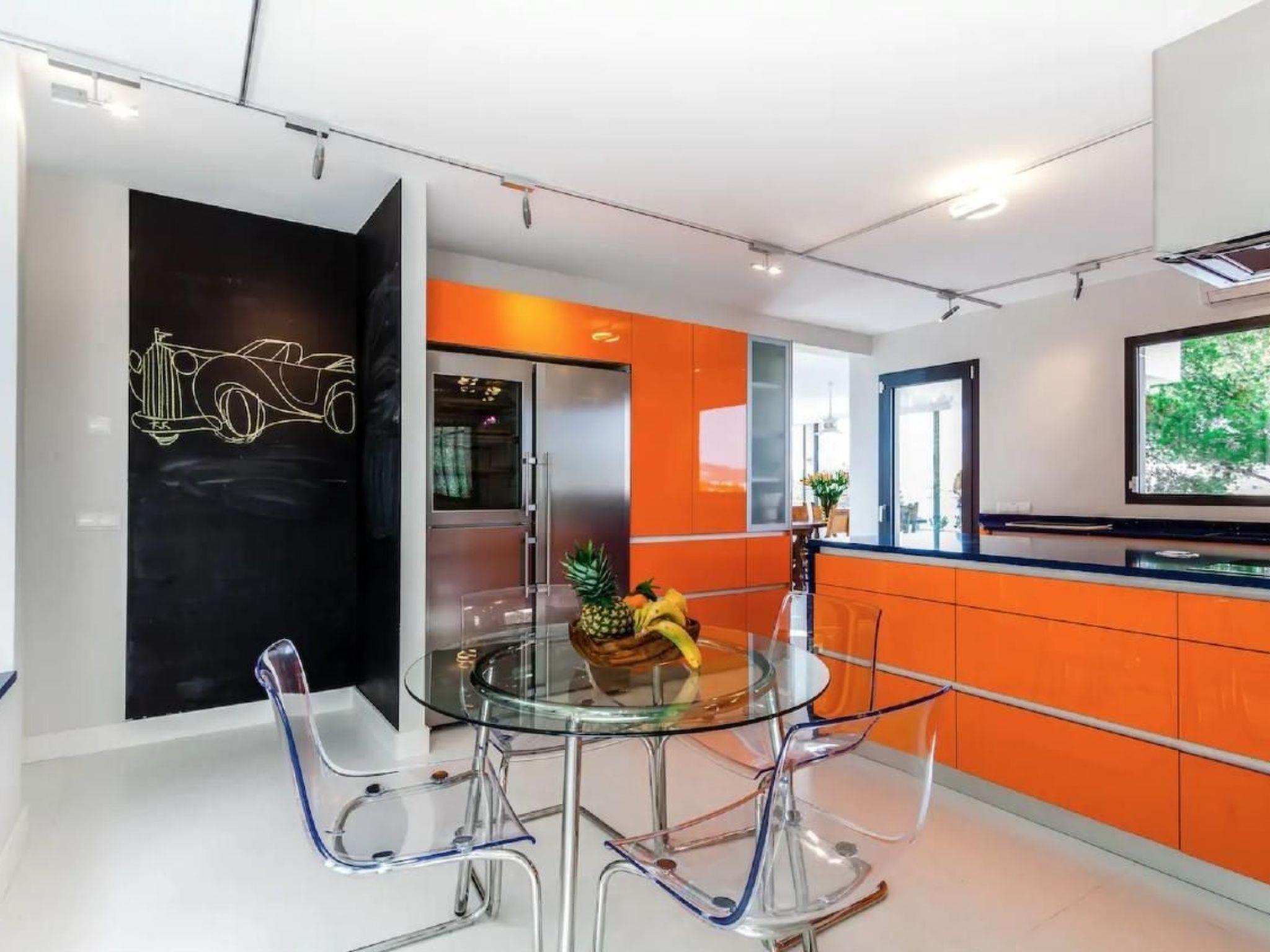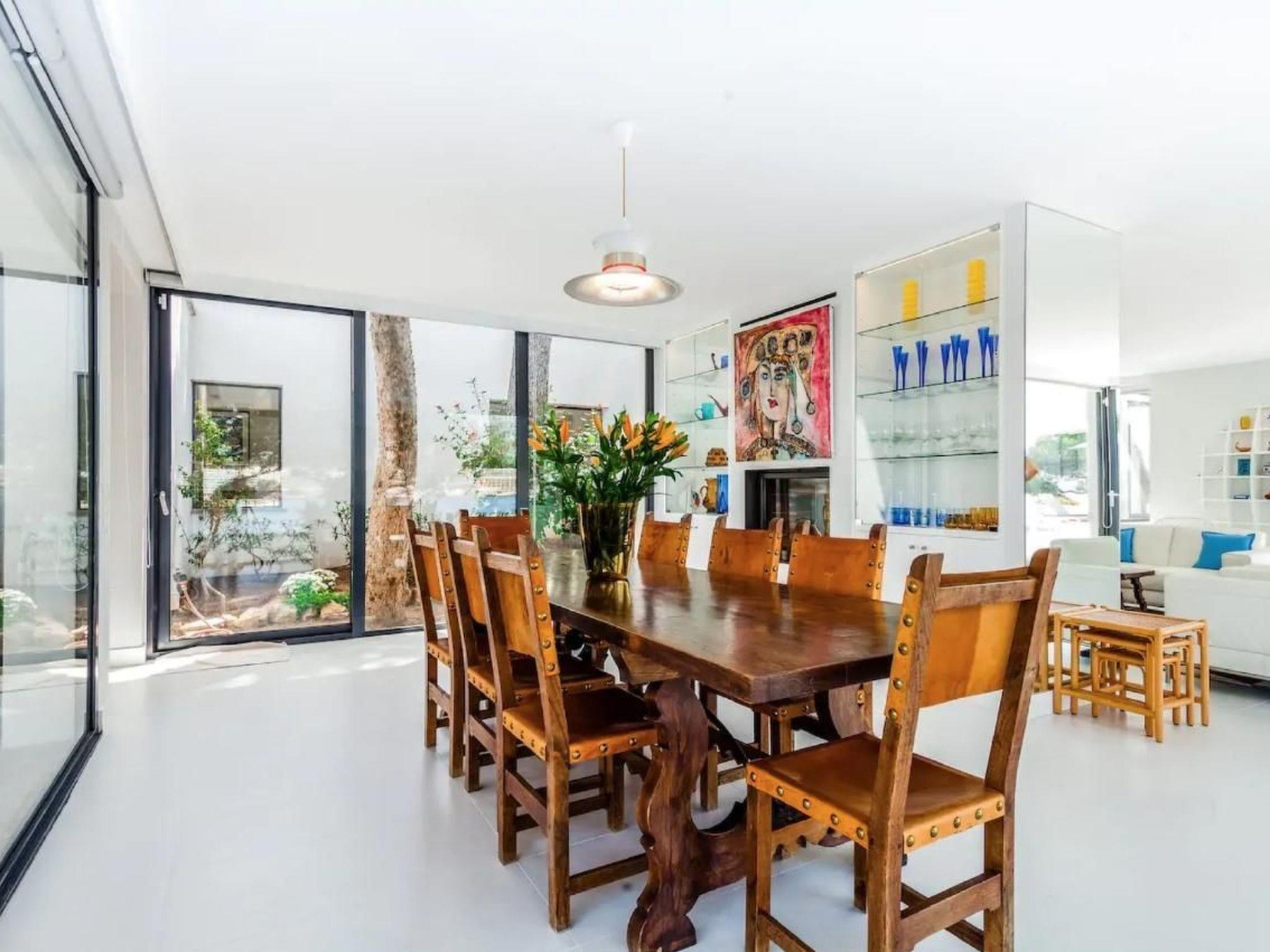 Casa Blau Villa has six double bedrooms, each with its own ensuite bathroom. A stay for up to twelve people is therefore possible. Each of the bedrooms has a magnificent view over the sea, a modern furnished spacious living area, a high-quality and well-equipped kitchen and a total of three dining areas - both inside and outside - complete the facilities of the property. The entire interior of the house is very straightforward and bright. The living area of the villa is at ground level and surrounded by a continuous terrace. An outdoor kitchen/bar with barbecue and hob are permanently installed on the terrace, while the private swimming pool is 10 metres long and access to the sea is via a staircase that leads over various terraces. The length of the seafront is impressive - living so close to the water is impressive at any time of year. On request: