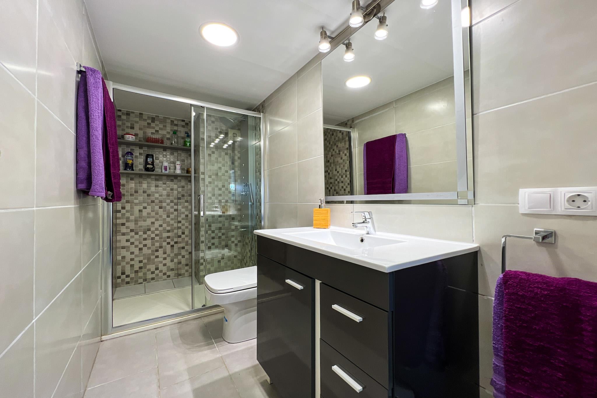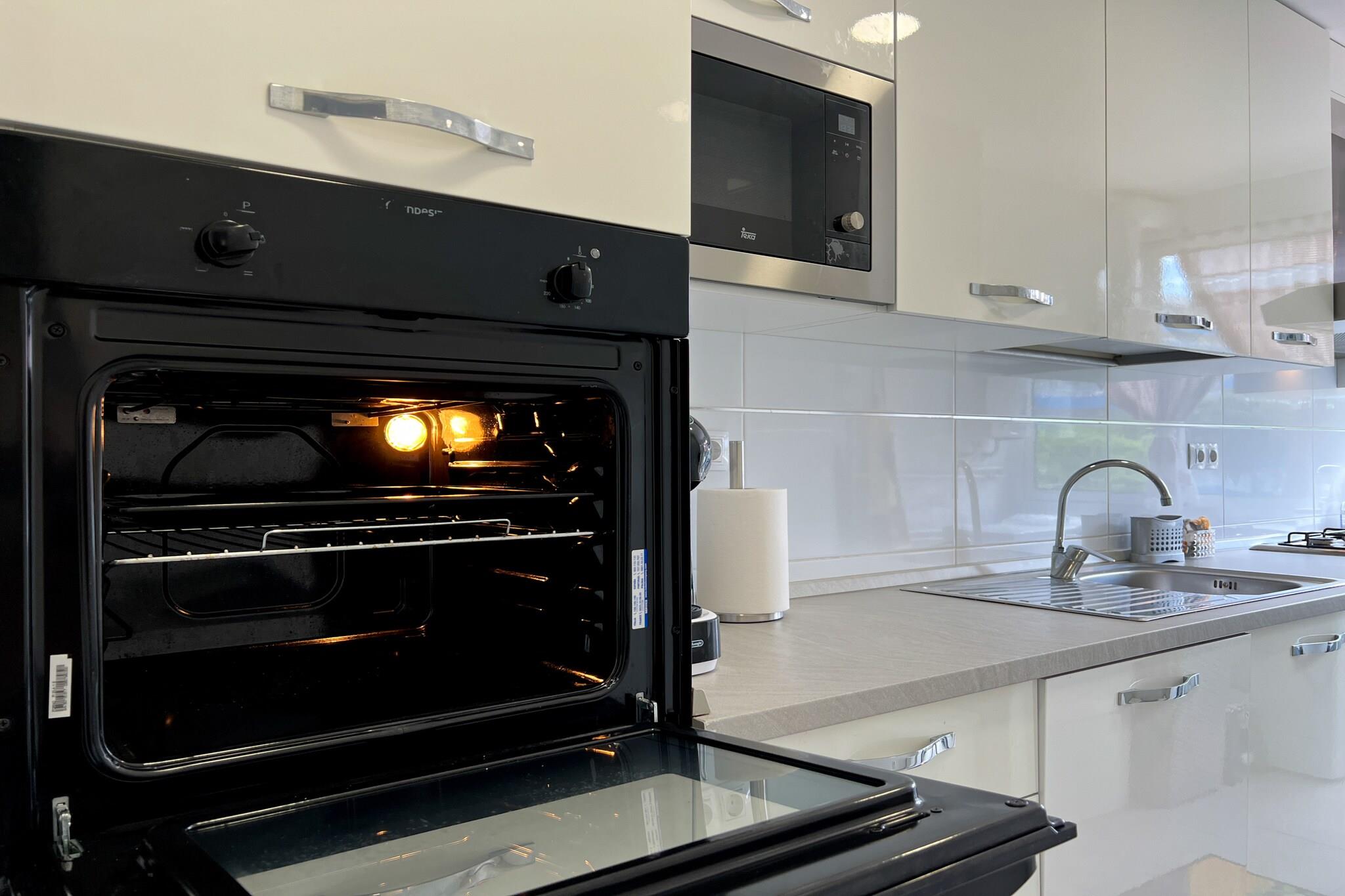 , Stue(Fjernsyn, spisebord, sofahjørne), åbent køkken(elkedel, brødrister, kaffemaskine, ovn, mikrobølgeovn, opvaskemaskine , køle-fryseskab, ), soveværelse(dobbeltseng, Fjernsyn), badeværelse(bruser), Internetadgang, Internetadgang, vaskemaskine, balkon, klimaanlæg, have, swimmingpool(deles med andre gæster, herunder en del for børn (maks. dybde 50 cm)), strygejern, luft til luft-varmepumpe