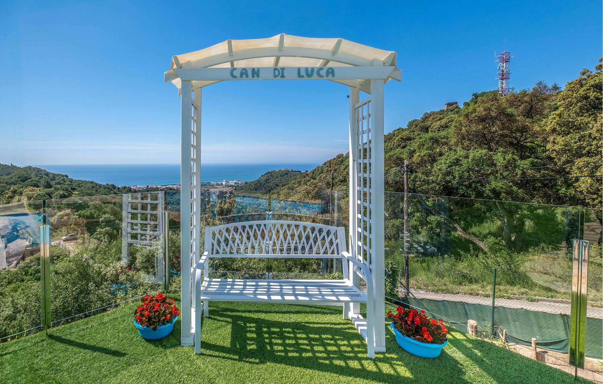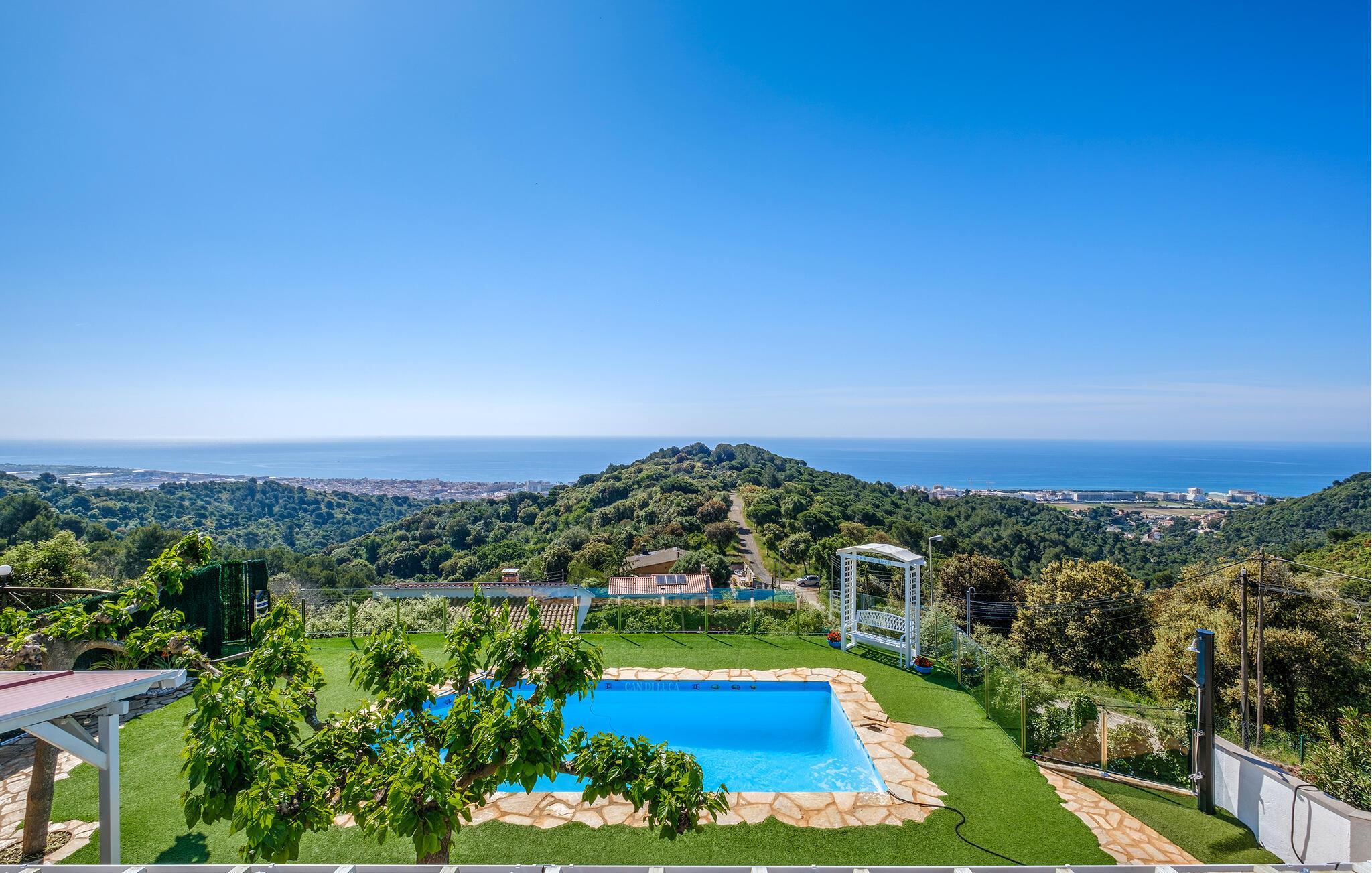 Kun 2 km fra Maresmes strande, i et roligt, tyndt beboet boligområde, ligger dette drømmeagtige feriehus med fantastisk havudsigt ud over Santa Susana.