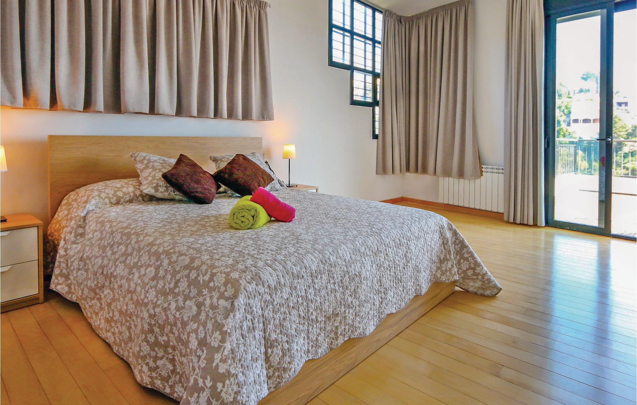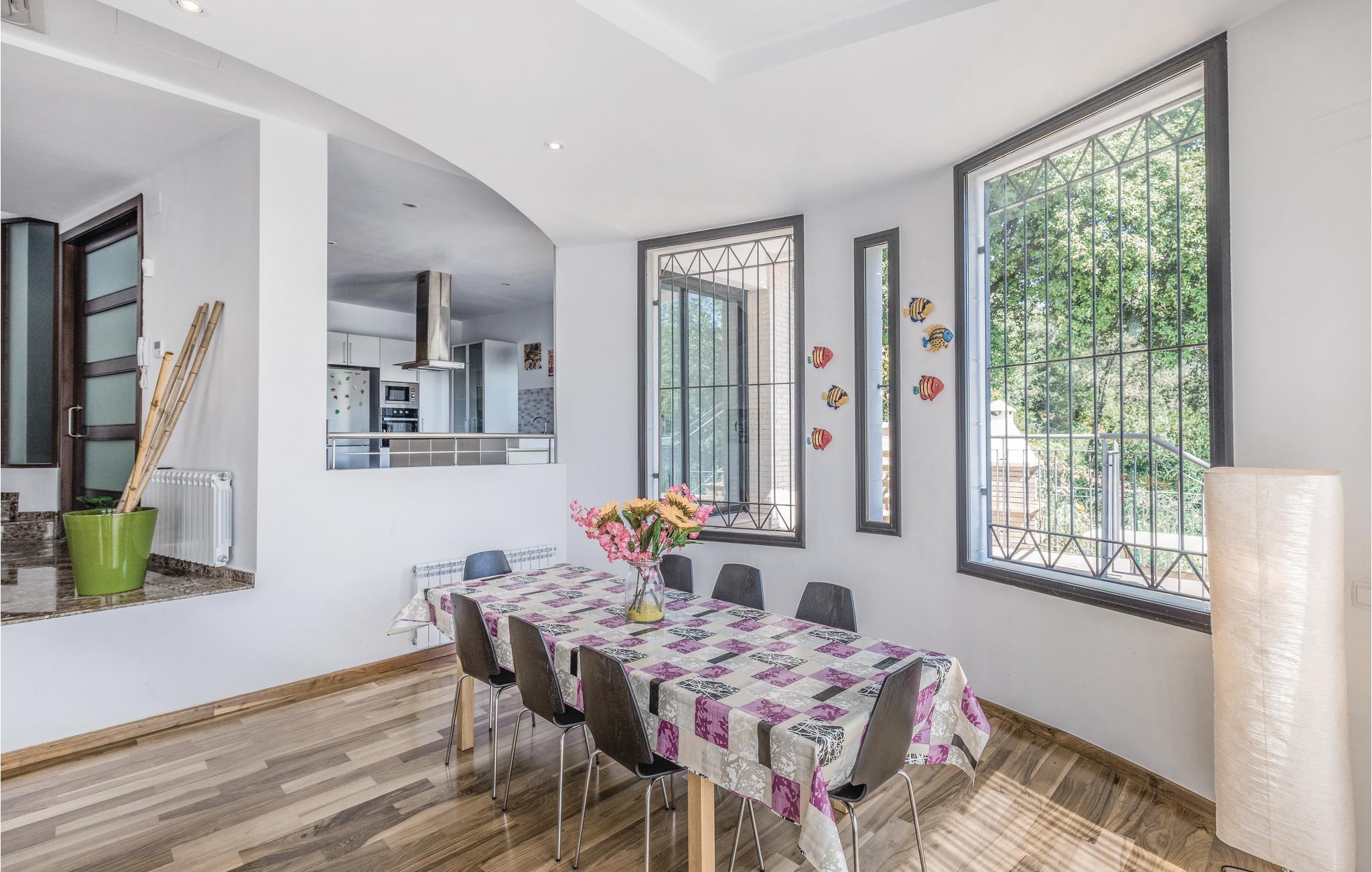 Dette moderne feriehus nær kystbyerne Santa Susanna og Pneda de Mar, byder jer det perfekte sted til en afslappende ferie tæt på havet og med bjergudsigt. På hele 280m² er følgende rum fordelt: fire soveværelser, tre badeværelser, et toilet, et veludstyret køkken og en dejlig stor opholdsstue med spisekrog. Alle rum og værelser i huset har et fantastisk lysindfald fra de store vindusepartier, ligesom den lyse indretning skaber en dejlig hyggelig atmosfære.