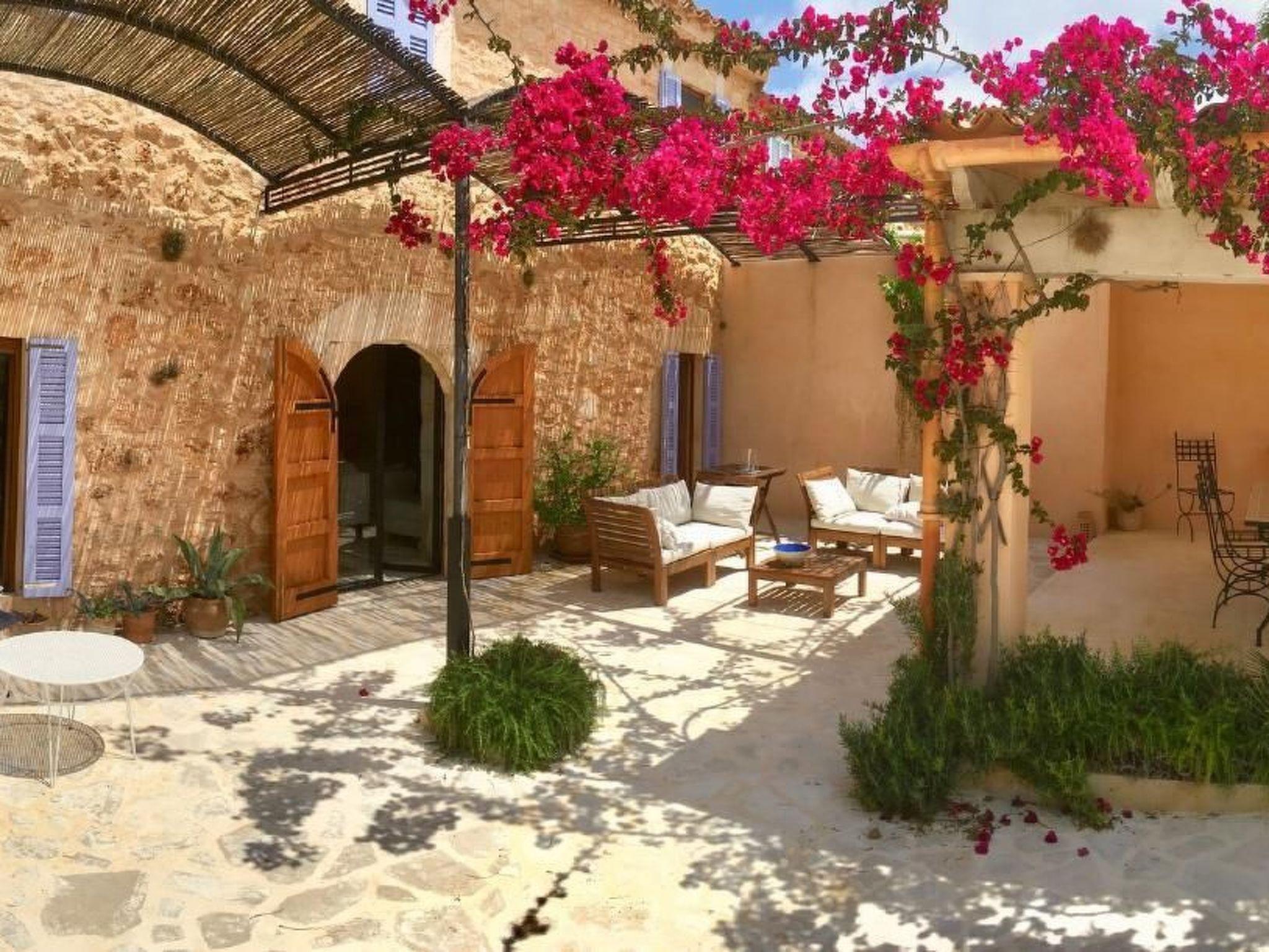 Treat yourself to an idyllic break in our charming holiday home Casa 3 Leones in Es Llombards. Perfectly designed for up to 6 people, this inviting domicile is the ideal base from which to explore the beaches and beauty of Mallorca. The house - whose origins date back to the beginning of the last century - has been converted into a comfortable holiday home. The original structures were largely retained, but modern materials were used to bring them up to the latest state of the art. The result is a rural village house in finca style with a living space of approx. 214 square metres. Inside, Casa 3 Leones presents itself on the ground floor with a modern living room and a spacious dining area with AC. Entertainment is well catered for thanks to the Smart TV. The open-plan kitchen invites you to prepare delicious meals with a comprehensive range of appliances, including various coffee machines, a ceramic hob and a side-by-side fridge. The ground floor also has a shower room at ground level and an alcove with a daybed that can be used as a bed for residents who are unable to access the upper floor. This makes the ground floor suitable for people with limited mobility. The upper floor of the house consists of three cosy bedrooms, all of which can be darkened for a restful night's sleep, as well as two bathrooms, each with a shower, WC and bidet. One half of the entire upper floor, which extends over various levels, is taken up by the generously proportioned master bedroom with en suite bathroom. A particular highlight of Casa 3 Leones is the furnishings, which leave nothing to be desired: Air conditioning units ensure pleasant temperatures in all rooms, while the underfloor heating provides cosy warmth on cooler days. Outside, a private Mediterranean garden with palm trees, cypresses and citrus trees awaits you. The saltwater pool has a length of 13 metres and allows for "real swimming". By the pool there is another bathroom with outdoor shower (h/c) and WC. The various terraces, which invite you to sunbathe and relax outdoors, are largely hidden from view and offer plenty of space for outdoor leisure activities. It is the perfect place to unwind and enjoy the Mallorcan sun. An outdoor kitchen with barbecue, hot water sink, gas cooker, fridge and large dining table in the patio complete the amenities of the house.