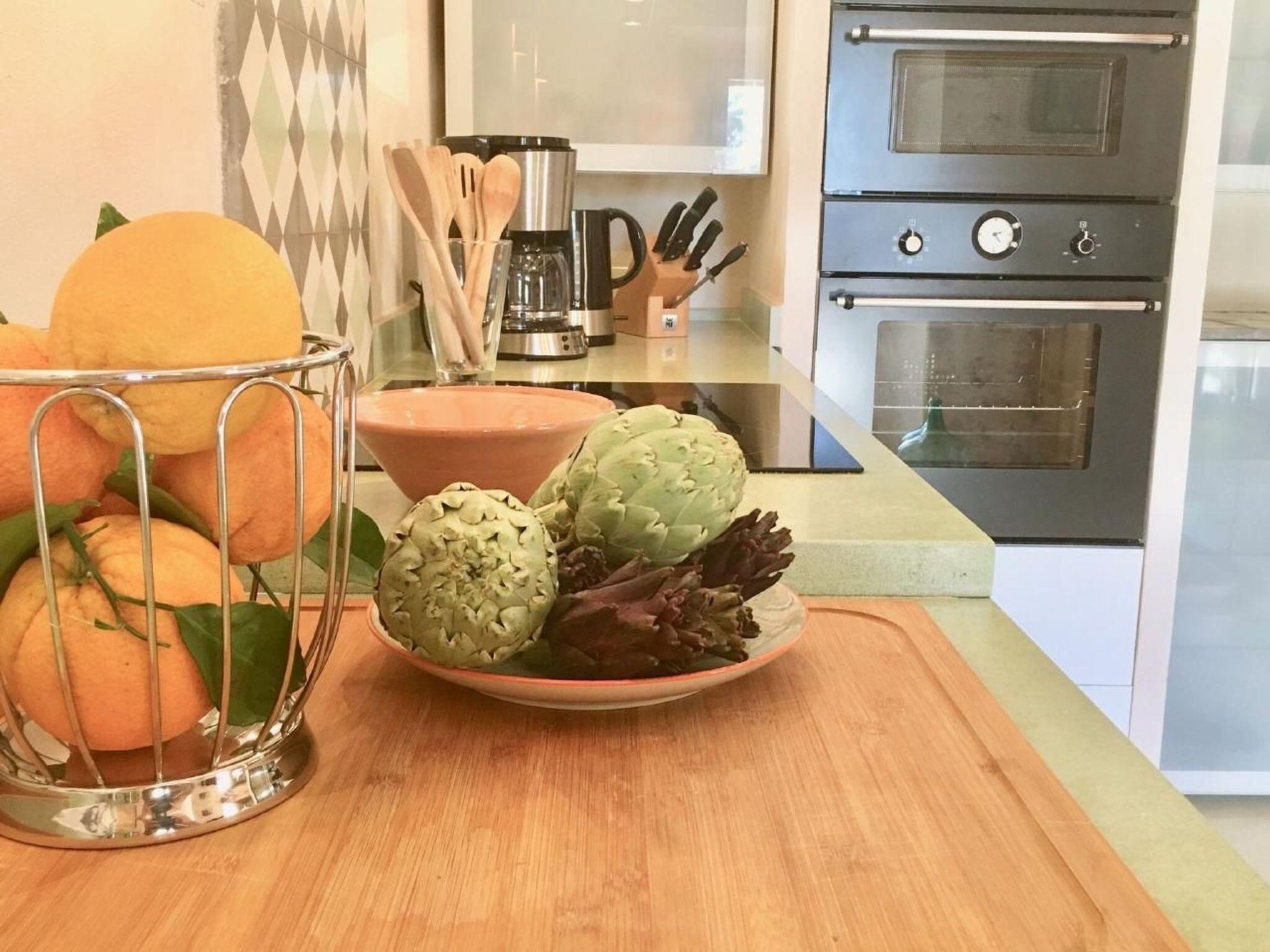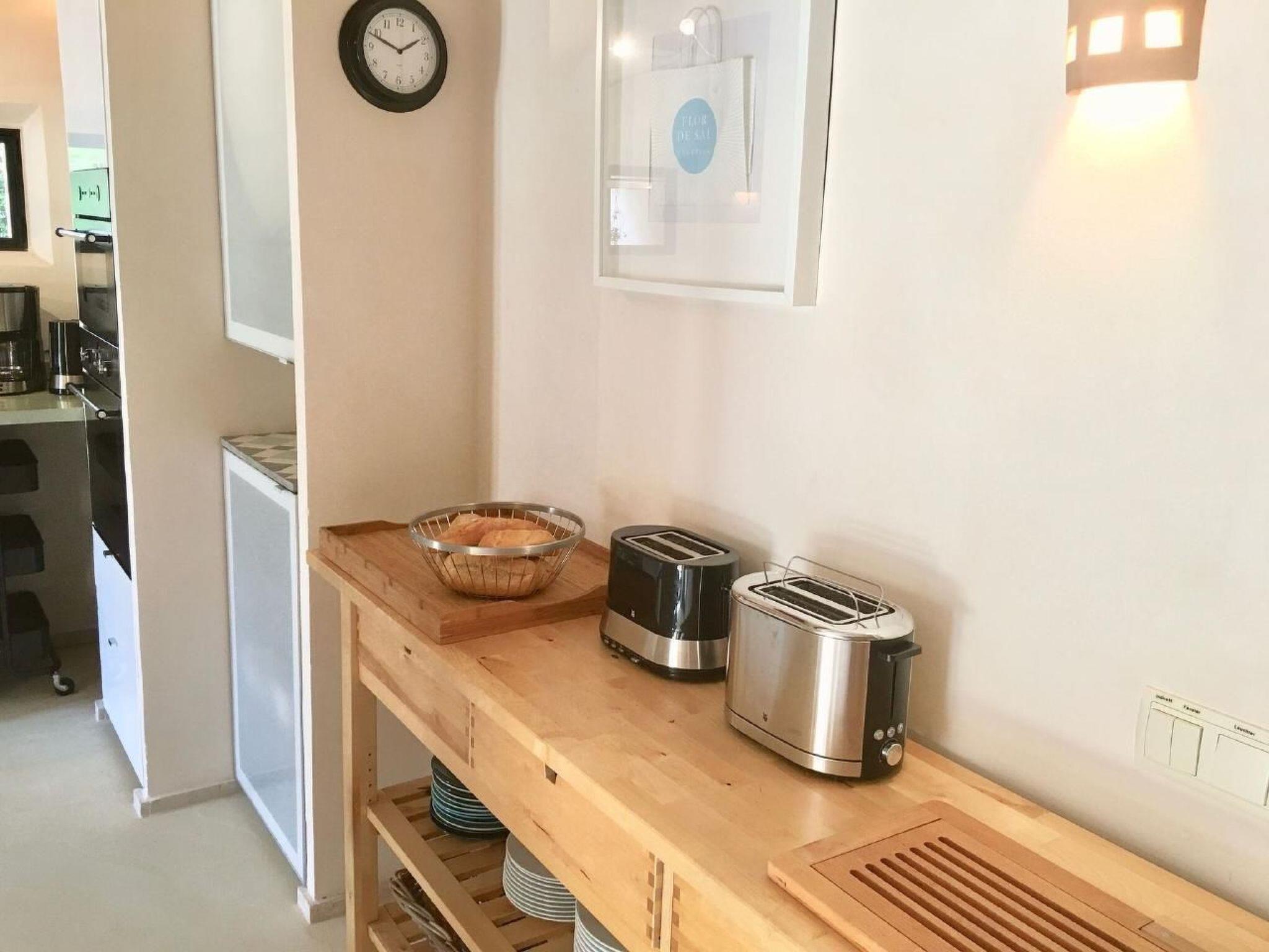 Kitchen: Nespresso coffee machine, French press, espresso maker, filter coffee machine, blender, electric citrus juicer, egg boiler, kettle, 2 toasters, ceramic hob, side-by-side fridge, sufficient crockery and glasses for 10 people, cookery books, children's cutlery and plates, 2 dehumidifiers, battery-powered vacuum cleaner, safe,