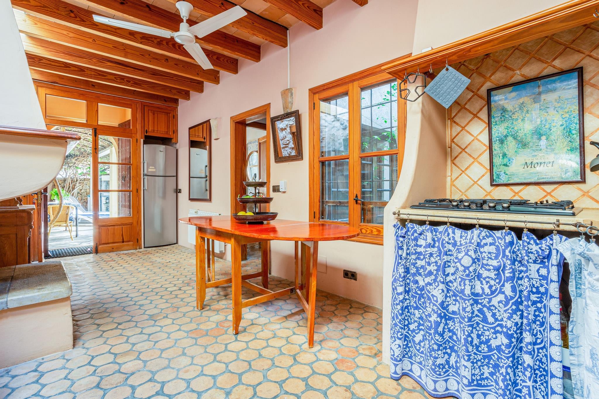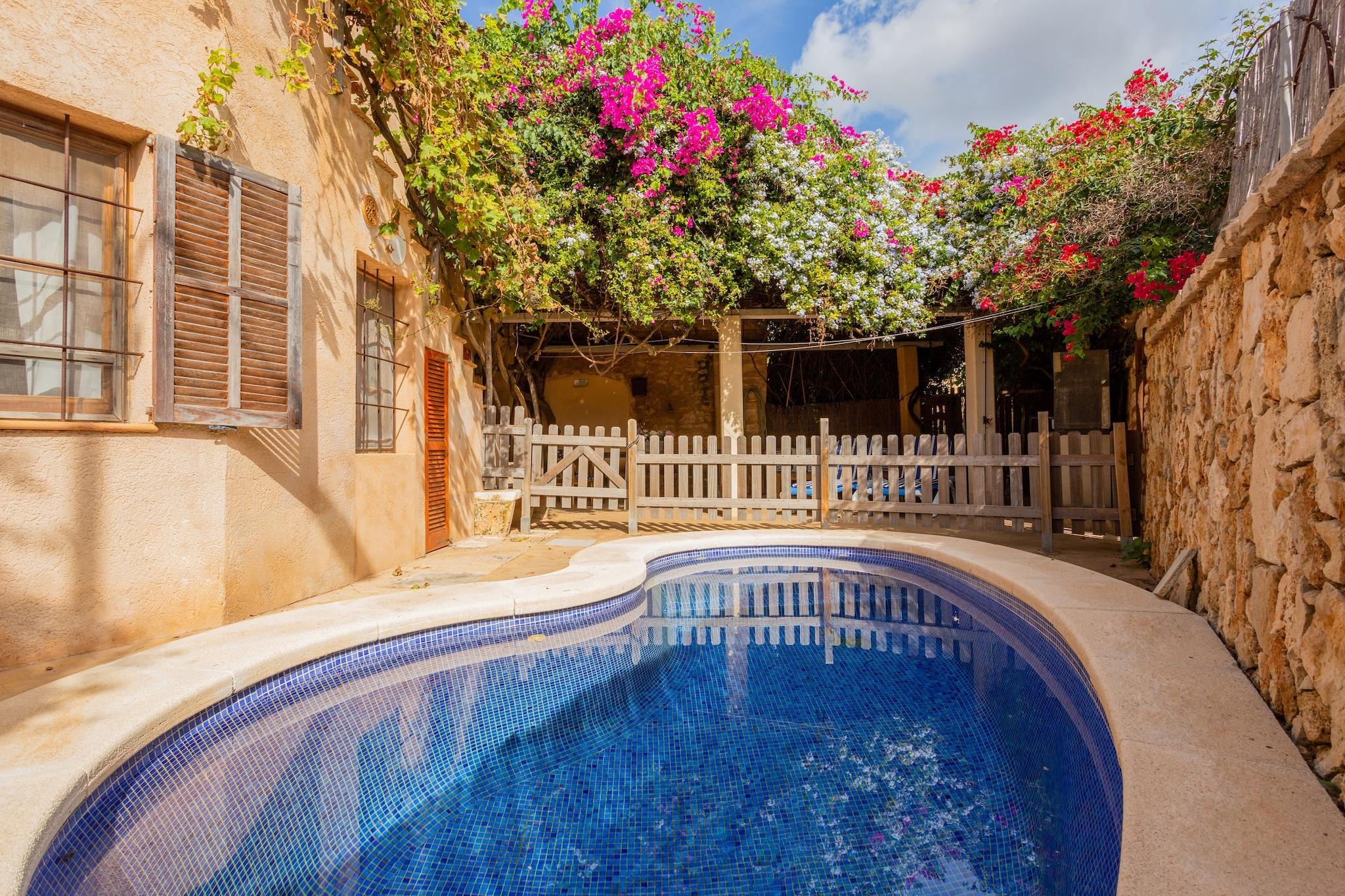 Casa El Molino er et charmerende hus. Det er fuld af atmosfære og har en privat swimmingpool. Huset ligger på kanten af den hyggelige landsby Santanyi. Det ligger kun en kort gåtur fra det attraktive torv. To cykler er til rådighed for din nydelse. De er den perfekte måde at opdage Santanyi og dets dejlige omgivelser. Landsbyen Santanyi er charmerende og smuk. Det er et velkomment, fredeligt alternativ til de travle byer Cala d'Or og Puerto Colom med deres livlige sommermængder. Du vil nyde at udforske de snoede smalle gader og det centrale torv, hvor du finder mange attraktive små butikker, restauranter og kunstgallerier. Onsdag og lørdag er markedsdage. Den stille landsby omdanner sig til en livlig, jolly labyrint af markedsboder spændt med besøgende. Du finder en smuk kirke ligger i centrum af landsbyen. Med held kan du se et traditionelt mallorcansk bryllup med al sin pomp og pragt. Huset kan kun beskrives som en lille perle. Det er ikke overdrevent luksuriøst, men det har en fantastisk atmosfære. Huset er en del af en traditionel gammel mallorcansk mølle og er blevet omhyggeligt renoveret, samtidig med at den har opretholdt sin oprindelige karakter. Den indbydende gårdhave har en dejlig terrasse under en imponerende bougainvillea. Der er en privat swimmingpool. Casa El Molino er perfekt til to par eller en familie med børn, der søger et ekstraordinært, traditionelt hus på Mallorca. Cecilia, ejeren, er en charmerende chilenske dame. Hun bor ved siden af i den gamle del af møllen. Hun vil med glæde fortælle dig alt om Santanyi og vise dig det fascinerende mølletårn.