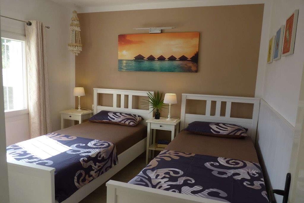 Stueetage: (entre(, ), Køkken(, , , tekøkken, kakkelovn, kogeplade, elkedel, brødrister, kaffemaskine, ovn, mikrobølgeovn, opvaskemaskine , køleskab, fryser, insektnet), stue / spisestue(, , , , bibliotek, Fjernsyn, spisebord, kakkelovn, stereoanlæg, insektnet), soveværelse(, , dobbeltseng, Fjernsyn, klimaanlæg, insektnet), soveværelse(, , enkeltseng, enkeltseng, Fjernsyn, klimaanlæg, insektnet), badeværelse(, , toilet, bruser, håndvask, bidet, varme, føntørrer, insektnet, Håndklæder inkl.), guest toilet(, toilet, håndvask, vaskemaskine, insektnet), pulterkammer(, strygebræt, strygejern, tørreskab)) , , veranda(outdoor shower, Græsplæne, grill, hottub, havemøbler, solstole), veranda(havemøbler, solstole), Internetadgang, Førstehjælp, vaskemaskine, parkering, liggestole, cykler til rådighed, strygebræt, strygejern, tørreskab, Vaskeripakke mod et gebyr