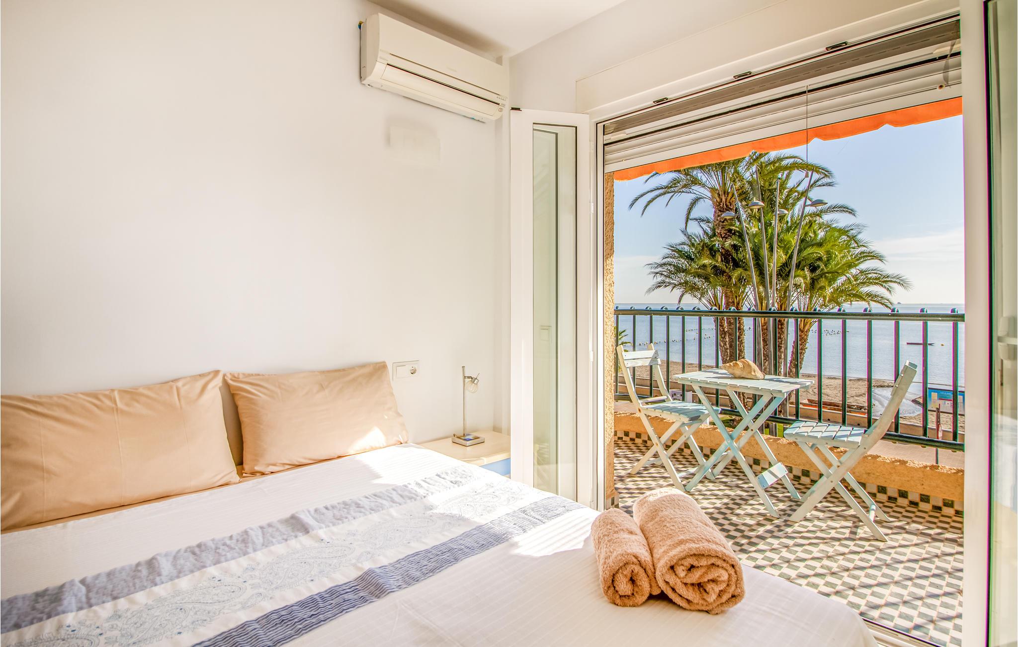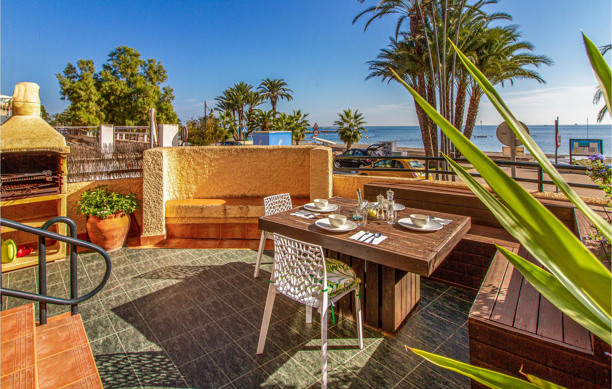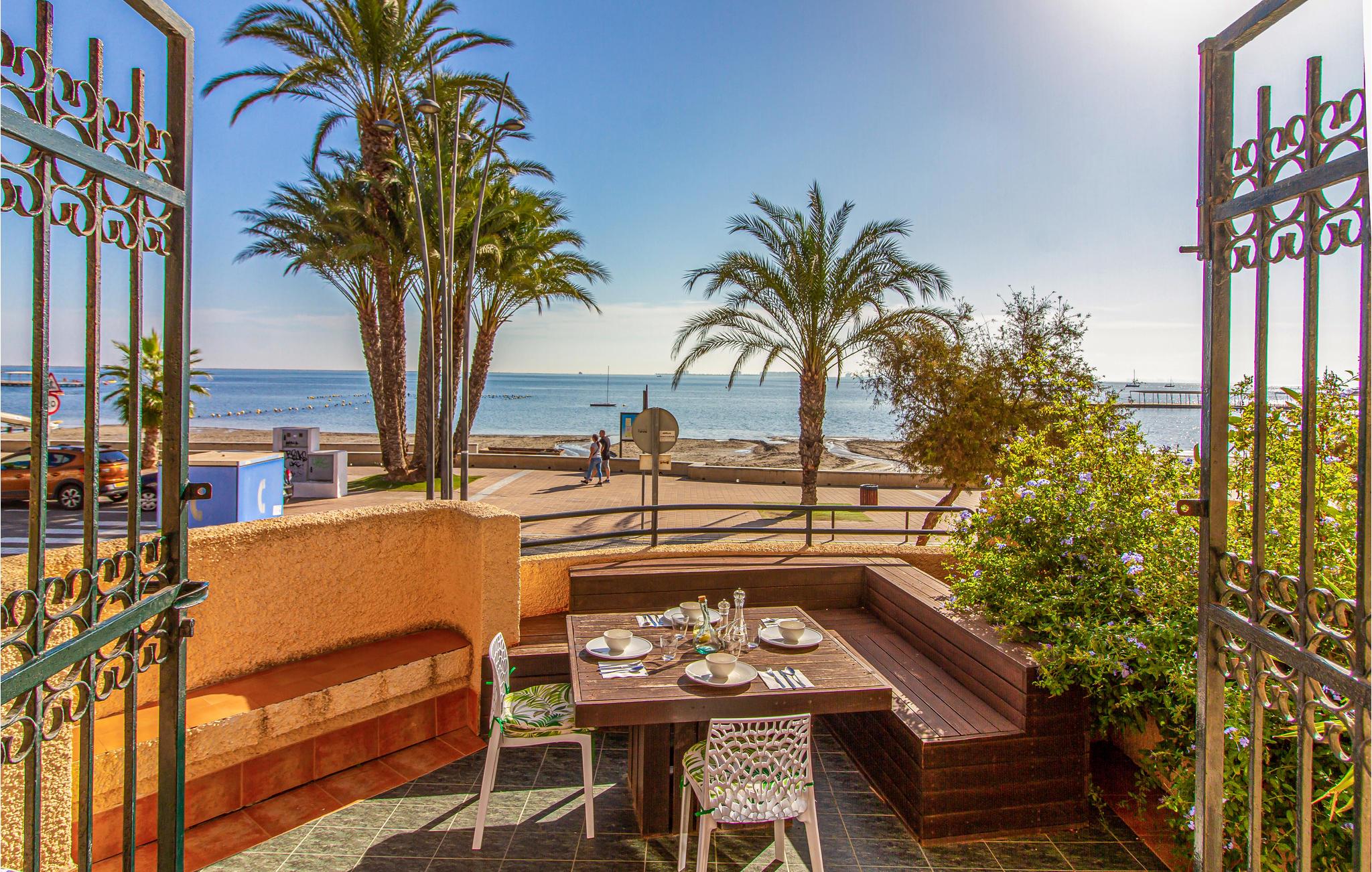 Velkommen til dette smukke rækkehus med en førsteklasses beliggenhed ved stranden i Santiago de la Ribera. Huset byder jer indenfor, hvor I finder hyggelige soveværelser og stuer, der giver de bedste betingelser for både privatliv og hyggelige stunder med hele selskabet. Særligt skønne er altanen og den store terrasse, hvor stranden og vandet ligger lige for jeres fødder. Nyd morgenkaffen med førsteklassesudsigt og rund senere dagen af med et lækkert måltid i det fri.