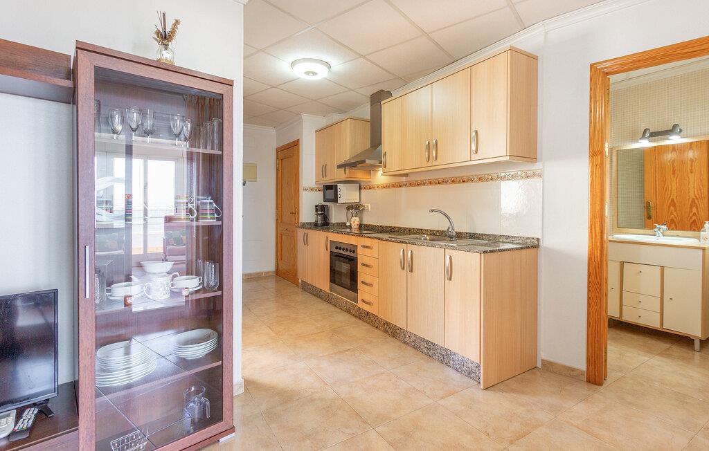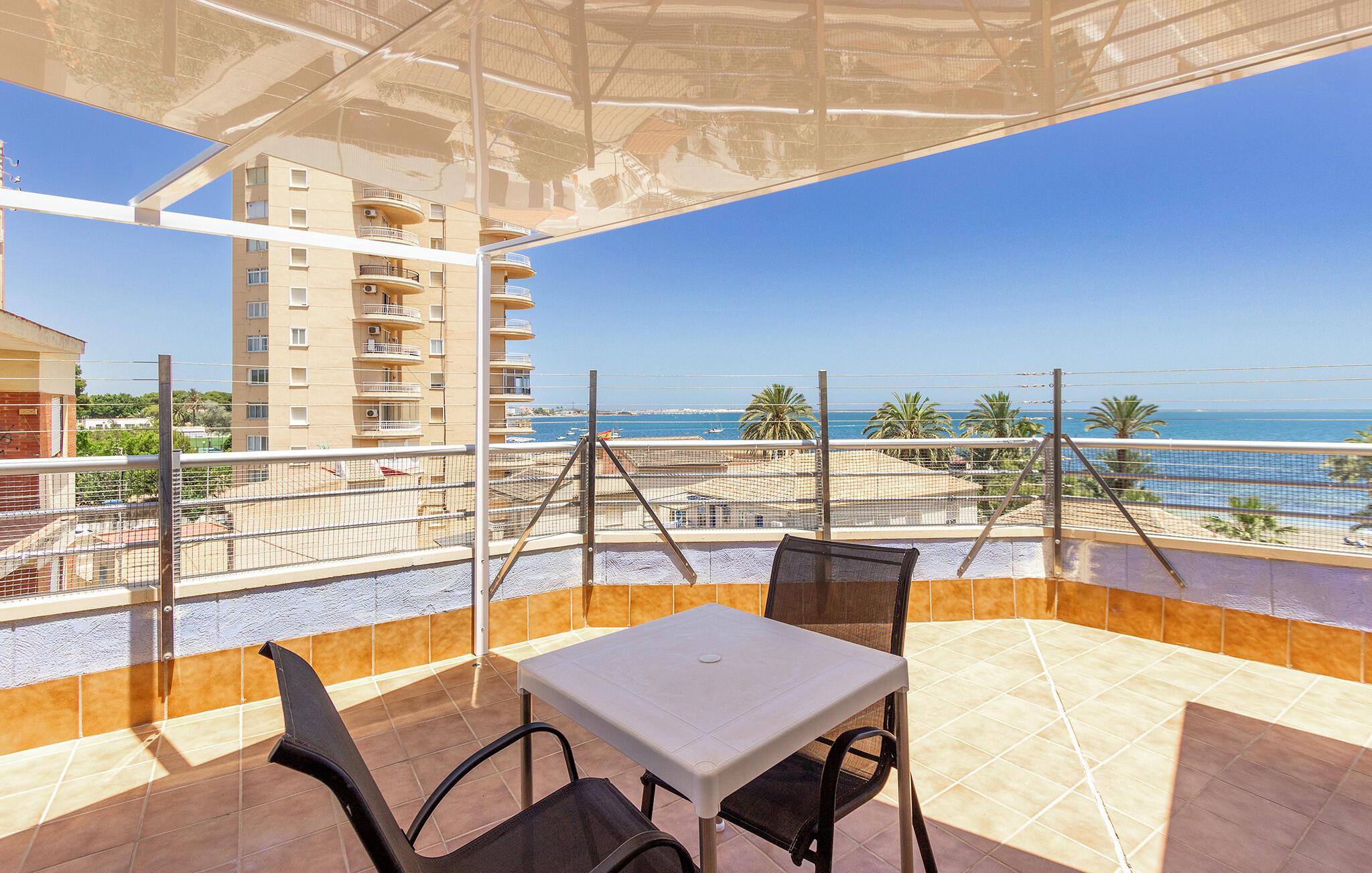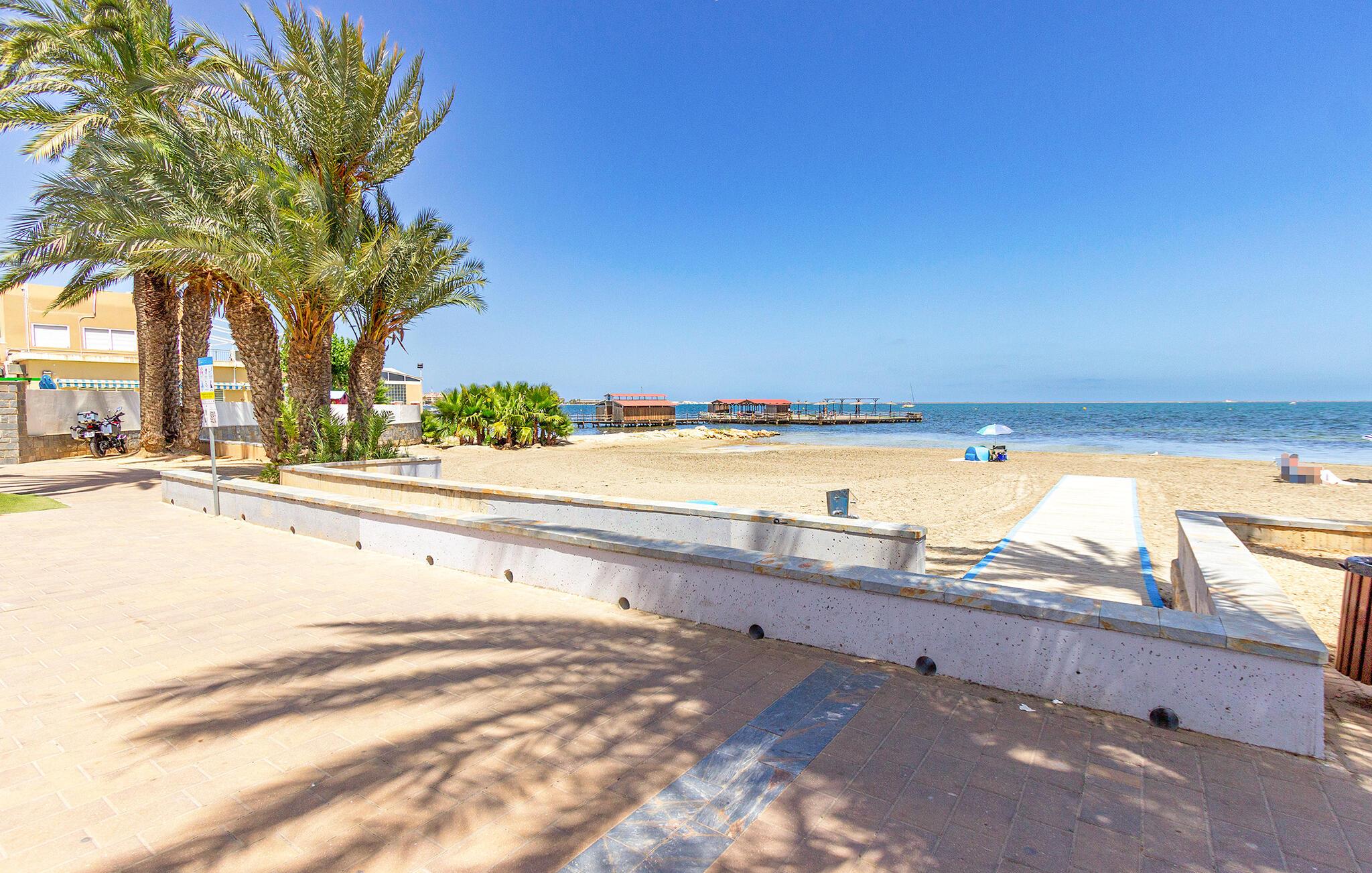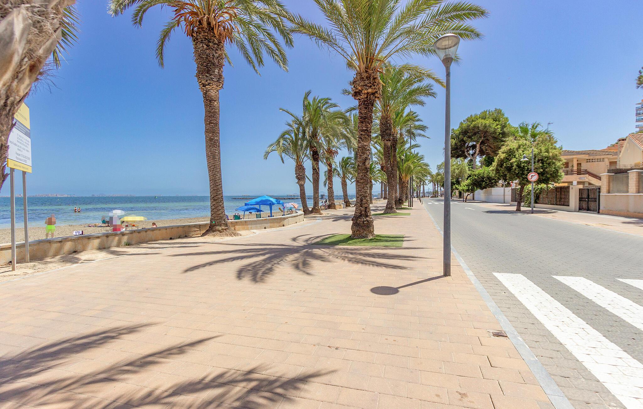 Placeringen i Santiago de la Ribera er perfekt for strandelskere og aktive feriegæster. Kun få skridt adskiller jer fra de smukke strande ved Mar Menor, hvor I kan svømme i det lave, varme vand eller prøve vandsport som sejlads og windsurfing. Strandpromenaden lægger op til afslappende gåture, mens det nærliggende Murcia med kulturelle seværdigheder, restauranter og butikker lokker til dagsture. I kan også opleve den omkringliggende natur på vandre- eller cykelture langs kysten.
