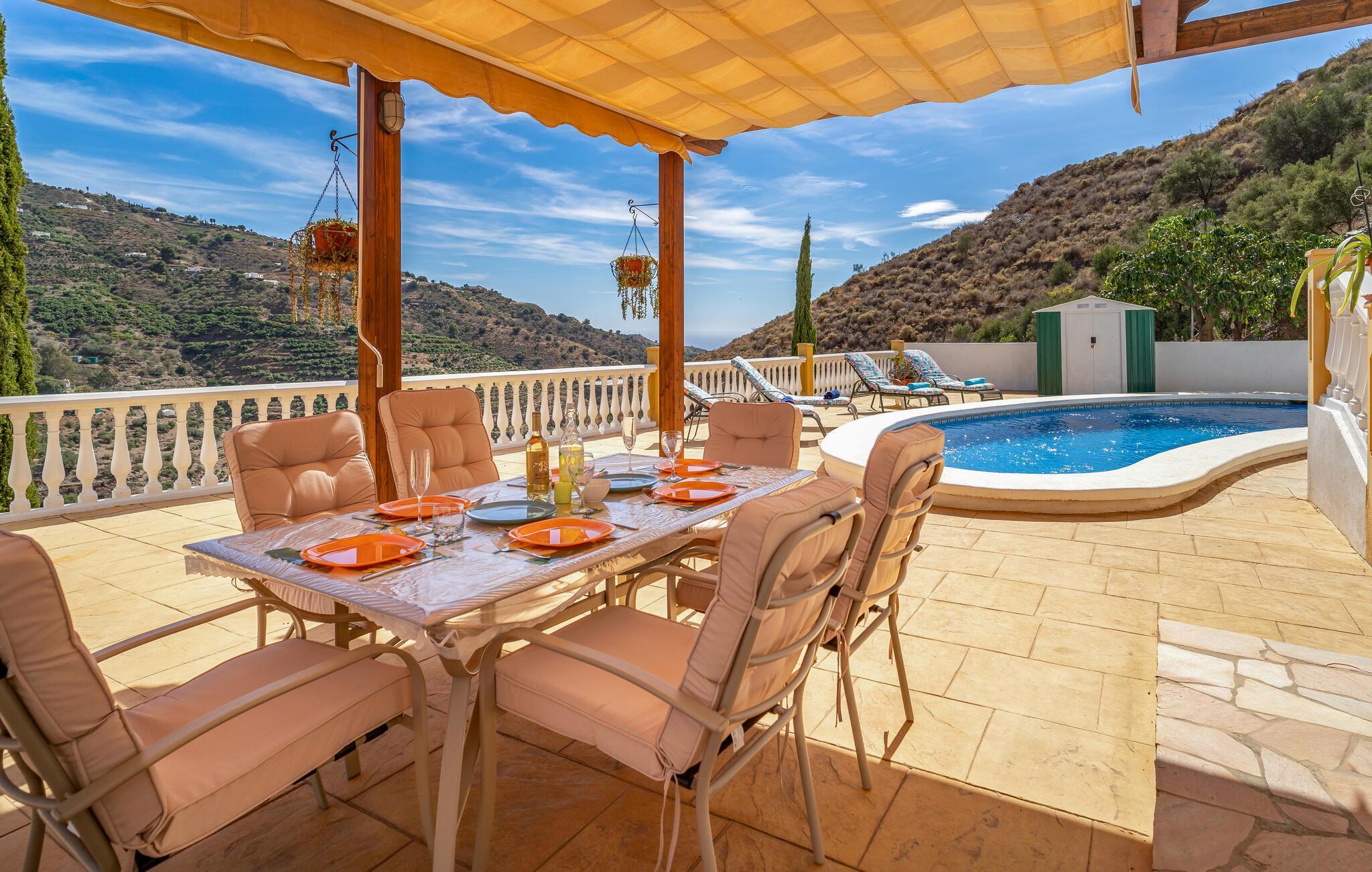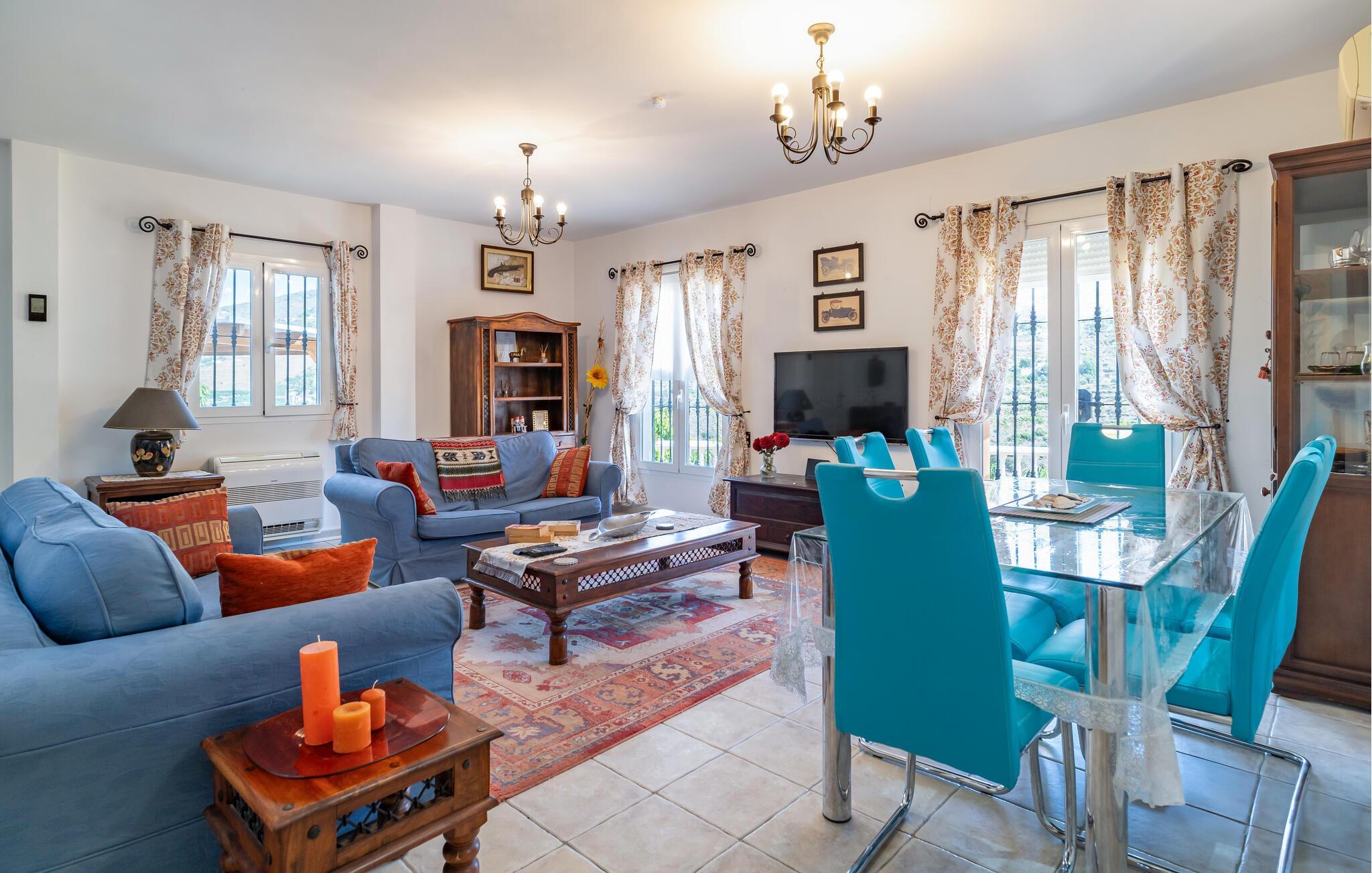 Start dagen i jeres charmerende feriehus i Sayalonga med morgenmad på den rummelige terrasse, mens I nyder den imponerende udsigt over det omkringliggende landskab. Lad roen falde over jer, mens solen stiger op over bakkerne. Tag derefter en dukkert i jeres private pool, hvor I kan køle af, eller slap af på en af liggestolene og nyd den spanske sol. Det åbne, farverige opholdsområde indbyder til afslapning. Nyd et fælles måltid i den stilfulde spisestue eller tilbered en lækker middag i det veludstyrede køkken. Brug grillen udenfor og arranger en grillaften under åben himmel, og slut dagen af med et glas vin på terrassen.