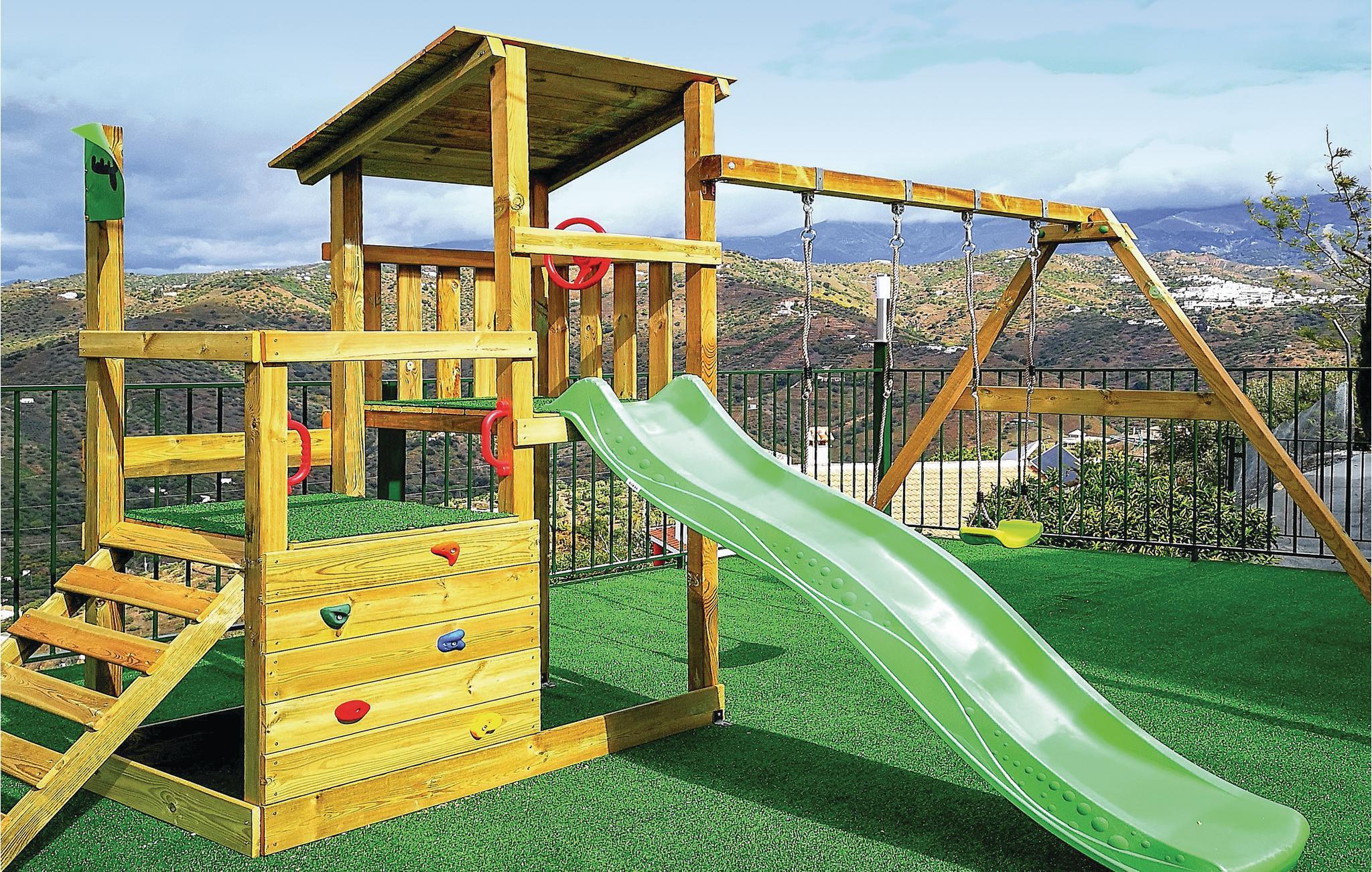 Den store pool lover forfriskelse på varme dage og er indhegnet for sikkerheden af de mindste gæsters skyld. Nyd lækkerier, som I tilbereder på stengrillen i det overdækkede område med bar, borde og stole eller slap af i skyggen i sofaerne på verandaen med jeres nærmeste. På den øverste etage venter en storslået udsigt over Sierraen.