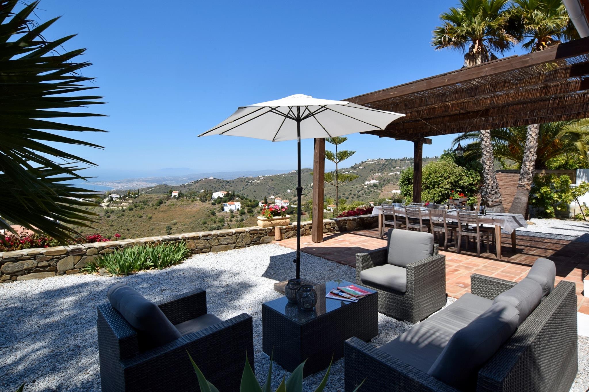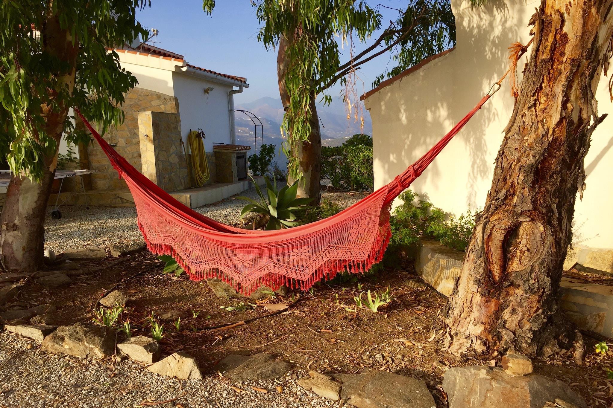Dejlig villa med privat swimmingpool, privatliv og en storslået udsigt. Villaen er noget afsondret i nærheden af den smukke hvide landsby Sayalonga, en halv times kørsel fra Costa del Sol. Hvilken smuk indstilling her! På dette dejlige feriehus kan du nyde den smukke sydlige Spanien i fred. sol på din lounger ved kanten af poolen og nyd de regionale delikatesser til frokost på den skraverede terrasse eller endelig læse den bog. Området er ideelt til dagsture og aktiviteter. Aktive mennesker kan spille golf, kano på havet ved Maro eller besøge hulerne i Nerja, men der er også masser at gøre for kulturelskere! Du bør helt sikkert besøge bodega tæt på landsbyen. Der tilbydes vinsmagning og musikkonserter om sommeren. Eller gå gennem gaderne i den maleriske landsby Frigiliana Fra dit feriehus kan du også besøge det berømte Alhambra i Granada. Det er helt sikkert en dagstur, og ferieboligen er pæne og velplejede. Huset er stort set i stueetagen (her og der et skridt) og der er en hyggeligt opholdsområde omkring t han brændeovn. Køkkenet er veludstyret, og soveværelserne har aircondition og myggenet. Haven omkring huset er smukt anlagt og meget blomstrende! Til din bekvemmelighed er der også en udendørs bruser. ATTENTION: De sidste 3,3 km på vej til huset, vil du køre over en smal vej med et par brattere passager. Denne vej er let at køre, men du skal være forsigtig, især om natten. Derfor er vejen velegnet til personer med tilstrækkelig køreoplevelse. Vagtmanden vil køre foran dig for første gang.
