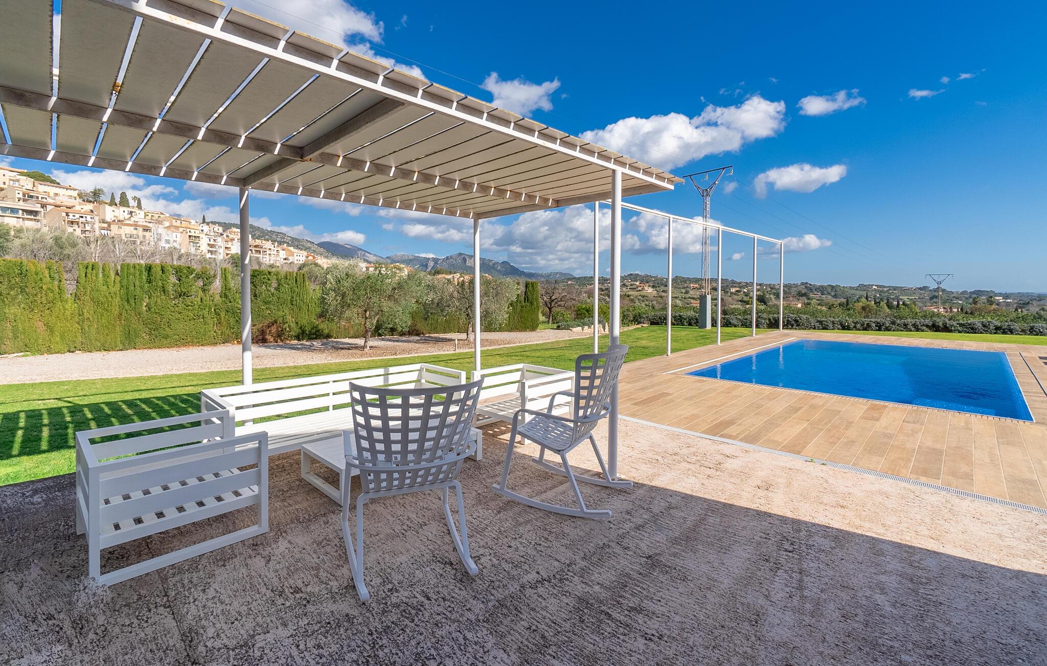 Nyd den store overdækkede terrasse med udsigt over den store have eller forfrisk jer i den indbydende pool. Her kan I opleve middelhavsro i en ekstraordinær atmosfære.