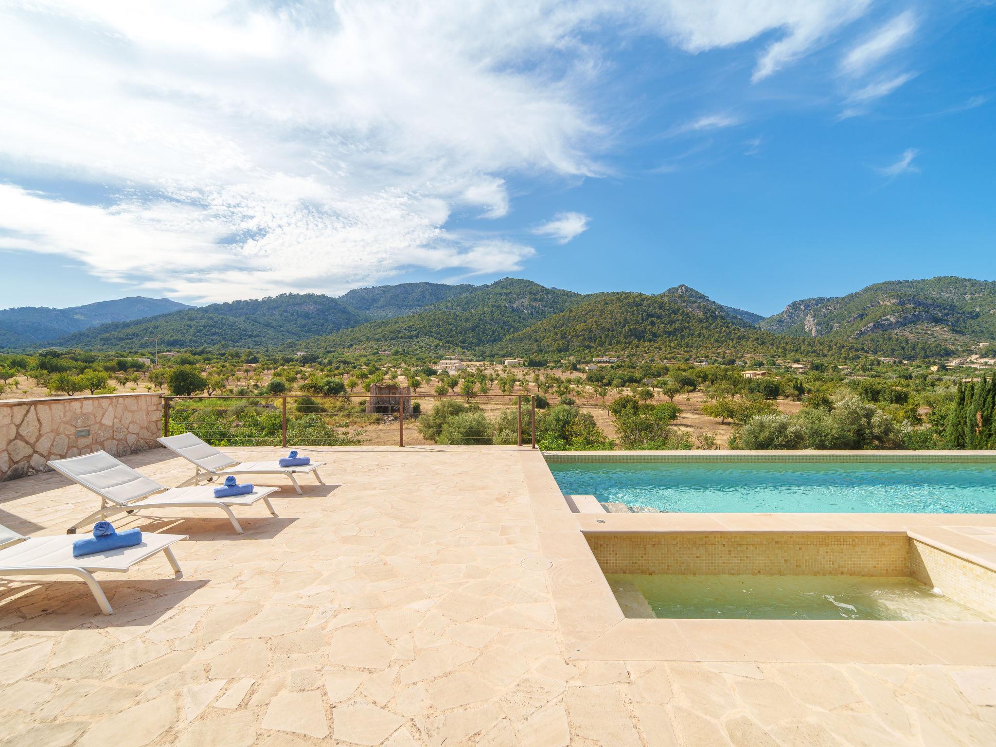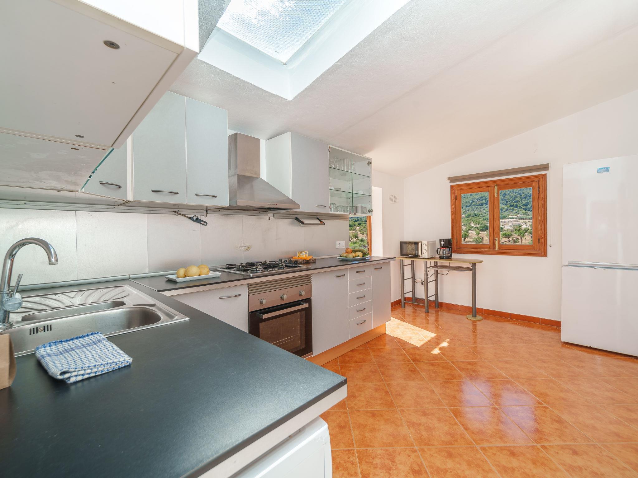 "Petit Can Garcia", 3-room villa 100 m2. Object suitable for 4 adults. Bright, practical and modern furnishings: large living/dining room with dining table, TV, flat screen, air conditioning and forced-air heating. Exit to the patio. 1 double bedroom with 1 double bed. 1 double bedroom with 2 beds (90 cm). Kitchen (4 hot plates, oven, dishwasher, microwave, freezer). Exit to the terrace, to the swimming pool. Bath/shower/WC. Natural stone floors. Comfortable furnishings in the country house style. Large terrace. Terrace furniture, barbecue, deck chairs, covered balcony. Panoramic view of the mountains, the countryside and the town. Facilities: washing machine. Internet (WiFi, free). At the house. Suitable for families. ETV/15948 // Reg. Nr.: ESFCTU0000070220000220140000000000000000000ETV/159489