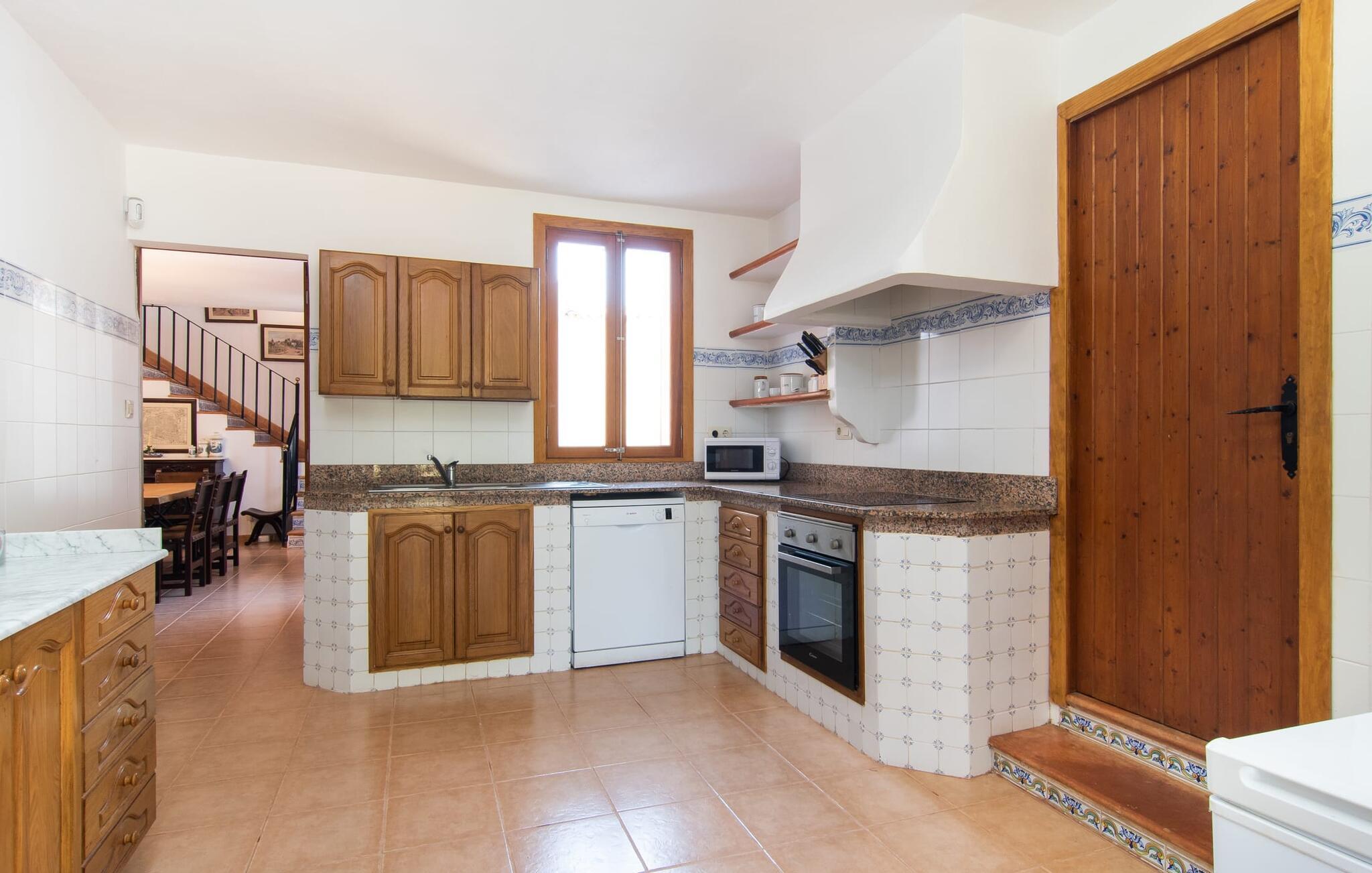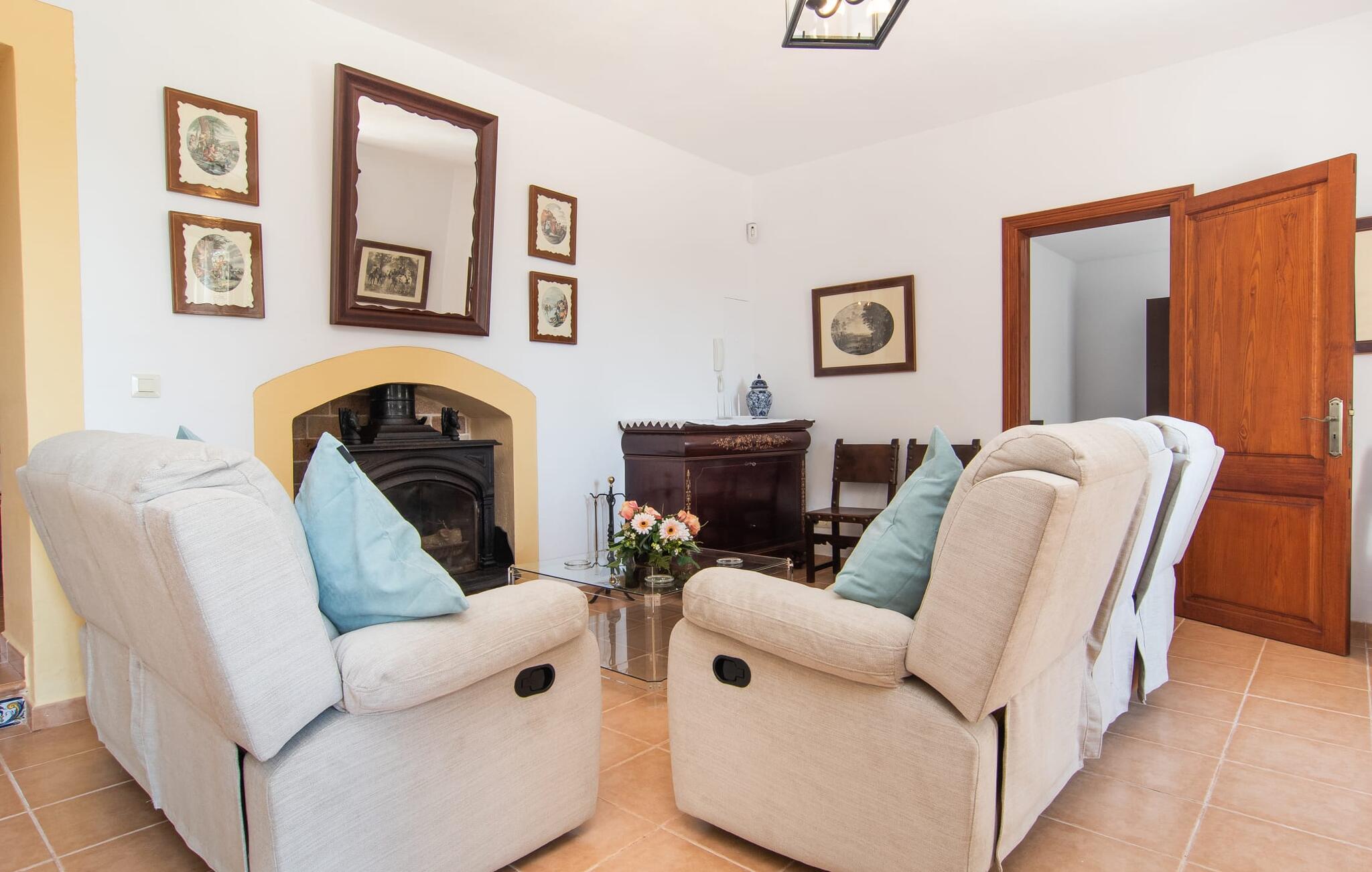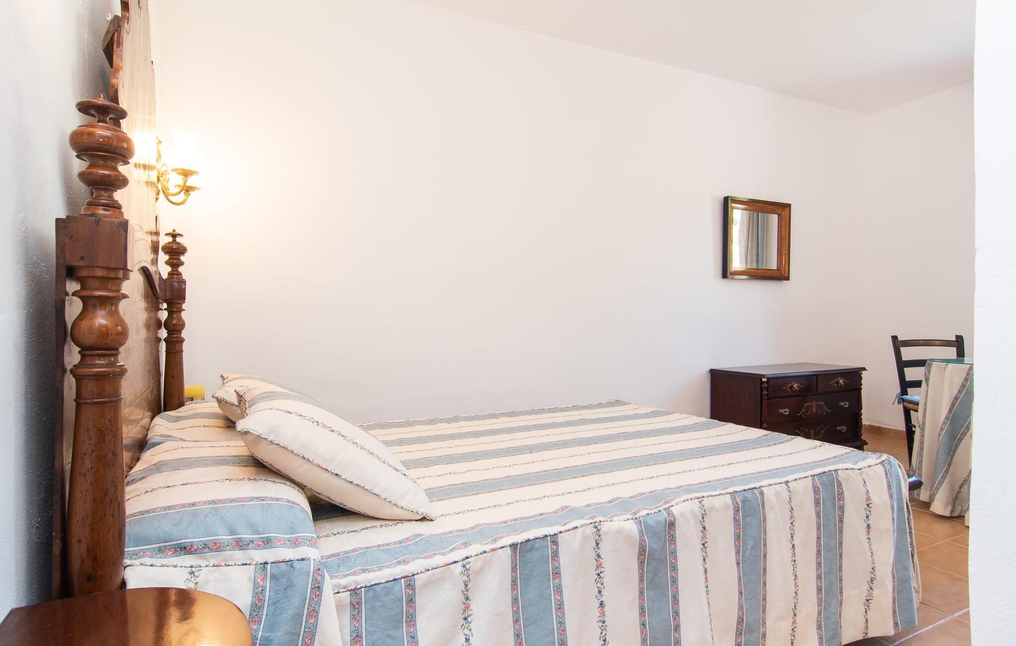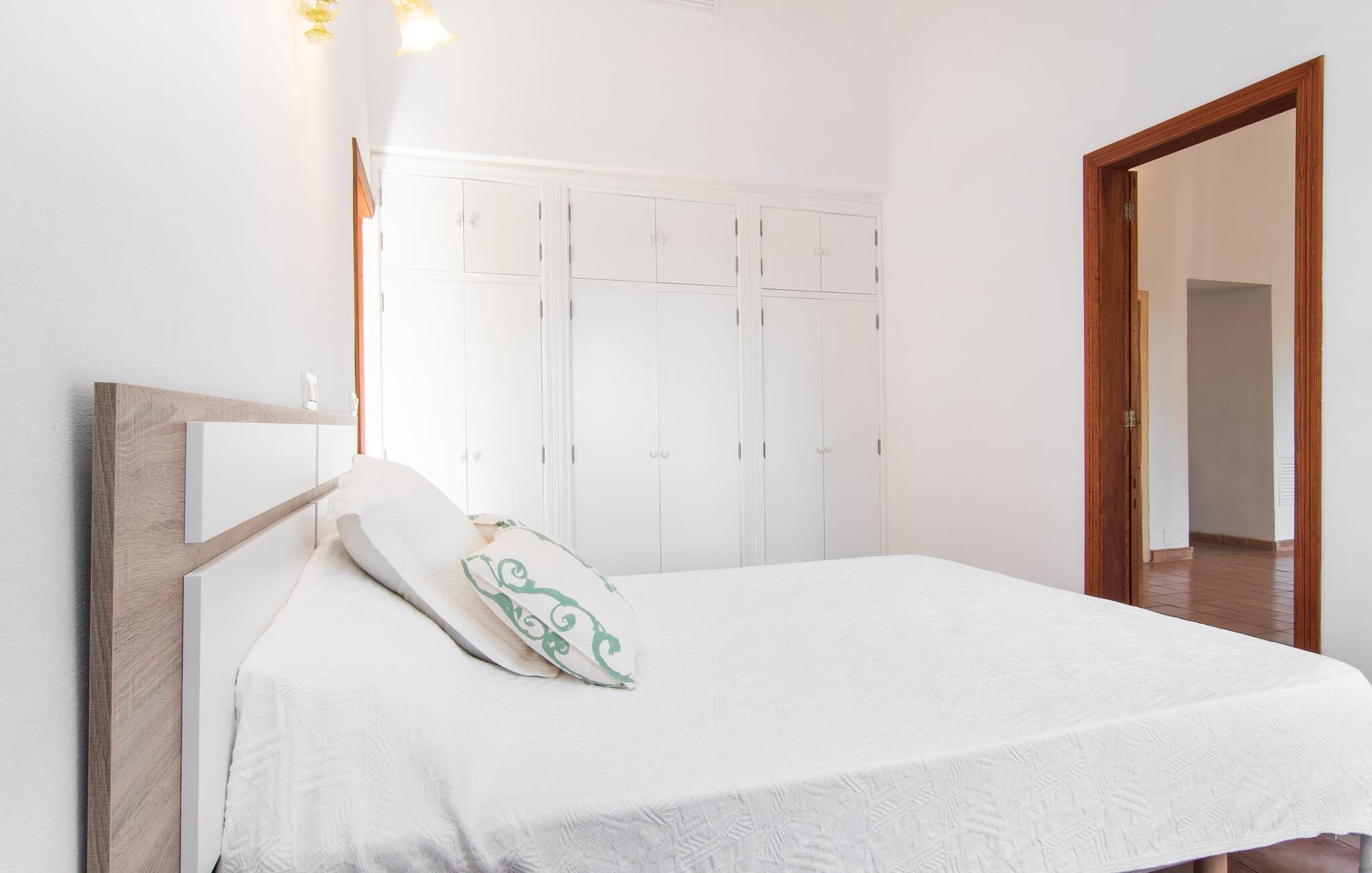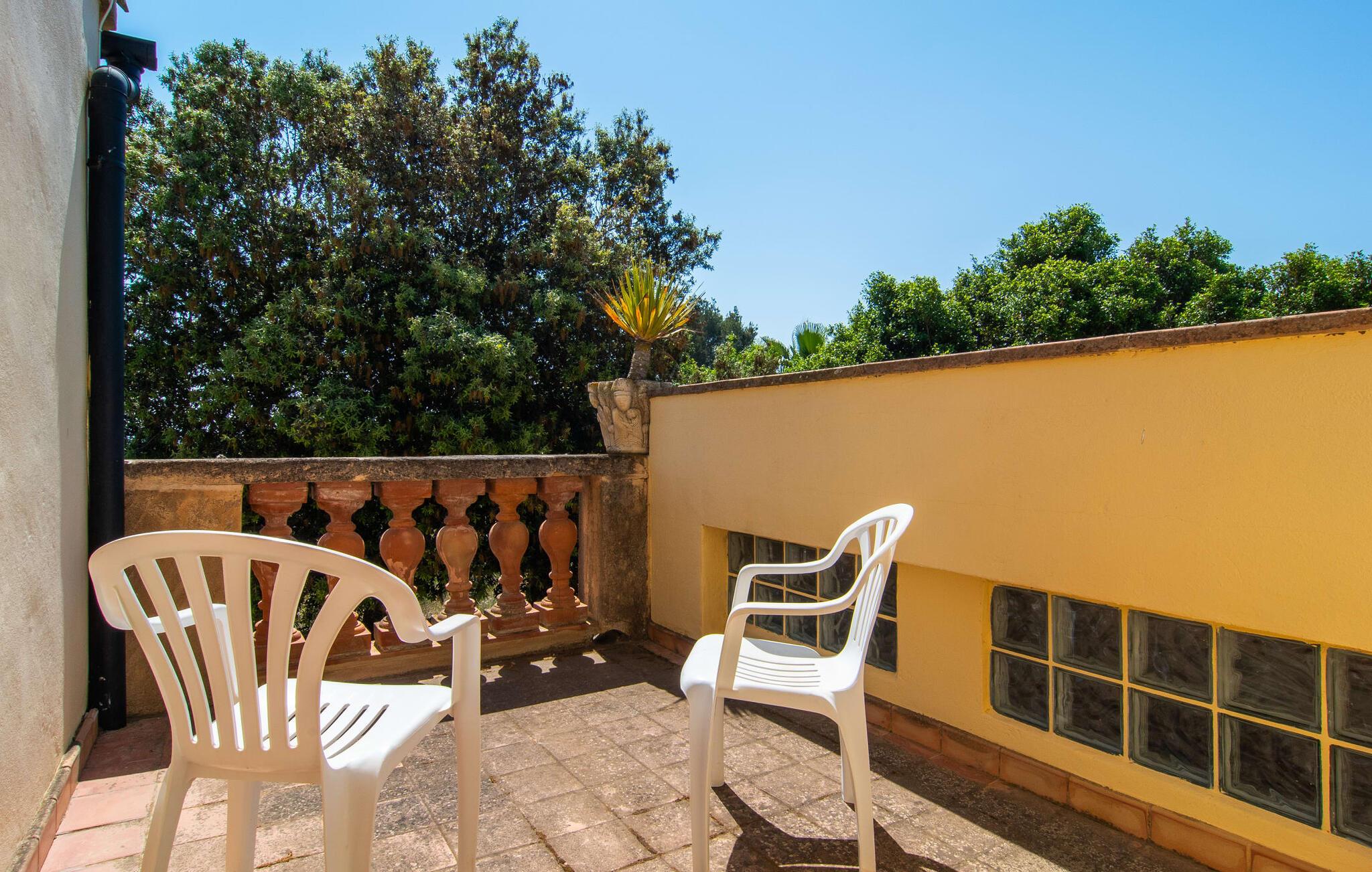 Enhver, der vælger villaen "Ses Cases de Son Isidros" kan føle sig som en stor grundejer under deres ophold på Mallorca med god samvittighed: Den omfattende ejendom minder om en vildt romantisk park, og hvorpå der vokser palmer og andre middelhavsplanter og træer. giver skygge, dækker et areal på næsten 100.000 m². Her kan I slentre som I vil, nyde de intenst lyse blomster, lege gemmeleg med de mindste, nyde eftermiddagste i et af de hyggelige siddeområder eller blot tage et forfriskende hop i det kølige vand i jeres herskabelige pool. Bagefter kan I dingle benene i vandet på kanten af stenen og fordybe jer i en underholdende ferielæsning. Fra poolterrassen, hvor flere liggestole inviterer til en lur i solen, fører stentrappe op til ejendommen, hvis stenbrudsfacade har en overdækket terrasse. I kan eventuelt sætte grillen op her sidst på eftermiddagen for at afslutte aftenen med øens kulinariske delikatesser. En stor tagterrasse og en altan er også ideelle steder at lade den milde ø-luft, som dufter behageligt af havet, blæse næsen. Huset imponerer med store rum, hvor sjælen kan ånde; Hertil bidrager harmonien mellem den dominerende hvide tone og de højkvalitets, delvist antikke træmøbler. I stuen kan I se knitren fra den flammende pejs fra de statelige lædersofaer eller, takket være moderne satellitteknologi, holde jer ajour med, hvad der sker derhjemme på widescreen-tv'et. Måske vil I helst holde jer helt væk fra hverdagens stress og jag i hele jeres ferie, så I kan fordybe jer i fred og afslapning lidt mere hver dag i disse fredfyldte omgivelser. I et sideværelse kan I spise på kurvestole eller afslutte aftenen med et sjovt brætspil. Køkkenet er fuldt udstyret; Et separat rum er reserveret til andre huslige pligter som tøjvask. Tre af de seks soveværelser og to af badeværelserne er i stueetagen, hvoraf det ene har en dobbeltseng, et en enkeltseng og et har to enkeltsenge. Ejerne lægger stor vægt på den atmosfæriske belysning af værelserne, og takket være vinduerne er interiøret lyst og venligt hele dagen lang. Det nyder også overetagen godt af, hvor de tre ekstra soveværelser er placeret - hvoraf de to har eget badeværelse. En dobbeltseng og to værelser med to enkeltsenge giver hver stor fleksibilitet i værelsesbelægningen. Og det faktum, at der er en privat stue ovenpå med en kæmpe skærm gør, at selv større grupper kan forvente et vist niveau af privatliv i denne villa. Fire af badeværelserne har endda badekar, så I kan runde dagen af med en forkælelsesoplevelse for jeres hud. Da villaen "Ses Cases de Son Isidros" ligger centralt, kan I sprede jer i alle retninger med jeres lejebil. Hvis I vælger øst, kan I være heldig at opdage en af de skjulte, uspolerede strande, der fører til blindgyder. I kan nå Manacor på 10 minutter i bil, hvor I kan nippe til en historisk cortado i en af gadecaféerne eller se travlheden på det ugentlige marked om mandagen. Den fjerne by Sant Llorenc er også perfekt til shopping. Colonia de Sant Pere er en halv times kørsel væk; Takket være bølgebryderne er kysten her særdeles velegnet til familier. Havnebyen Porto Cristo ligger 16 km væk; Her kan I se luksuriøse yachter og fiskerbåde sejle ud på havet, inden I vender tilbage til jeres villa i en vidunderlig fredelig beliggenhed. Villaen "Ses Cases de Son Isidros" overlader fiflet til andre: På grund af sin centrale beliggenhed kan I forvente dejlige udflugter fra alle fire retninger fra jeres enorme ejendom. I kan købe souvenirs til jeres kære i Manacor, 5 km væk - regionen har specialiseret sig i lædervarer. Strandene på østkysten er særligt forskellige; For eksempel kan I hoppe i havet i Porto Cristo, 20 minutters kørsel væk.