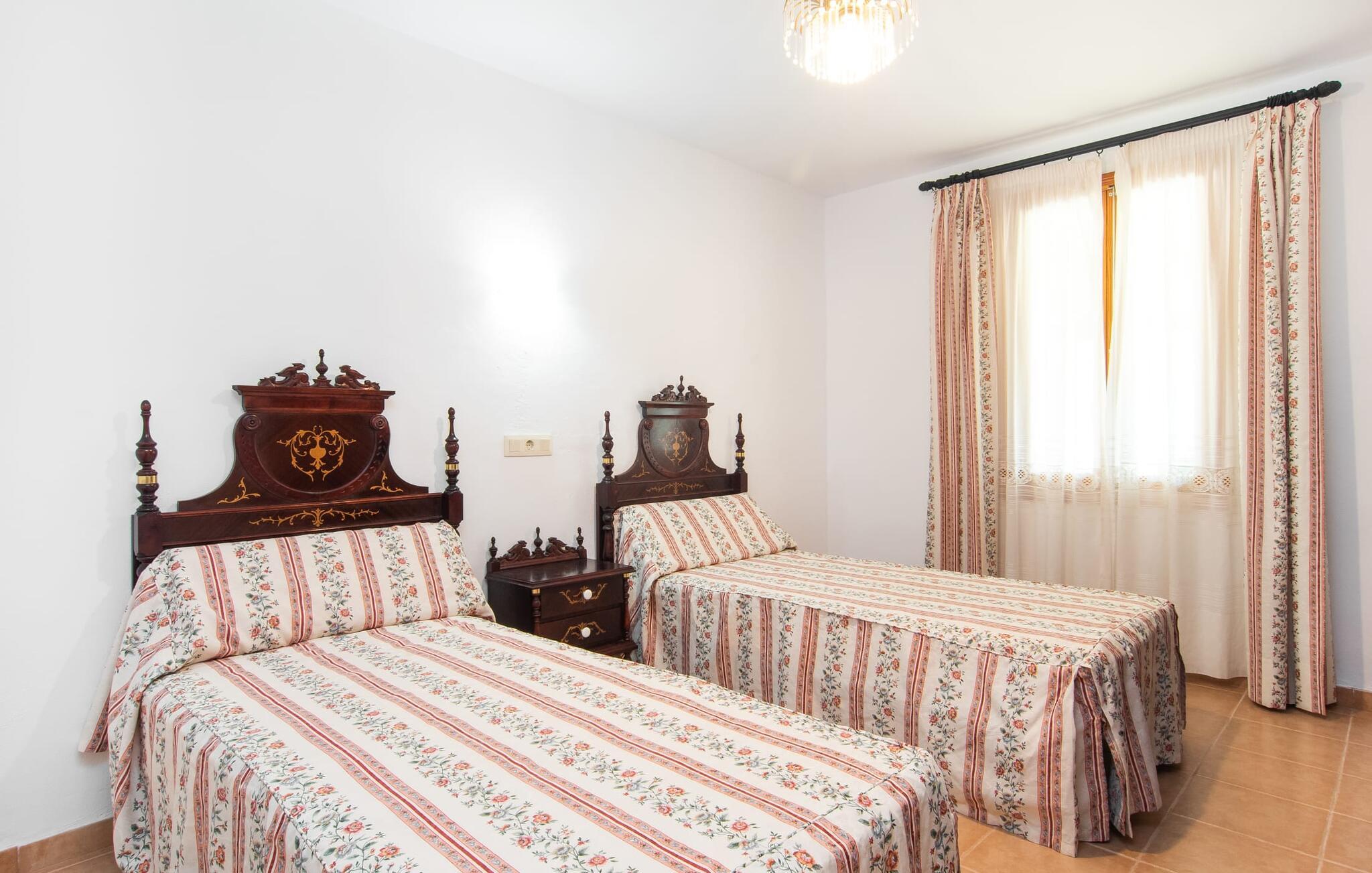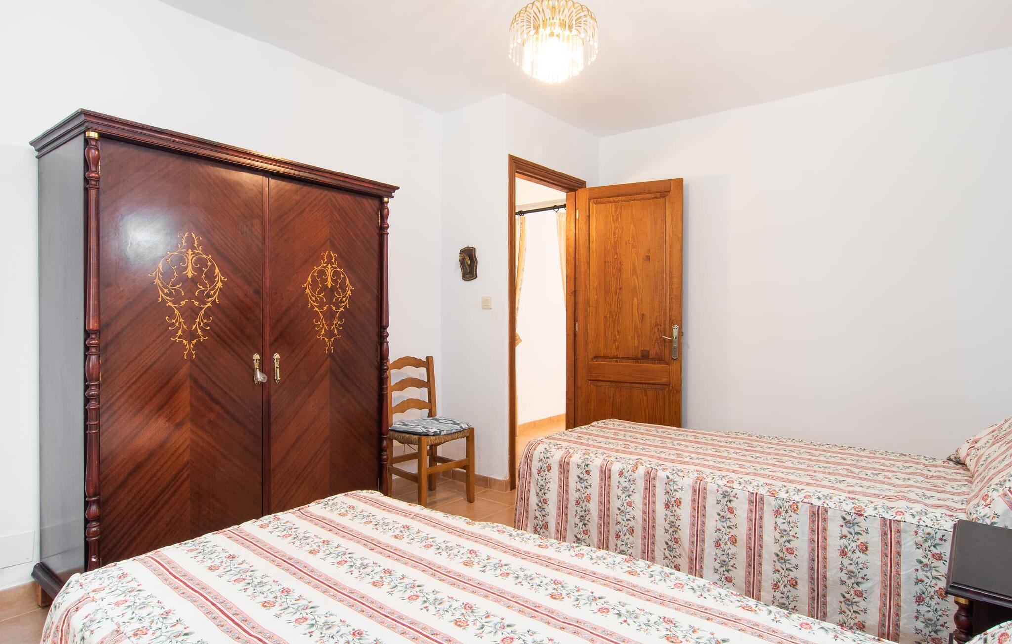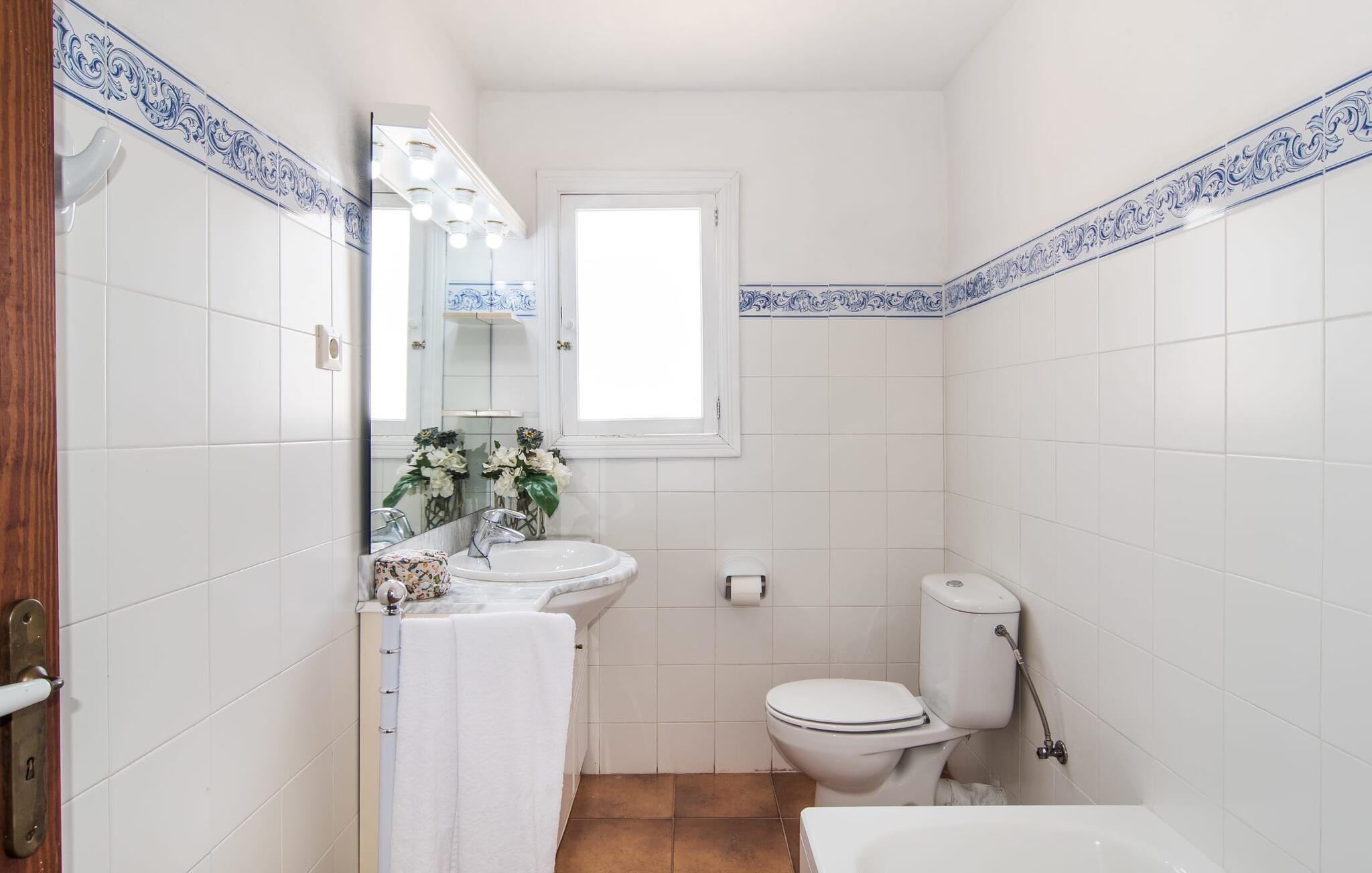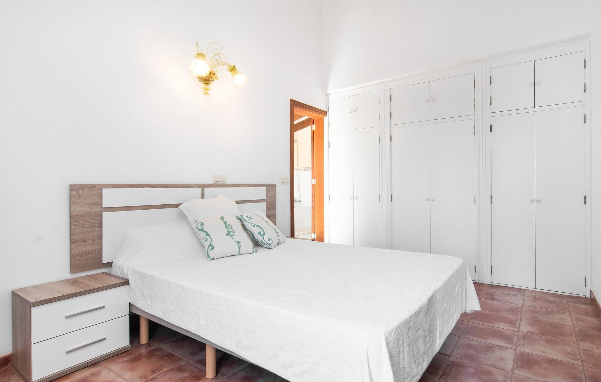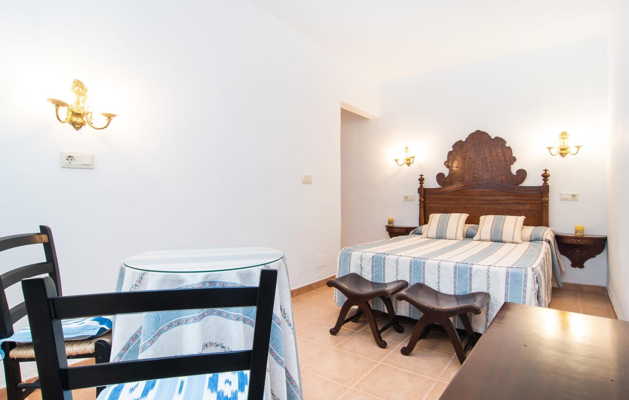 Enhver, der vælger villaen "Ses Cases de Son Isidros" kan føle sig som en stor grundejer under deres ophold på Mallorca med god samvittighed: Den omfattende ejendom minder om en vildt romantisk park, og hvorpå der vokser palmer og andre middelhavsplanter og træer. giver skygge, dækker et areal på næsten 100.000 m². Her kan I slentre som I vil, nyde de intenst lyse blomster, lege gemmeleg med de mindste, nyde eftermiddagste i et af de hyggelige siddeområder eller blot tage et forfriskende hop i det kølige vand i jeres herskabelige pool. Bagefter kan I dingle benene i vandet på kanten af stenen og fordybe jer i en underholdende ferielæsning. Fra poolterrassen, hvor flere liggestole inviterer til en lur i solen, fører stentrappe op til ejendommen, hvis stenbrudsfacade har en overdækket terrasse. I kan eventuelt sætte grillen op her sidst på eftermiddagen for at afslutte aftenen med øens kulinariske delikatesser. En stor tagterrasse og en altan er også ideelle steder at lade den milde ø-luft, som dufter behageligt af havet, blæse næsen. Huset imponerer med store rum, hvor sjælen kan ånde; Hertil bidrager harmonien mellem den dominerende hvide tone og de højkvalitets, delvist antikke træmøbler. I stuen kan I se knitren fra den flammende pejs fra de statelige lædersofaer eller, takket være moderne satellitteknologi, holde jer ajour med, hvad der sker derhjemme på widescreen-tv'et. Måske vil I helst holde jer helt væk fra hverdagens stress og jag i hele jeres ferie, så I kan fordybe jer i fred og afslapning lidt mere hver dag i disse fredfyldte omgivelser. I et sideværelse kan I spise på kurvestole eller afslutte aftenen med et sjovt brætspil. Køkkenet er fuldt udstyret; Et separat rum er reserveret til andre huslige pligter som tøjvask. Tre af de seks soveværelser og to af badeværelserne er i stueetagen, hvoraf det ene har en dobbeltseng, et en enkeltseng og et har to enkeltsenge. Ejerne lægger stor vægt på den atmosfæriske belysning af værelserne, og takket være vinduerne er interiøret lyst og venligt hele dagen lang. Det nyder også overetagen godt af, hvor de tre ekstra soveværelser er placeret - hvoraf de to har eget badeværelse. En dobbeltseng og to værelser med to enkeltsenge giver hver stor fleksibilitet i værelsesbelægningen. Og det faktum, at der er en privat stue ovenpå med en kæmpe skærm gør, at selv større grupper kan forvente et vist niveau af privatliv i denne villa. Fire af badeværelserne har endda badekar, så I kan runde dagen af med en forkælelsesoplevelse for jeres hud. Da villaen "Ses Cases de Son Isidros" ligger centralt, kan I sprede jer i alle retninger med jeres lejebil. Hvis I vælger øst, kan I være heldig at opdage en af de skjulte, uspolerede strande, der fører til blindgyder. I kan nå Manacor på 10 minutter i bil, hvor I kan nippe til en historisk cortado i en af gadecaféerne eller se travlheden på det ugentlige marked om mandagen. Den fjerne by Sant Llorenc er også perfekt til shopping. Colonia de Sant Pere er en halv times kørsel væk; Takket være bølgebryderne er kysten her særdeles velegnet til familier. Havnebyen Porto Cristo ligger 16 km væk; Her kan I se luksuriøse yachter og fiskerbåde sejle ud på havet, inden I vender tilbage til jeres villa i en vidunderlig fredelig beliggenhed. Villaen "Ses Cases de Son Isidros" overlader fiflet til andre: På grund af sin centrale beliggenhed kan I forvente dejlige udflugter fra alle fire retninger fra jeres enorme ejendom. I kan købe souvenirs til jeres kære i Manacor, 5 km væk - regionen har specialiseret sig i lædervarer. Strandene på østkysten er særligt forskellige; For eksempel kan I hoppe i havet i Porto Cristo, 20 minutters kørsel væk.