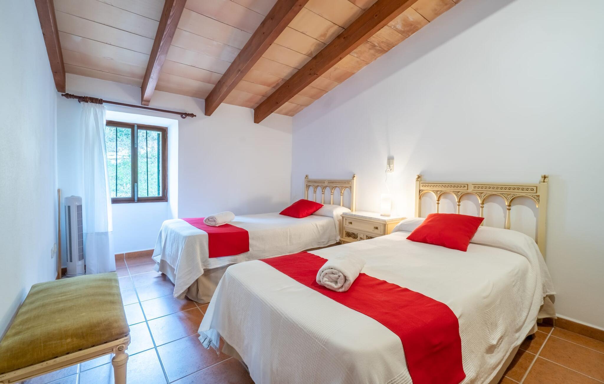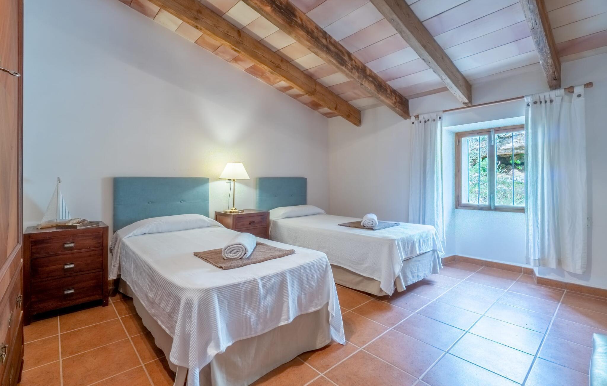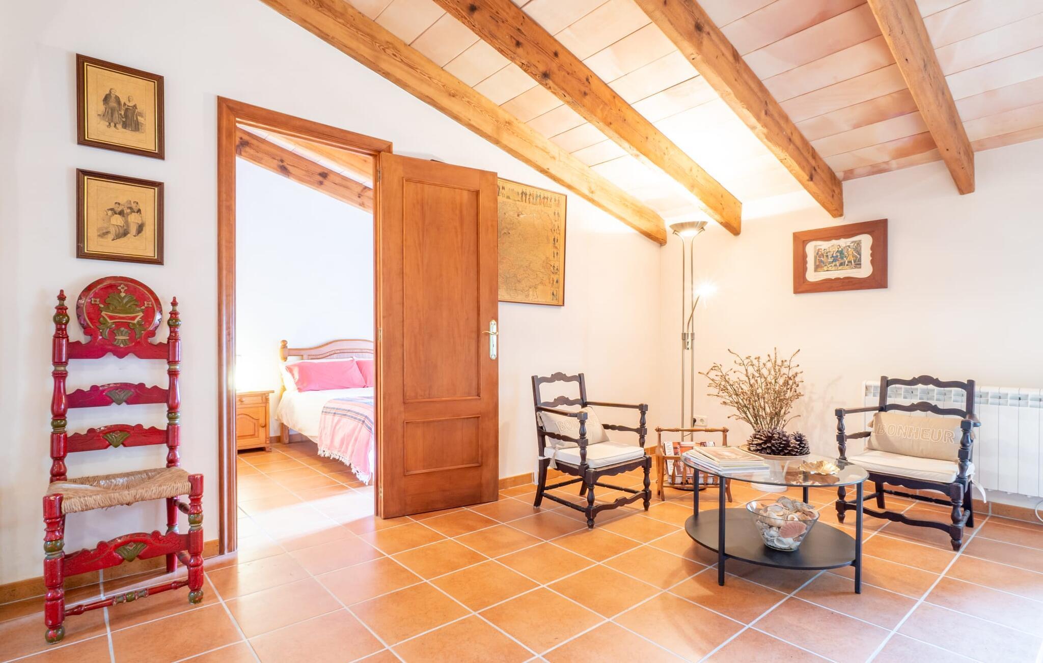 Med stuehuset "Ses Coves" booker du en afslappende ferie i et autentisk, omhyggeligt moderniseret landsted. Du vil opleve Mallorca tradition på et moderne niveau. Det rummelige bondehus er ideelt for elskere af landlig idyl. Her kan du observere fritgående dyr, mens du nyder stilheden i et afslappet miljø. Dette er et Fincallorca feriehus. Interiøret i denne klassiske, men moderne bondegård afspejler Mallorcas autenticitet. En rummelig spisestue byder dig velkommen i stueetagen. Tilstødende er et fuldt udstyret gårdkøkken med flotte traditionelle detaljer. Der er også to soveværelser og et smukt brusebad på dette niveau. På øverste etage er der en hyggelig stue med loft til kip og pejs, tre komfortable soveværelser og et badeværelse med badekar. Glæd dig til en afslappende ferie i rolige omgivelser og masser af natur ved "Ses Coves". Oplev en uforglemmelig ferie med din familie eller venner omgivet af stengetræer og andre middelhavsplanter. Dette landsted er et sandt paradis for børn, da de har mulighed for at opdage øens natur på en legende måde. Nyd en majestætisk udsigt over det smukke landskab, der strækker sig til Alcúdia-bugten. Udearealet byder på skønne siddepladser og liggestole i en grøn idyl. Til køligere stunder er der et overdækket område med sofa, spiseplads, grill og andre faciliteter. Det smukke bondehus "Ses Coves" er centralt beliggende mellem Petra og Alcúdia-bugten. Turen til Petra tager cirka 14 minutter. De smukke strande i Alcúdia-bugten ligger omkring 20 minutter væk i bil.