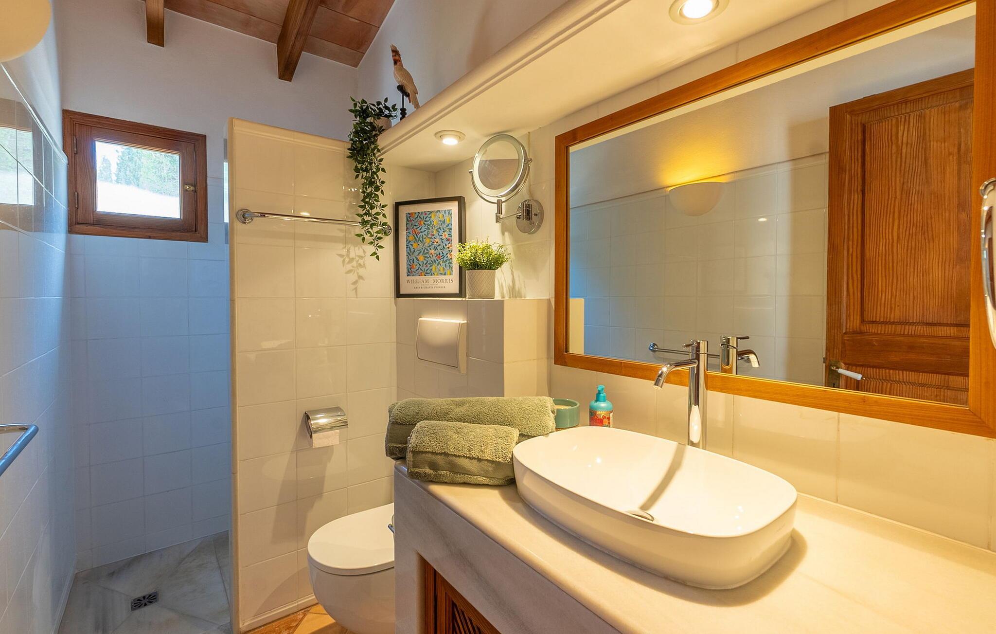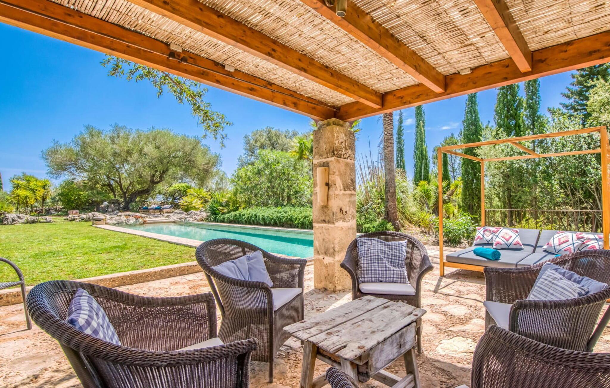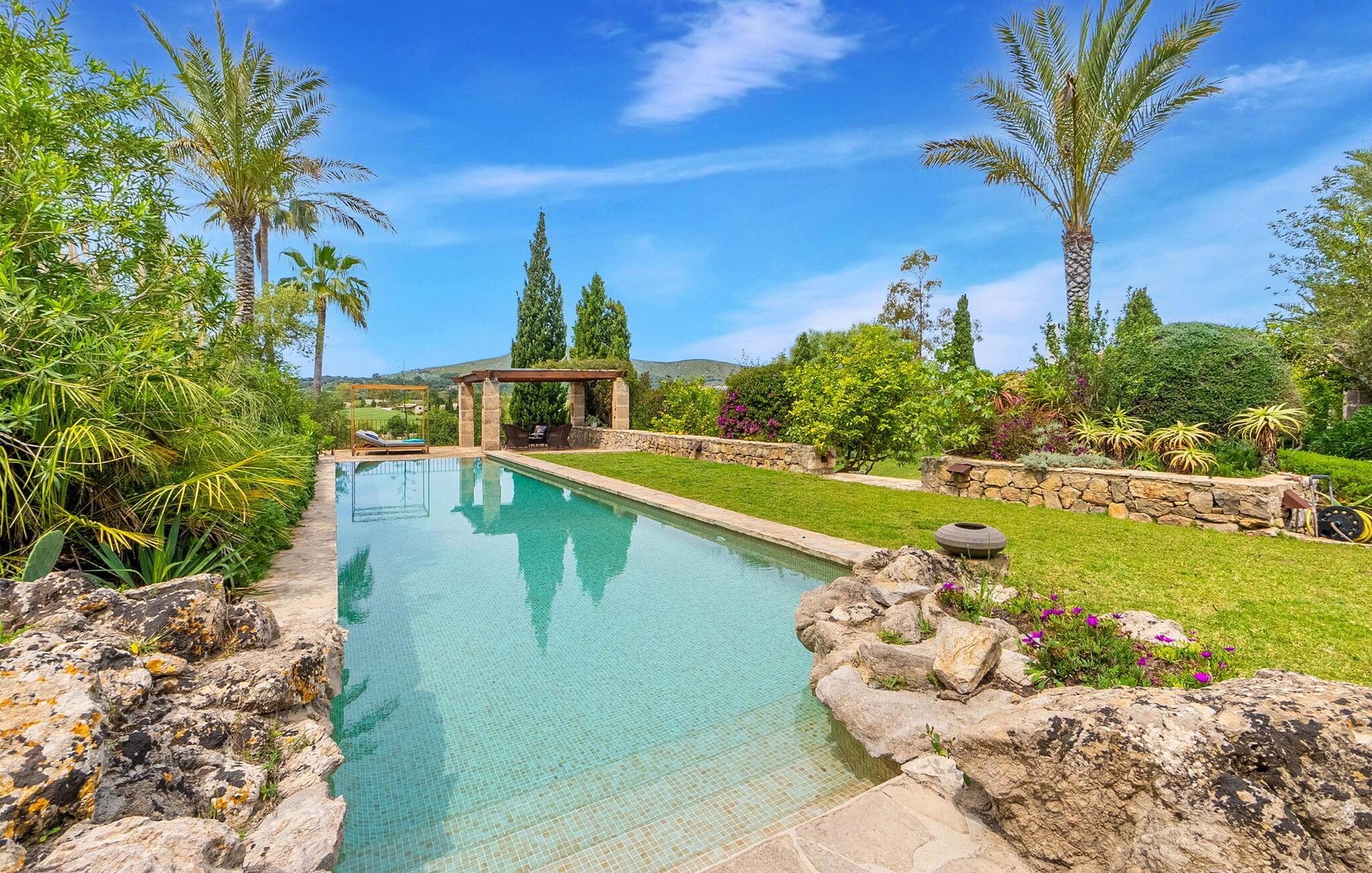 Fincaen "Ses Eretes" ligger midt i en særlig idyllisk have med alle slags hyggelige steder - det gør den til en ideel destination for alle, der søger fred og ro, og som ønsker en all-round æstetisk stemning til deres ferie på Mallorca. I den delvise skygge af ejendommen er der mandel- og oliventræer og små springvand, høje palmer og cypresser giver en typisk ø-stemning. Små stier lavet af natursten løber gennem den rummelige have, som er rig på middelhavsbuske, kaktusarter og blomstrende planter. Føl dig godt tilpas på den stilfulde daybed og nyd den fantastiske udsigt over det omkringliggende landskab med dets grønne, bølgende bakker. Måske får du selskab af de to søde katte, der hører til fincaen. Så snart du har lyst til at køle af, kan du glide ned i den smukke pool, som er så lang, at selv sportslige svømmere vil blive begejstrede. Senere er den overdækkede terrasse det ideelle sted at nyde alle de kulinariske lækkerier, der kan findes på Artàs ugentlige marked. Et glas vin fra en mallorcansk bodega passer vidunderligt til.