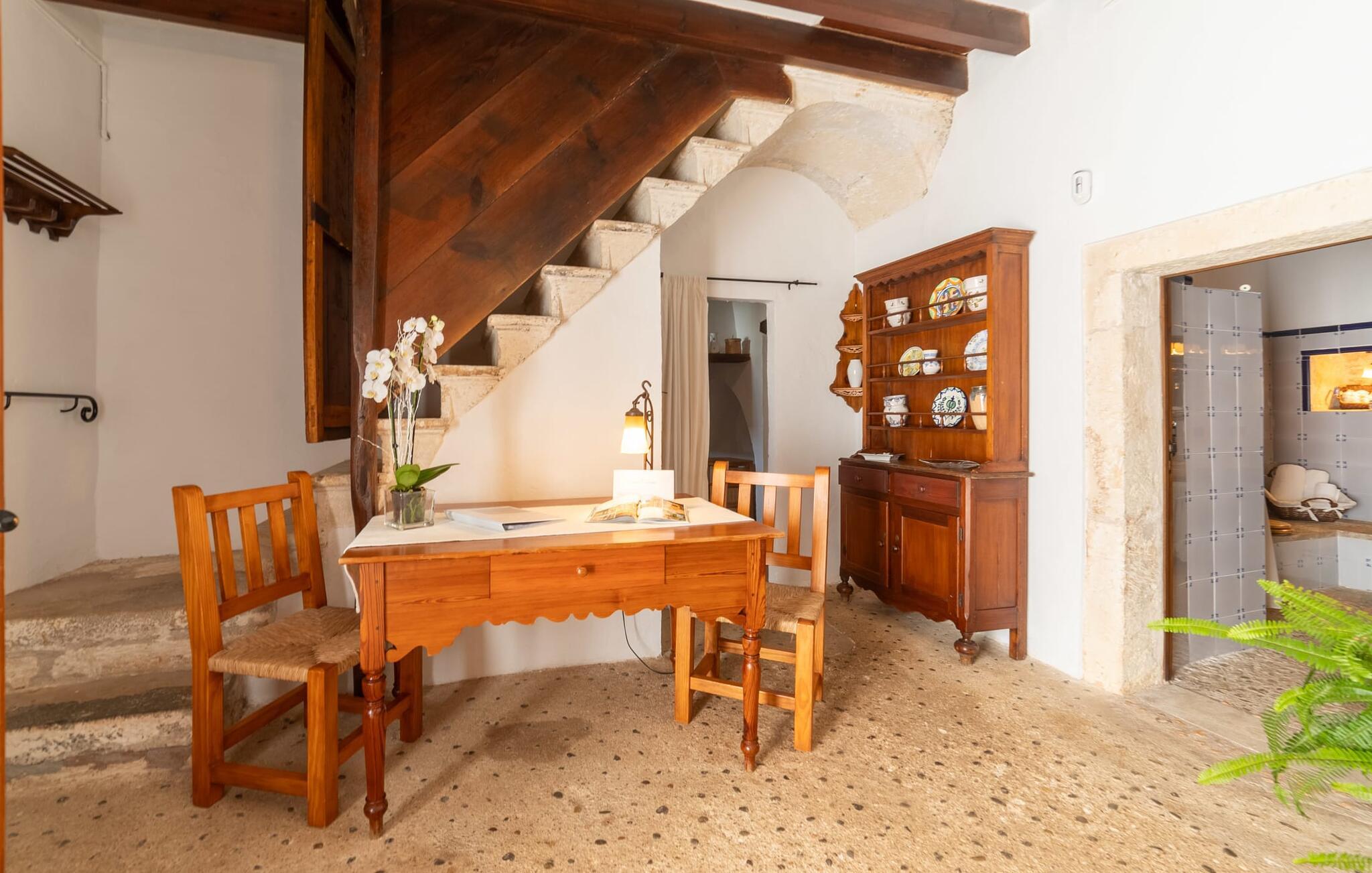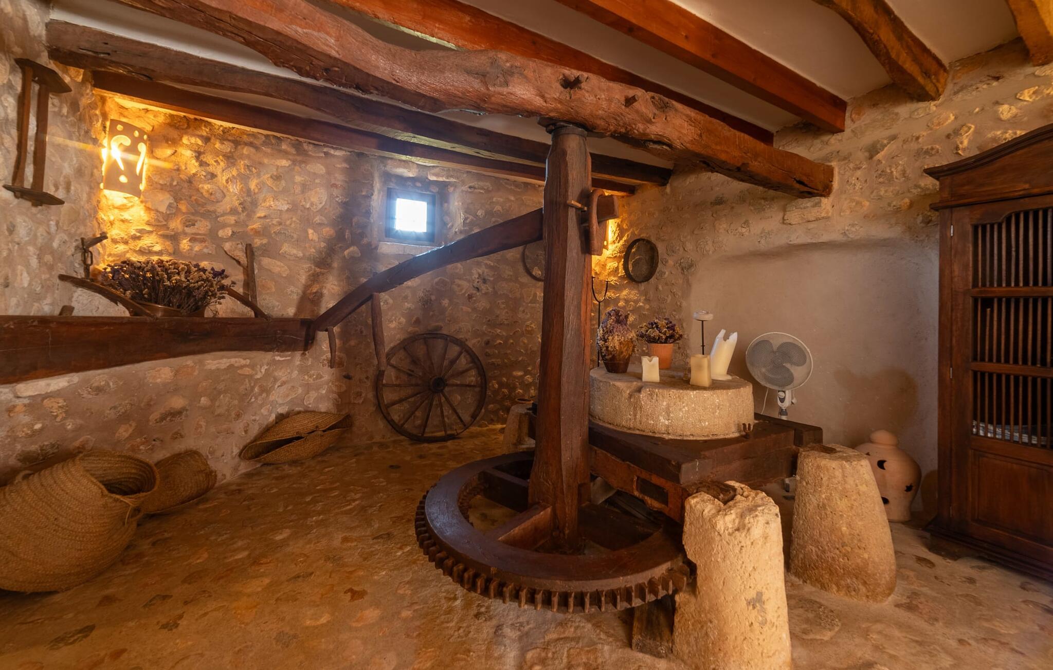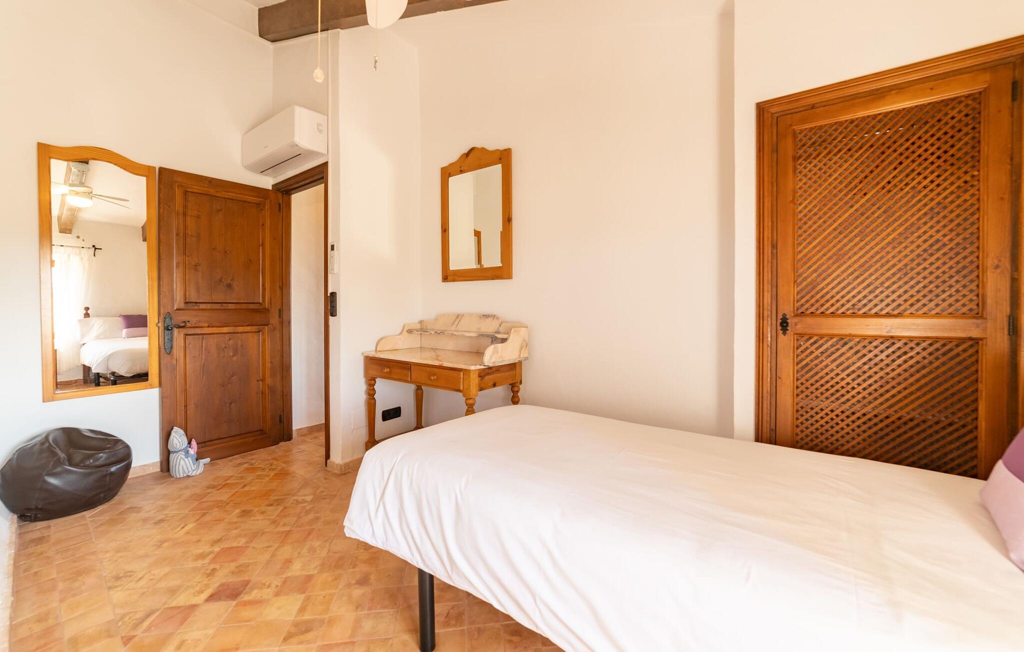 Ud for en lille gade på en vidunderlig idyllisk ejendom finder I den smukt restaurerede villa "Ses Planes". Her kan I opleve en helt afslappende ferie i en vidunderlig rolig, ugeneret beliggenhed langt væk fra stress og jag. I dette hjørne af verden bor I fuldstændig isoleret og uden nogen direkte naboer. Da de restaurerede den 600 år gamle ejendom, forblev ejerne tro mod den mallorcanske stil og var i stand til at bevare den originale flair uden at skulle give afkald på moderne bekvemmeligheder. Omgivet af oliven-, citron- og mandeltræer er der en række smukke steder at opdage uden for villaen. Siddeområdet ser meget hyggeligt ud og har et tiltalende rustik-romantisk look takket være det frodige grønne. Lige ved siden af huset, med udsigt over poolen, kan I tilbringe timevis under stråtaget, hvor træsæder giver jer et fortryllende rum. Men det er ikke alt, der venter jer her: Tag plads under en af parasollerne eller nyd middelhavslyset i en af de andre møblerede siddepladser. Elegante stole og bænke samt komfortable liggestole er tilgængelige i dette gårdlignende område til jeres meget personlige stunder. Hvis I har lyst til noget action, kan I spille et spil bordtennis på det overdækkede bordtennisbord. Der er ingen tvivl om det: I skal bruge tid ved poolen. Især på varme mallorcanske dage vil I sætte pris på det kølige vand og måske bruge tiden mellem liggestolen og vandet. Den 8 m store pool, designet med blå mosaiksten, kan nemt nås via en hjørnetrappe og varierer i dybden mellem 1,10 og 1,80 m. Den omgivende naturstensterrasse og de smukke halmparasoller giver dette område en autentisk og original stemning. Der er plads nok foran huset til flere lejebiler. Så snart I træder ind i det mallorcanske hus, er der en meget hyggelig atmosfære, og enhver, der elsker autenticitet og traditionel charme, vil straks blive imponeret. Masser af natursten, tykke vægge, klassiske bjælkelofter og spanske dekorationer bidrager til denne individuelle flair, hvor I hurtigt vil føle jer hjemme. I kan stadig se den århundreder gamle mølle og det tidligere fodertrug! I stueetagen er der et soveværelse og to badeværelser (det ene en-suite) samt en elegant spisestue, hvor I kan spise indendørs omgivet af naturstensvægge. I det originale, gamle køkken finder I en hyggelig plads ved pejsen - her kan I sidde sammen til en romantisk aften og kigge ind i de knitrende flammer. I det andet køkken kan I tilberede jeres måltider og er fuldt udstyret, så I nemt kan fortsætte med at passe jer selv. Stenvasken er et rigtigt blikfang! Lige ved siden af den imponerende kornmølle er der endnu et stort spisebord, der komfortabelt kan rumme alle. På øverste etage er der en stue med endnu en pejs. Her kan I se tv, læse en god bog eller hygge jer. Derudover er der tre soveværelser og et tredje badeværelse på denne etage. Soveværelset byder på gode afslapningsområder i klassisk design til natten eller til en siesta; I alt kan I vælge mellem en 1,50 x 1,90 seng og fire 0,90 x 1,90 m senge. Den meget autentiske villa "Ses Planes" er beliggende i en vidunderlig afsondret beliggenhed på en 17.000 m² stor grund kun 2 km syd for Búger, hvor der er mindre supermarkeder, barer og restauranter. Om søndagen kan I tage til det ugentlige marked i Sa Pobla (6 km). De populære strande ved Alcúdia-bugten, herunder Can Picafort og Platja de Muro, ligger kun en kort køretur derfra med udlejningsbil. Bemærk venligst, at denne ejendom ikke accepterer ungdomsgrupper eller polterabender. En ungdomsgruppe på denne ejendom består af personer under 30 år. Book ikke denne ejendom, hvis I er en ungdomsgruppe eller polterabend, da jeres reservation vil blive afvist, når den er booket, hvilket også kan være tilfældet ved ankomst til ejendommen eller under jeres ophold, og I vil ikke modtage en refusion
