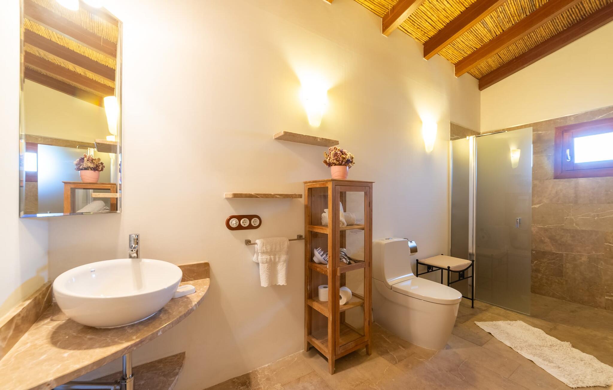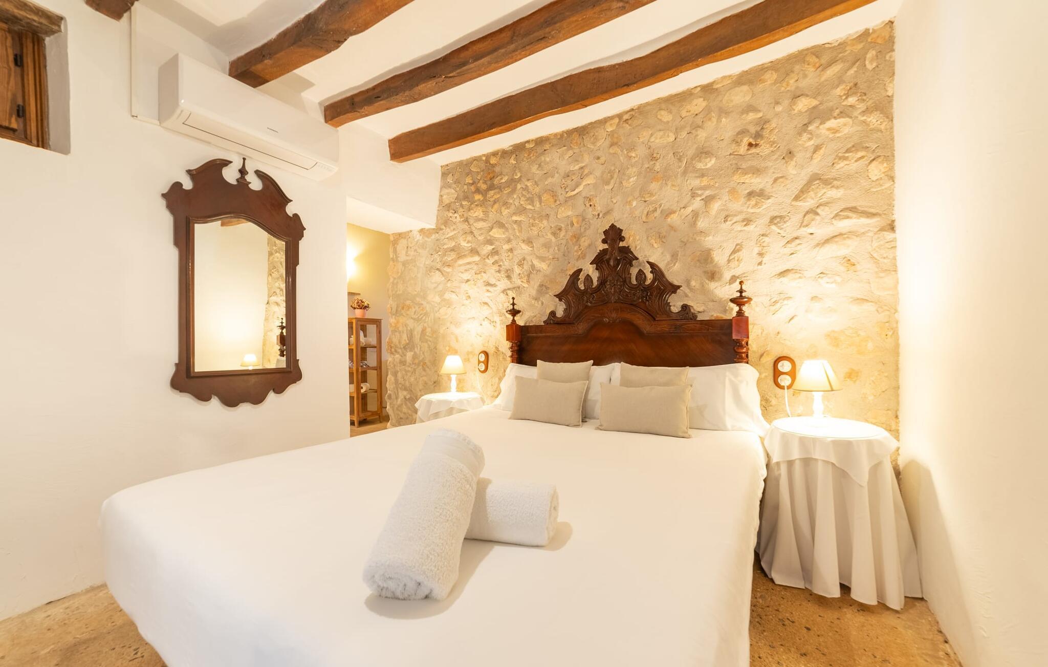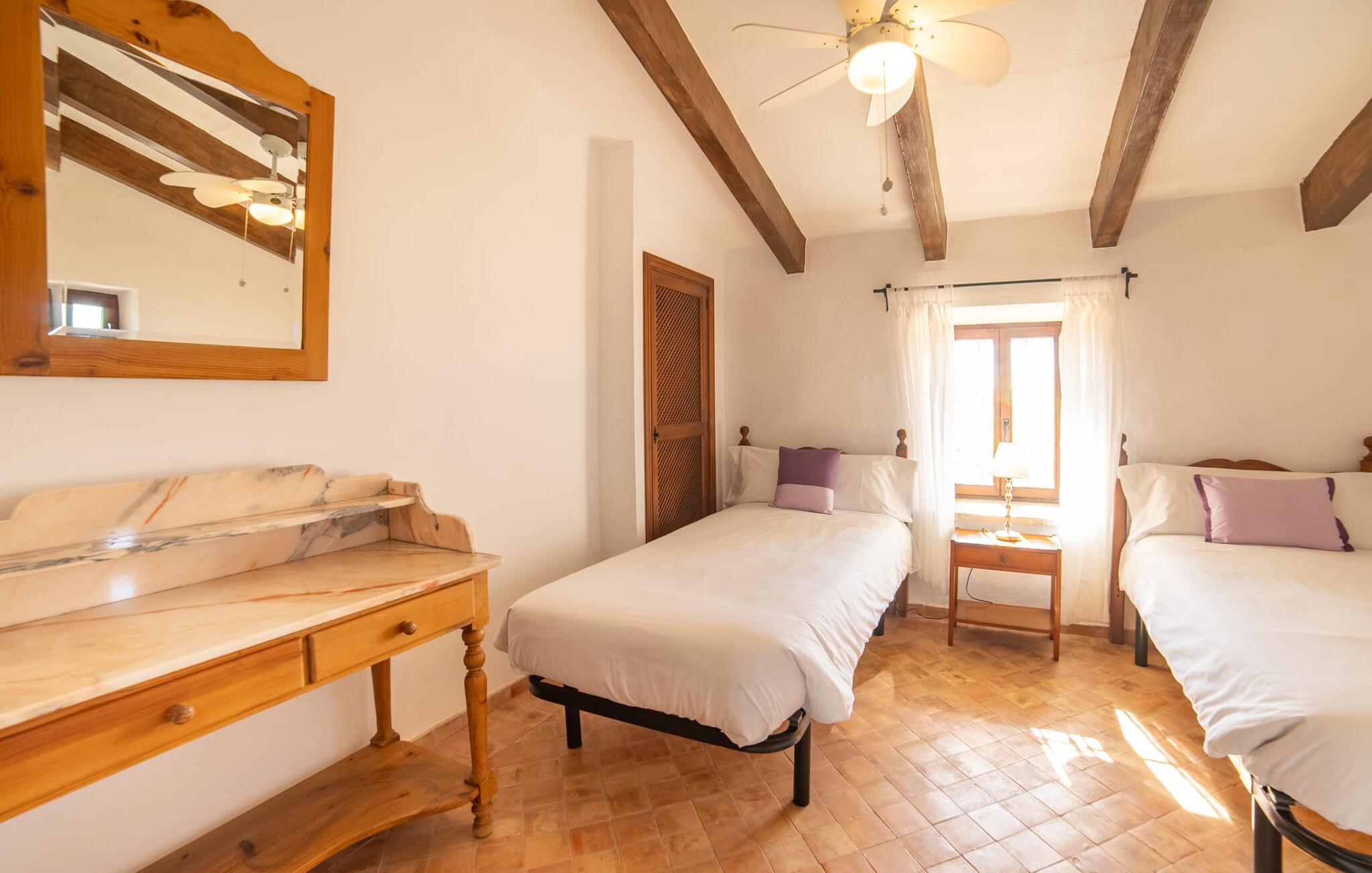 Ud for en lille gade på en vidunderlig idyllisk ejendom finder I den smukt restaurerede villa "Ses Planes". Her kan I opleve en helt afslappende ferie i en vidunderlig rolig, ugeneret beliggenhed langt væk fra stress og jag. I dette hjørne af verden bor I fuldstændig isoleret og uden nogen direkte naboer. Da de restaurerede den 600 år gamle ejendom, forblev ejerne tro mod den mallorcanske stil og var i stand til at bevare den originale flair uden at skulle give afkald på moderne bekvemmeligheder. Omgivet af oliven-, citron- og mandeltræer er der en række smukke steder at opdage uden for villaen. Siddeområdet ser meget hyggeligt ud og har et tiltalende rustik-romantisk look takket være det frodige grønne. Lige ved siden af huset, med udsigt over poolen, kan I tilbringe timevis under stråtaget, hvor træsæder giver jer et fortryllende rum. Men det er ikke alt, der venter jer her: Tag plads under en af parasollerne eller nyd middelhavslyset i en af de andre møblerede siddepladser. Elegante stole og bænke samt komfortable liggestole er tilgængelige i dette gårdlignende område til jeres meget personlige stunder. Hvis I har lyst til noget action, kan I spille et spil bordtennis på det overdækkede bordtennisbord. Der er ingen tvivl om det: I skal bruge tid ved poolen. Især på varme mallorcanske dage vil I sætte pris på det kølige vand og måske bruge tiden mellem liggestolen og vandet. Den 8 m store pool, designet med blå mosaiksten, kan nemt nås via en hjørnetrappe og varierer i dybden mellem 1,10 og 1,80 m. Den omgivende naturstensterrasse og de smukke halmparasoller giver dette område en autentisk og original stemning. Der er plads nok foran huset til flere lejebiler. Så snart I træder ind i det mallorcanske hus, er der en meget hyggelig atmosfære, og enhver, der elsker autenticitet og traditionel charme, vil straks blive imponeret. Masser af natursten, tykke vægge, klassiske bjælkelofter og spanske dekorationer bidrager til denne individuelle flair, hvor I hurtigt vil føle jer hjemme. I kan stadig se den århundreder gamle mølle og det tidligere fodertrug! I stueetagen er der et soveværelse og to badeværelser (det ene en-suite) samt en elegant spisestue, hvor I kan spise indendørs omgivet af naturstensvægge. I det originale, gamle køkken finder I en hyggelig plads ved pejsen - her kan I sidde sammen til en romantisk aften og kigge ind i de knitrende flammer. I det andet køkken kan I tilberede jeres måltider og er fuldt udstyret, så I nemt kan fortsætte med at passe jer selv. Stenvasken er et rigtigt blikfang! Lige ved siden af den imponerende kornmølle er der endnu et stort spisebord, der komfortabelt kan rumme alle. På øverste etage er der en stue med endnu en pejs. Her kan I se tv, læse en god bog eller hygge jer. Derudover er der tre soveværelser og et tredje badeværelse på denne etage. Soveværelset byder på gode afslapningsområder i klassisk design til natten eller til en siesta; I alt kan I vælge mellem en 1,50 x 1,90 seng og fire 0,90 x 1,90 m senge. Den meget autentiske villa "Ses Planes" er beliggende i en vidunderlig afsondret beliggenhed på en 17.000 m² stor grund kun 2 km syd for Búger, hvor der er mindre supermarkeder, barer og restauranter. Om søndagen kan I tage til det ugentlige marked i Sa Pobla (6 km). De populære strande ved Alcúdia-bugten, herunder Can Picafort og Platja de Muro, ligger kun en kort køretur derfra med udlejningsbil. Bemærk venligst, at denne ejendom ikke accepterer ungdomsgrupper eller polterabender. En ungdomsgruppe på denne ejendom består af personer under 30 år. Book ikke denne ejendom, hvis I er en ungdomsgruppe eller polterabend, da jeres reservation vil blive afvist, når den er booket, hvilket også kan være tilfældet ved ankomst til ejendommen eller under jeres ophold, og I vil ikke modtage en refusion