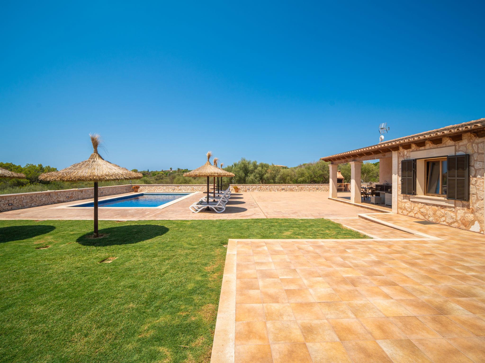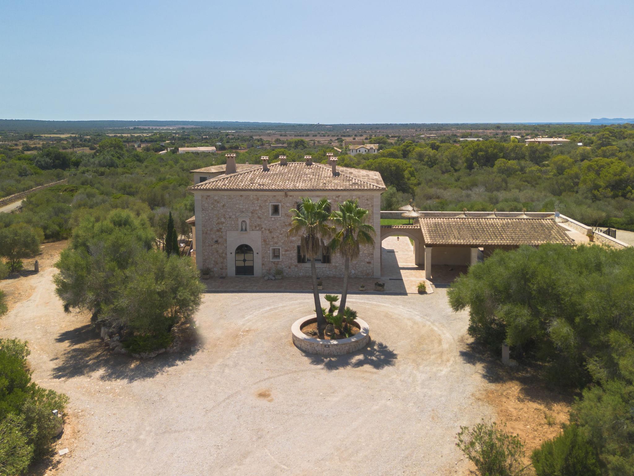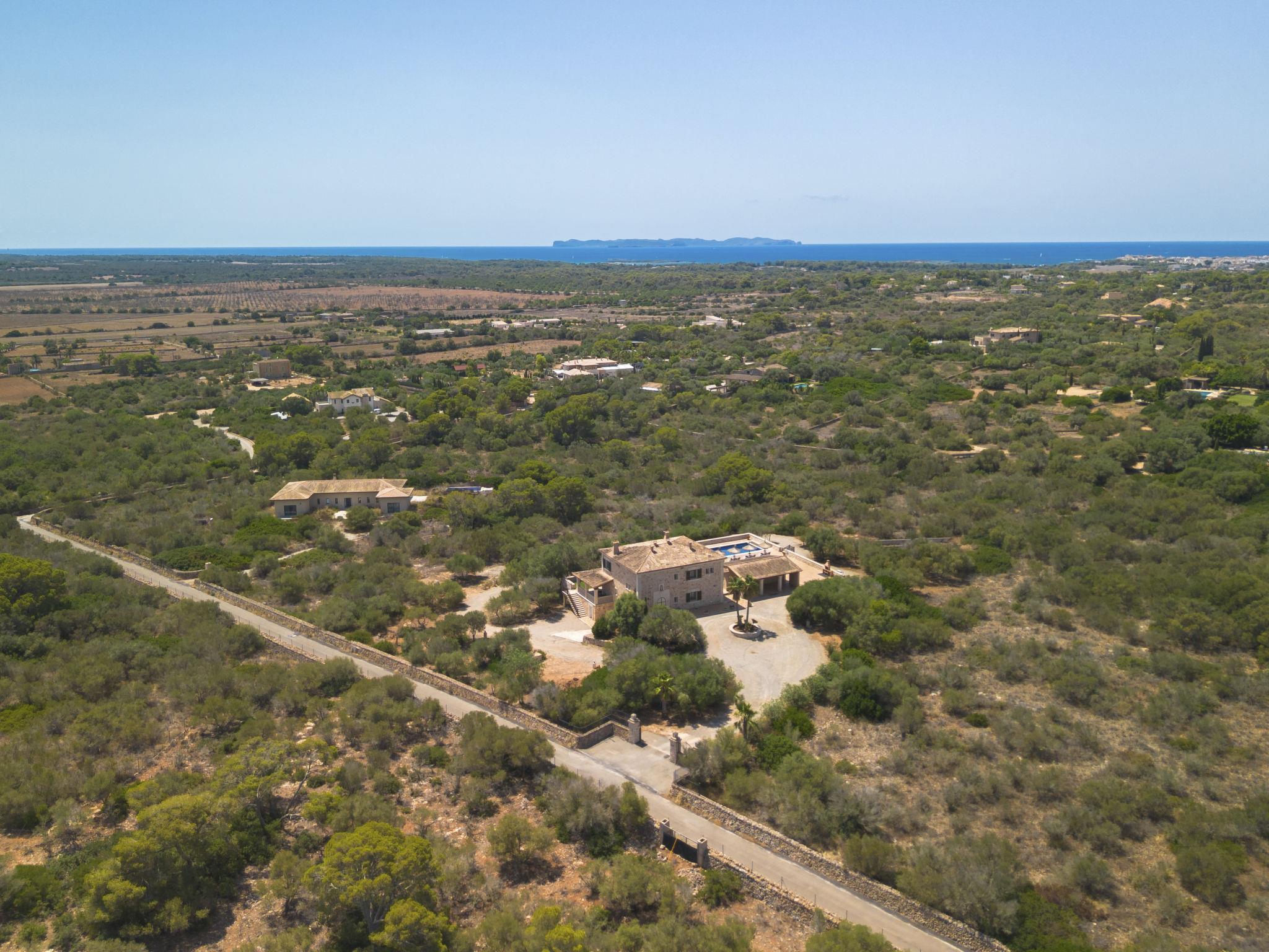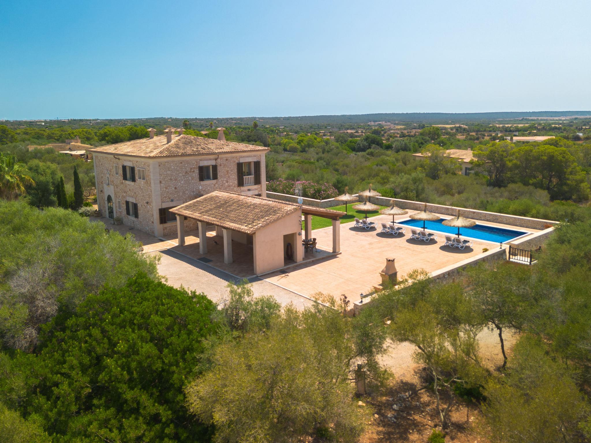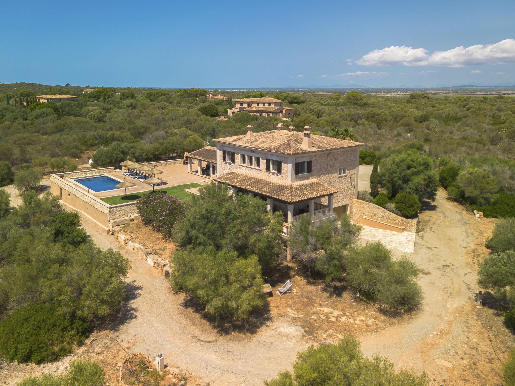 3 km from Ses Salines: Large farm estate "Casa Eva", detached, surrounded by fields. 3 km from the centre of Ses Salines, 4 km from the centre of Colonia Sant Jordi, 13 km from the centre of Campos, 5 km from the sea, south facing position. Private: natural state property 16'000 m2 (fenced) with lawn, swimming pool (10 x 5 m, seasonal availability: 01.Jan. - 31.Dec.) with salt-electrolysis pool-cleaning system. Shower/WC in the pool area, outdoor shower, pool maintenance by the owner/gardener. In the house: central heating system. Roofed, parking (for 3 cars) on the premises. Bus stop "Ses Salines" 3 km, railway station "Manacor" 37 km, sandy beach "Es Trenc" 5 km. Please note: car recommended. The owner does not accept any youth groups.