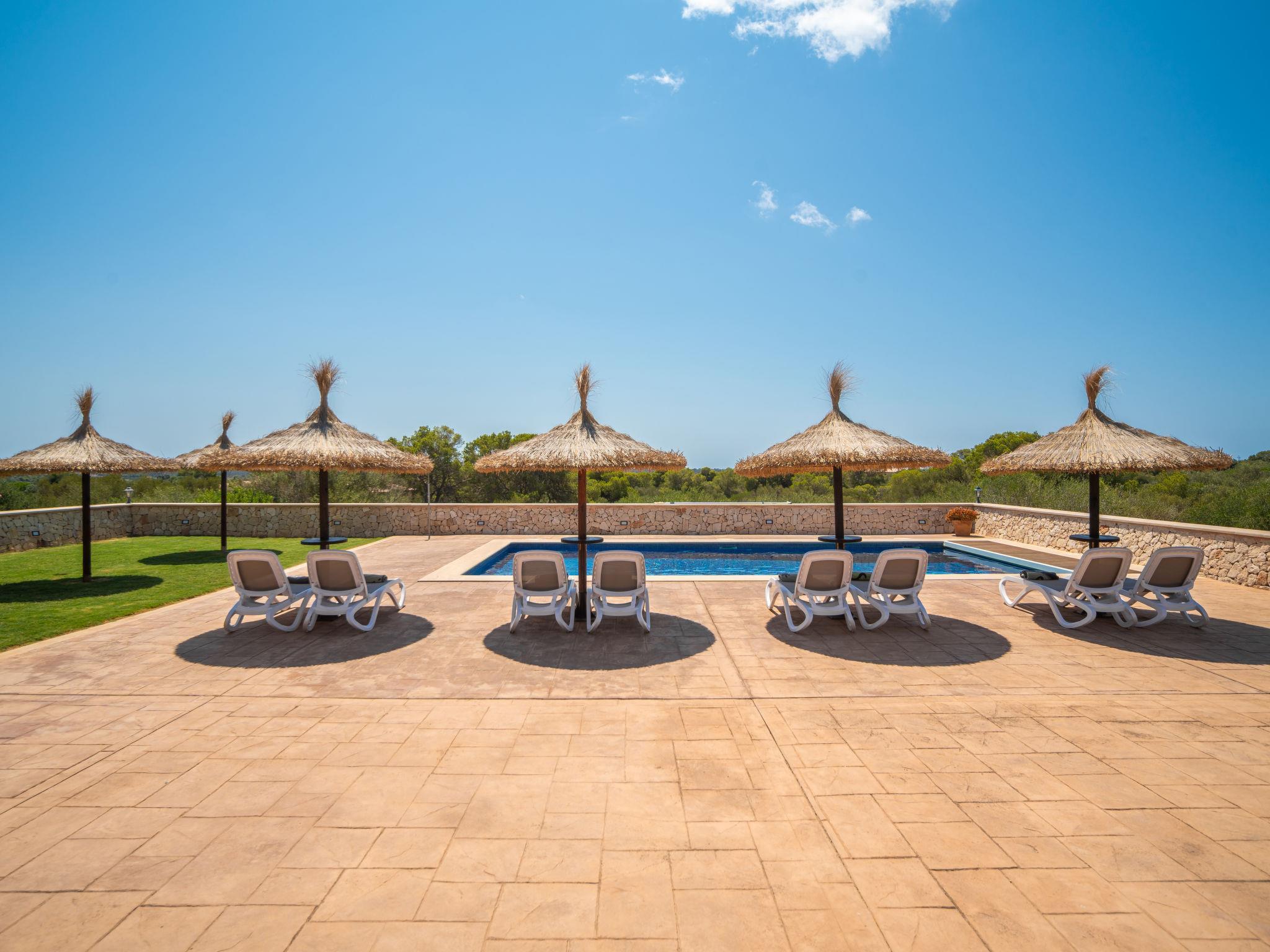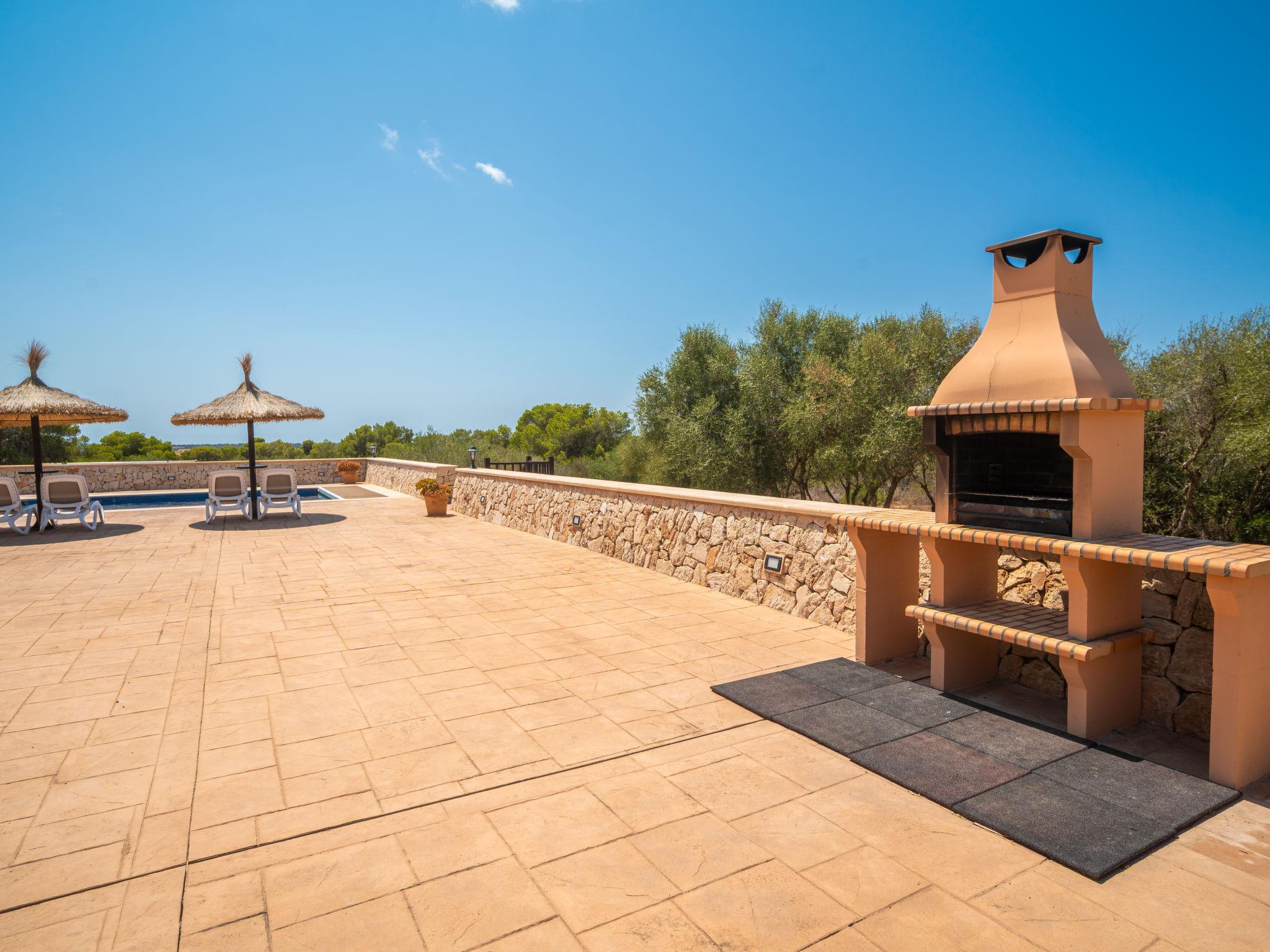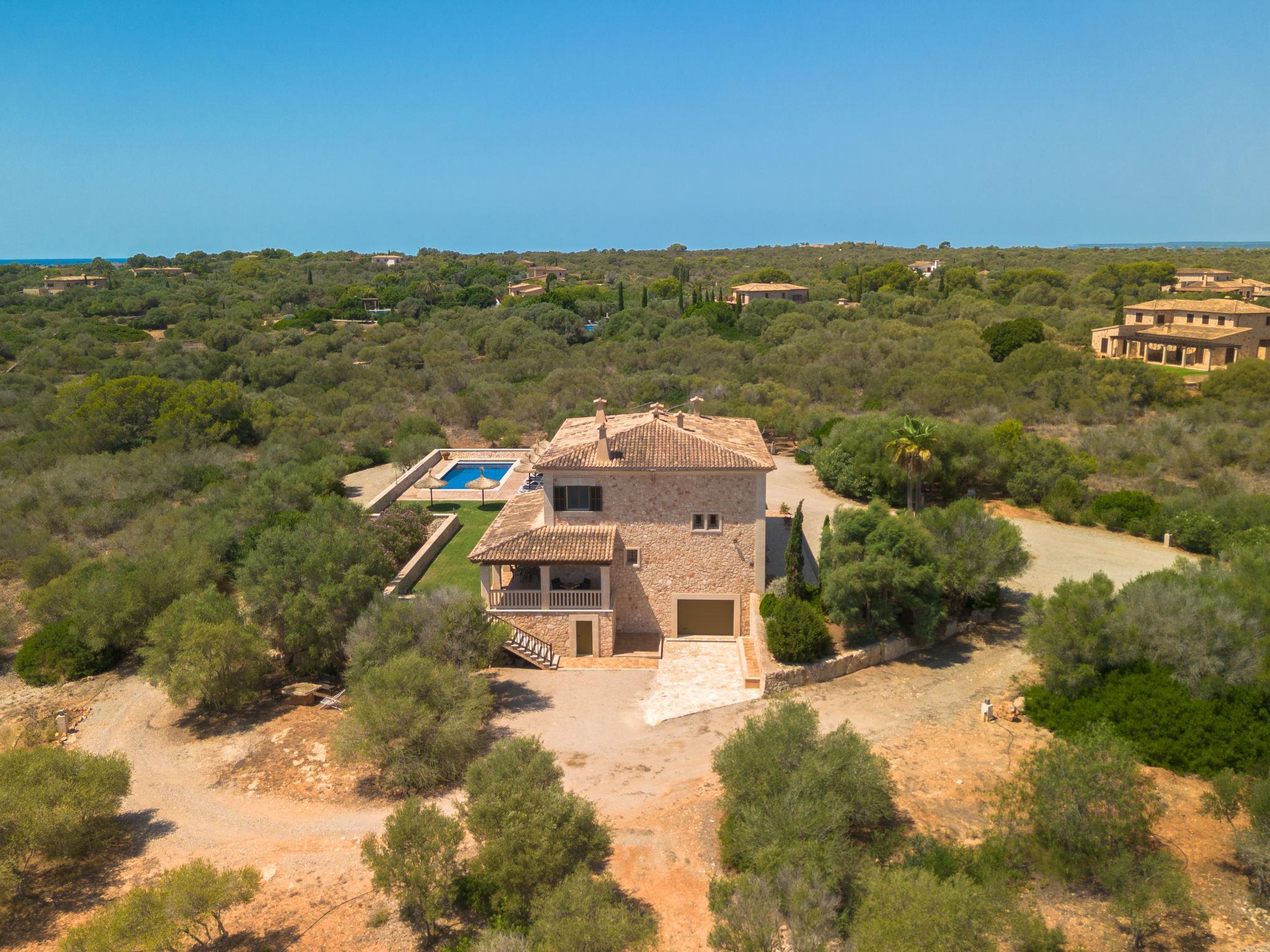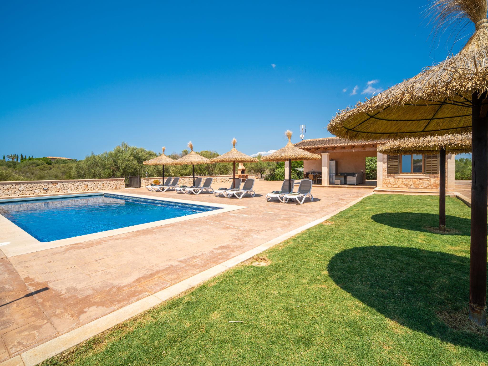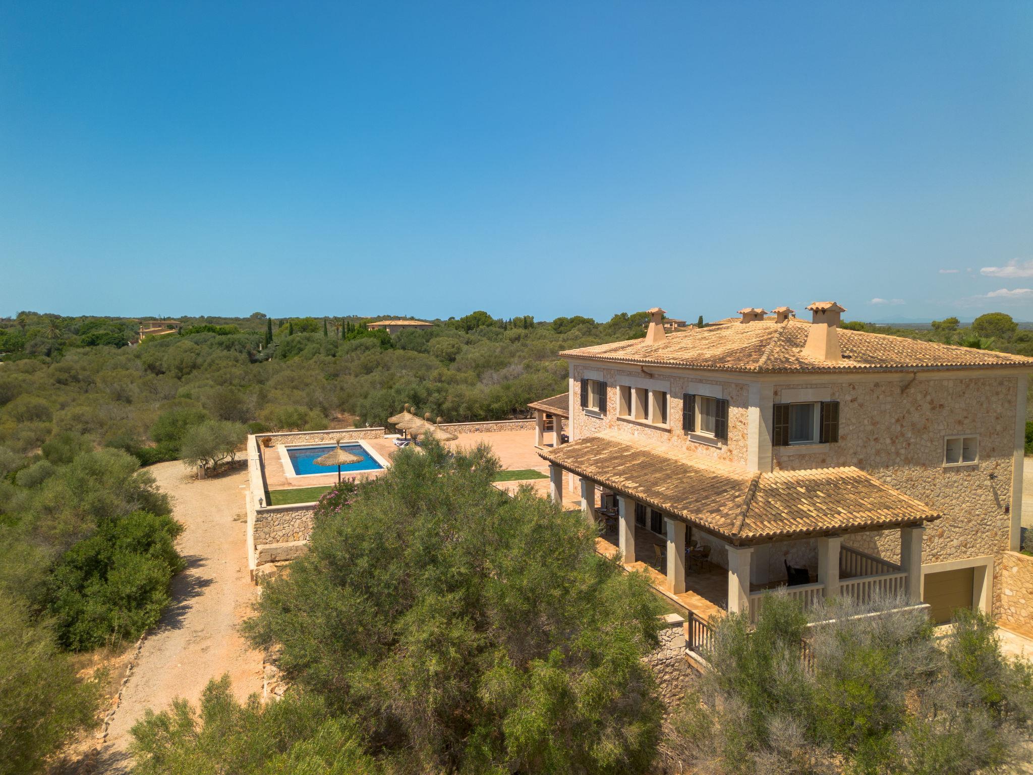 3 km from Ses Salines: Large farm estate "Casa Eva", detached, surrounded by fields. 3 km from the centre of Ses Salines, 4 km from the centre of Colonia Sant Jordi, 13 km from the centre of Campos, 5 km from the sea, south facing position. Private: natural state property 16'000 m2 (fenced) with lawn, swimming pool (10 x 5 m, seasonal availability: 01.Jan. - 31.Dec.) with salt-electrolysis pool-cleaning system. Shower/WC in the pool area, outdoor shower, pool maintenance by the owner/gardener. In the house: central heating system. Roofed, parking (for 3 cars) on the premises. Bus stop "Ses Salines" 3 km, railway station "Manacor" 37 km, sandy beach "Es Trenc" 5 km. Please note: car recommended. The owner does not accept any youth groups.