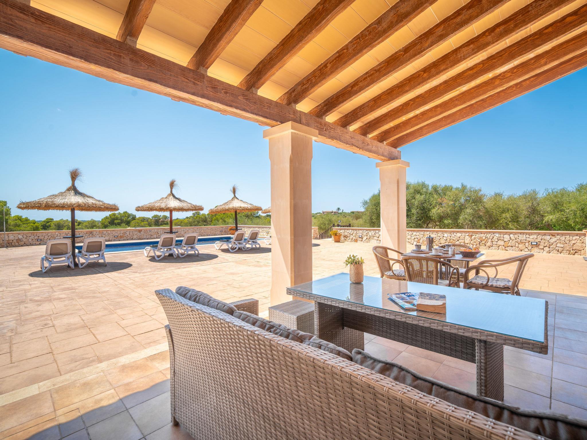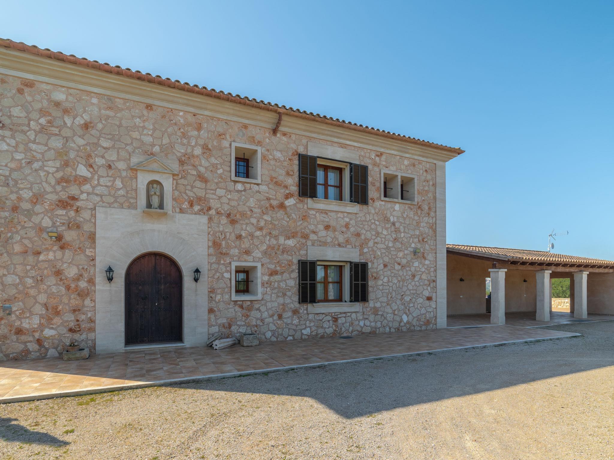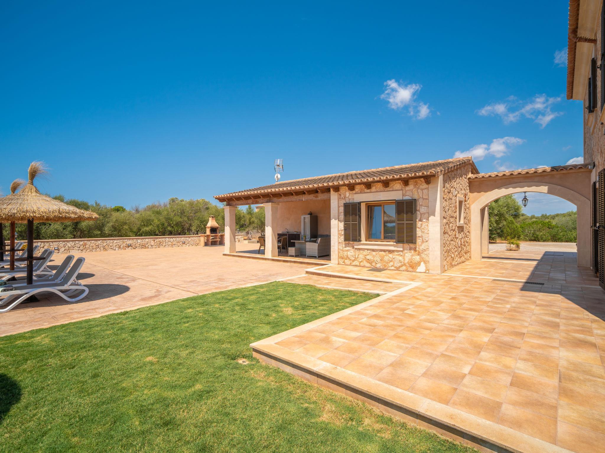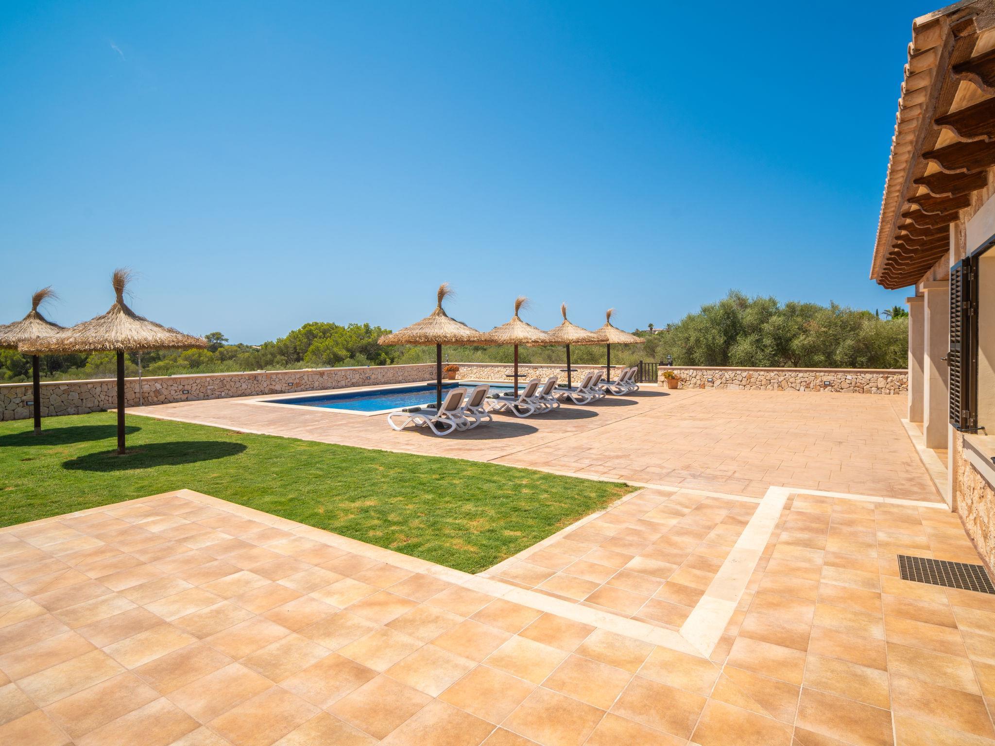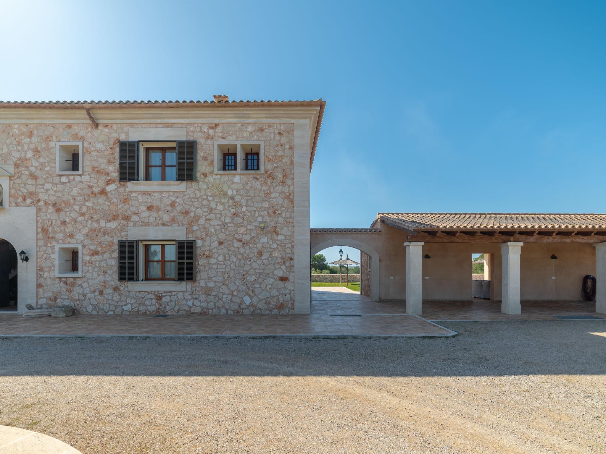 3 km from Ses Salines: Large farm estate "Casa Eva", detached, surrounded by fields. 3 km from the centre of Ses Salines, 4 km from the centre of Colonia Sant Jordi, 13 km from the centre of Campos, 5 km from the sea, south facing position. Private: natural state property 16'000 m2 (fenced) with lawn, swimming pool (10 x 5 m, seasonal availability: 01.Jan. - 31.Dec.) with salt-electrolysis pool-cleaning system. Shower/WC in the pool area, outdoor shower, pool maintenance by the owner/gardener. In the house: central heating system. Roofed, parking (for 3 cars) on the premises. Bus stop "Ses Salines" 3 km, railway station "Manacor" 37 km, sandy beach "Es Trenc" 5 km. Please note: car recommended. The owner does not accept any youth groups.
