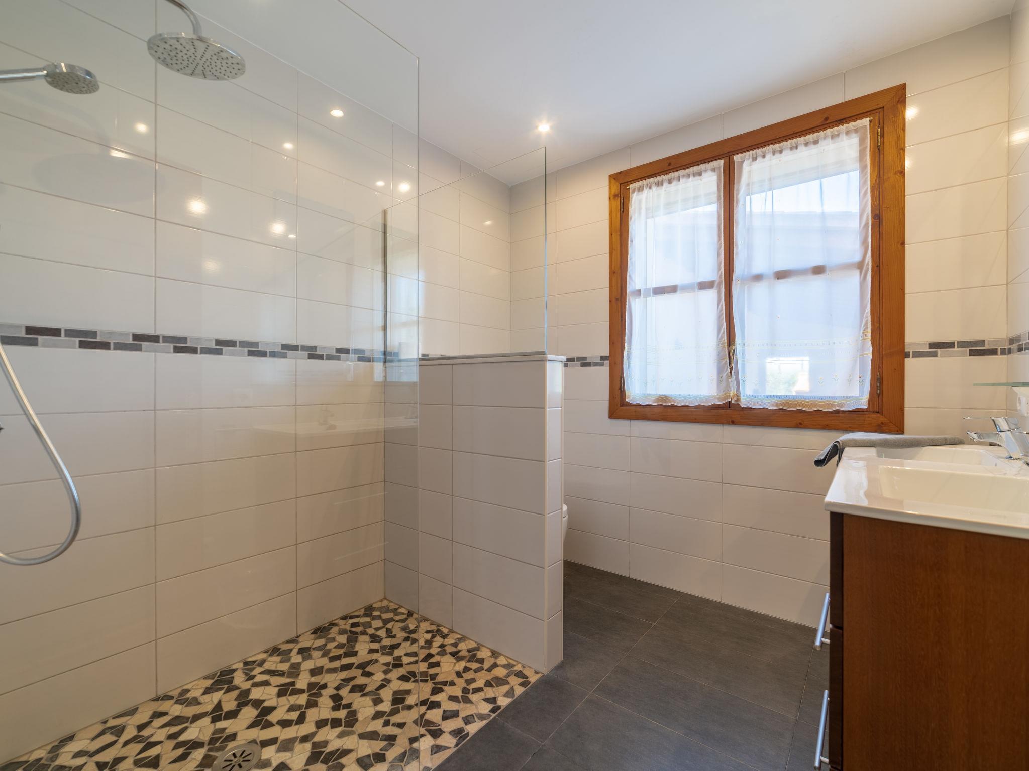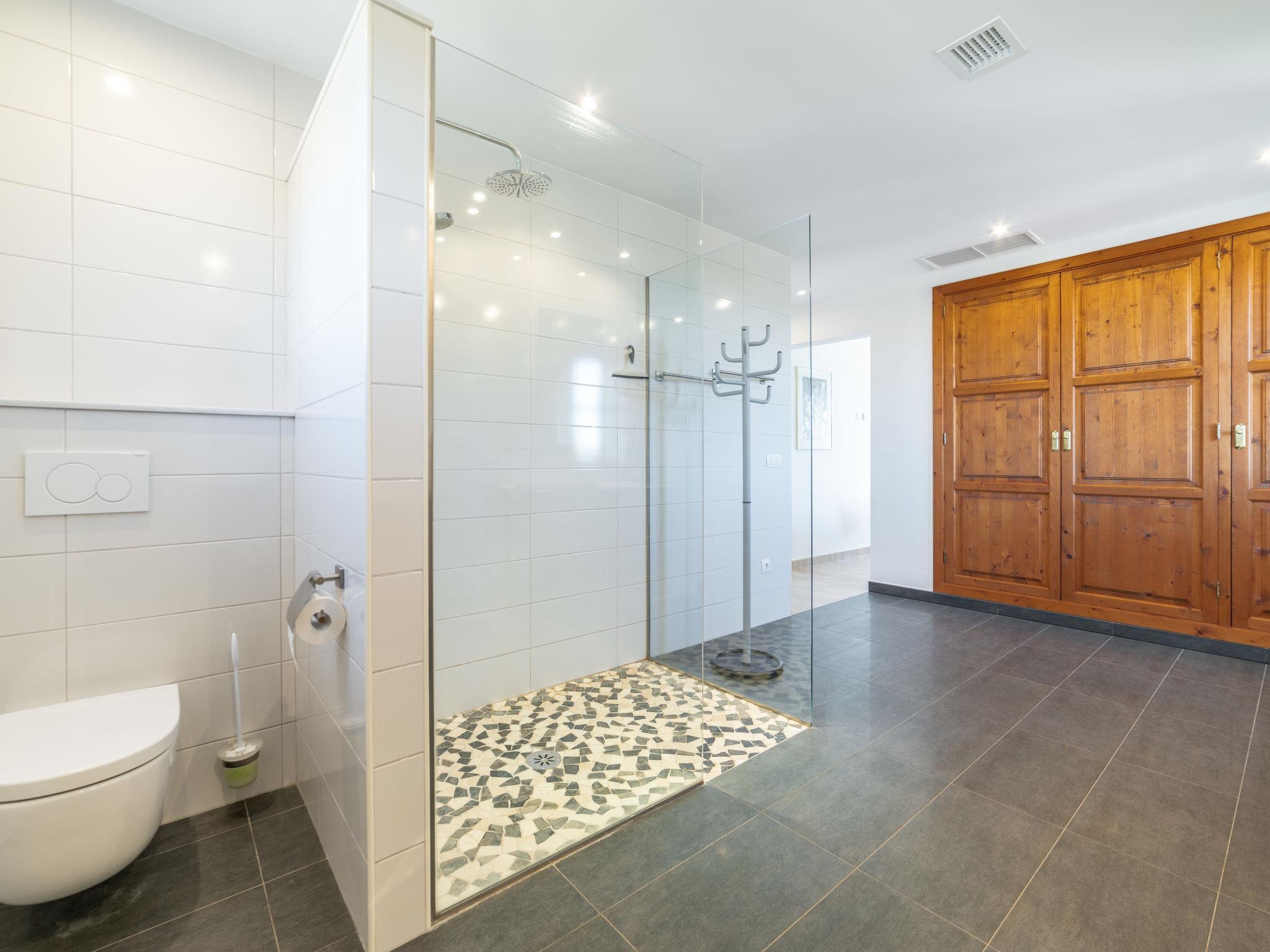 "Eva", 5-room house 250 m2 on 2 levels. Beautiful and stylish furnishings: living/dining room with Scandinavian wood stove, dining table and satellite TV. Exit to the terrace. 1 room with 1 double bed, shower/WC and double hand-basin. Kitchen (oven, dishwasher, 4 gas rings, toaster, kettle, microwave, freezer, electric coffee machine, Capsules for coffee machine (Dolce Gusto)) with small dining table. Exit to the terrace. Sep. WC. Upper floor: 1 room with 1 double bed, shower/WC and double hand-basin. 1 room with 2 beds. 1 room with 1 double bed. Shower/WC, double hand-basin. Air-conditioning, underfloor heating. Large terrace 30 m2, roofed. Terrace furniture, barbecue, deck chairs (8). Marvellous distant view of the sea. Facilities: washing machine, safe, iron, children's high chair, baby cot, hair dryer. Internet (WiFi, free). Please note: non-smoking house. Smoke alarm. ETV4942