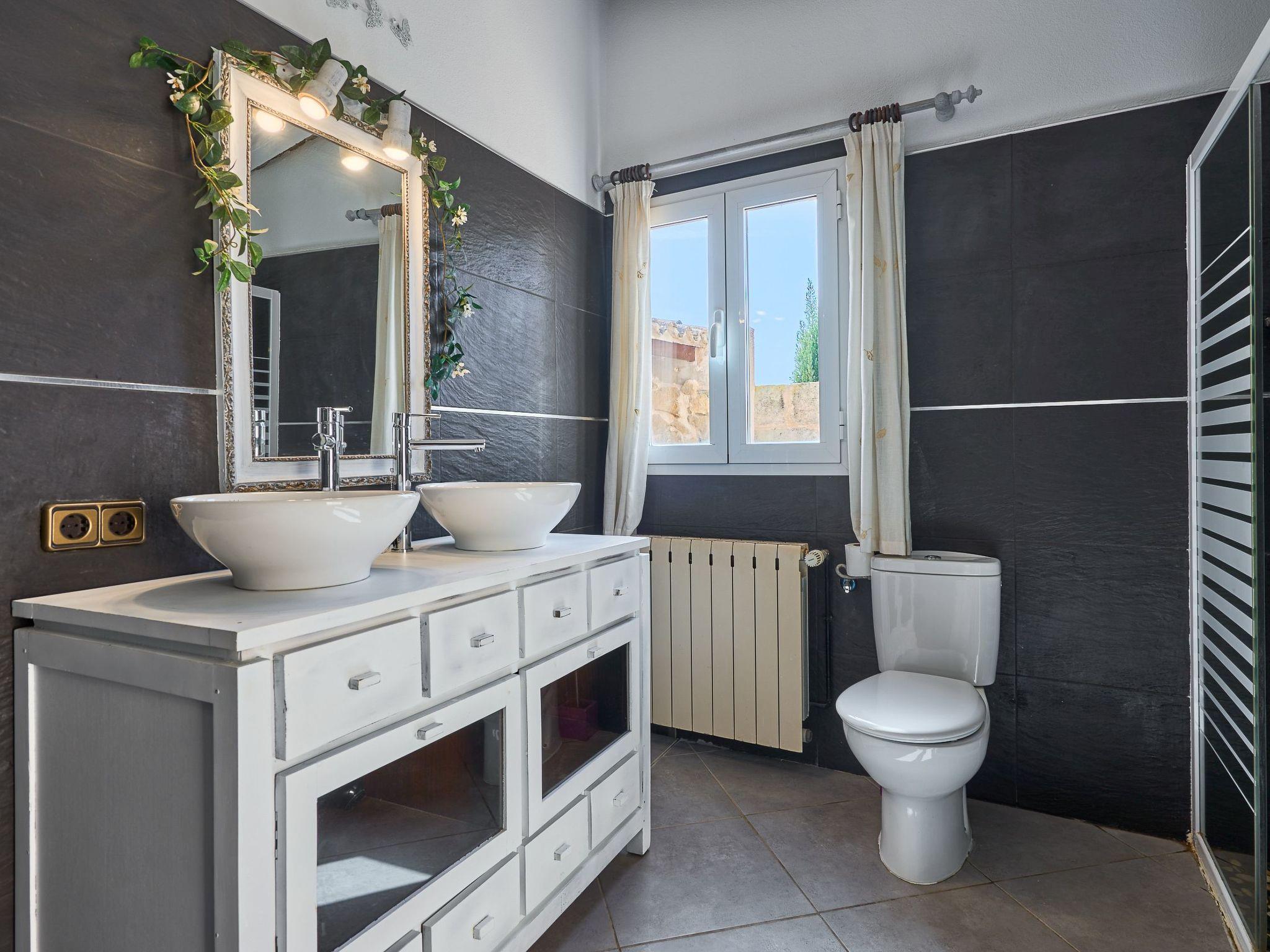 Inside this warm house you will find a cosy and comfortable atmosphere. It is equipped with air conditioning in all rooms to ensure your comfort at any time of the year. It also has modern conveniences such as a washing machine and dishwasher, as well as two fans for warmer days. Its wooden beamed structure adds a special touch to each room, creating a homely and welcoming atmosphere that invites you to relax.