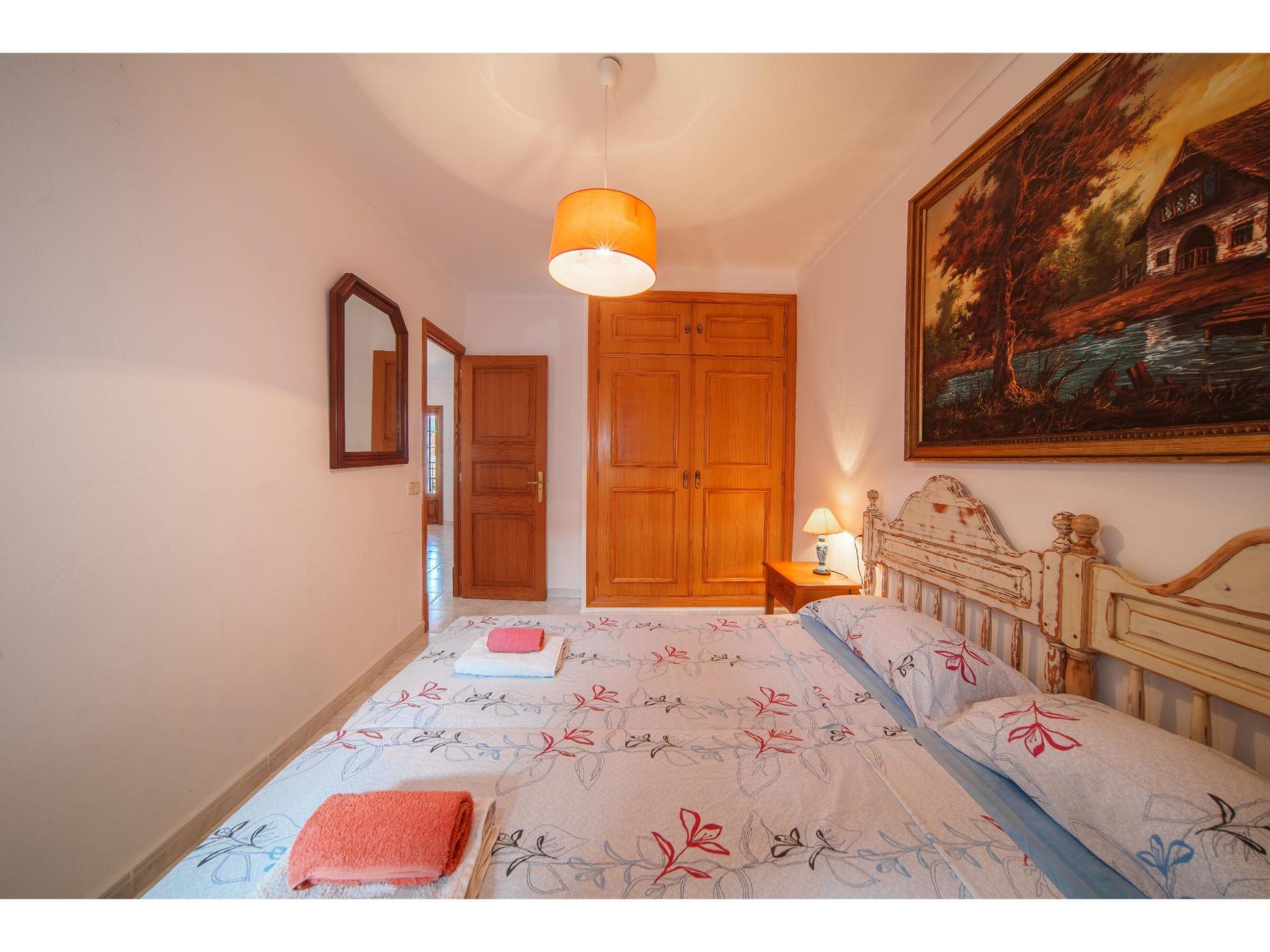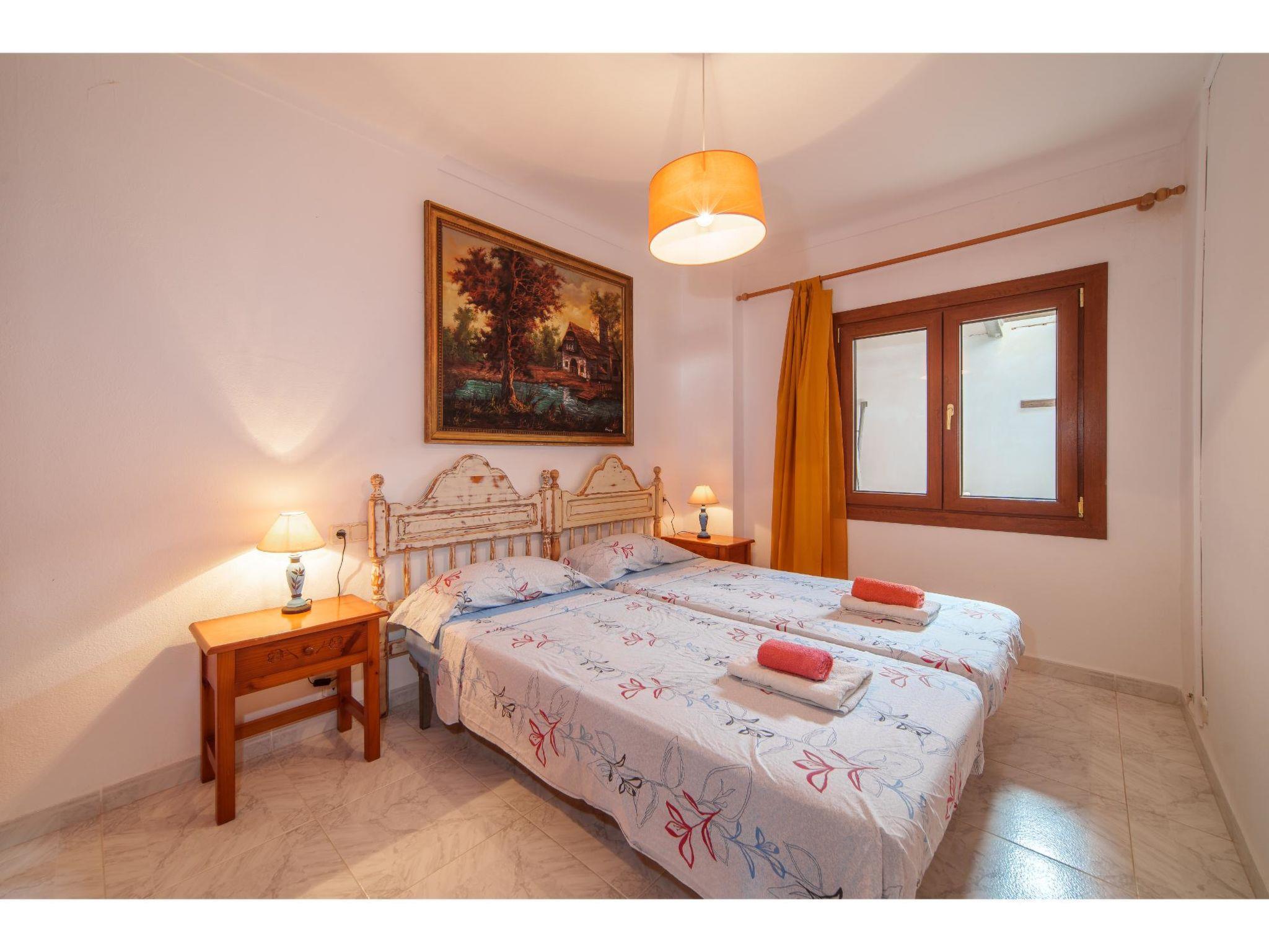 "Can Rafel", 4-room apartment 80 m2 on 1st floor. Object suitable for 6 adults. Spacious and bright, simple and comfortable furnishings: living/dining room with dining table, air conditioning and forced-air heating. Living room with panoramic window with satellite TV. 2 rooms, window onto the courtyard, each room with 2 beds (90 cm, length 200 cm). 1 room with 1 french bed (1 x 150 cm, length 200 cm). Large kitchen (oven, dishwasher, 4 ceramic glass hob hotplates, toaster, kettle, microwave, electric coffee machine) with dining table. 2 showers/WC. Side view of the sea and the resort. Facilities: washing machine, iron, children's high chair, baby cot for up to 2 year olds, hair dryer. Internet (WiFi, free). Please note: suitable for families apartment street side. Private entrance, no lift. ETV/10569 // Reg. Nr.: ESFCTU000007008000398038000000000000000000000VT/18653