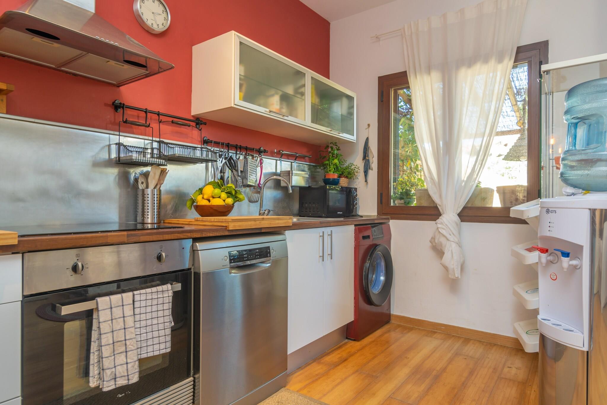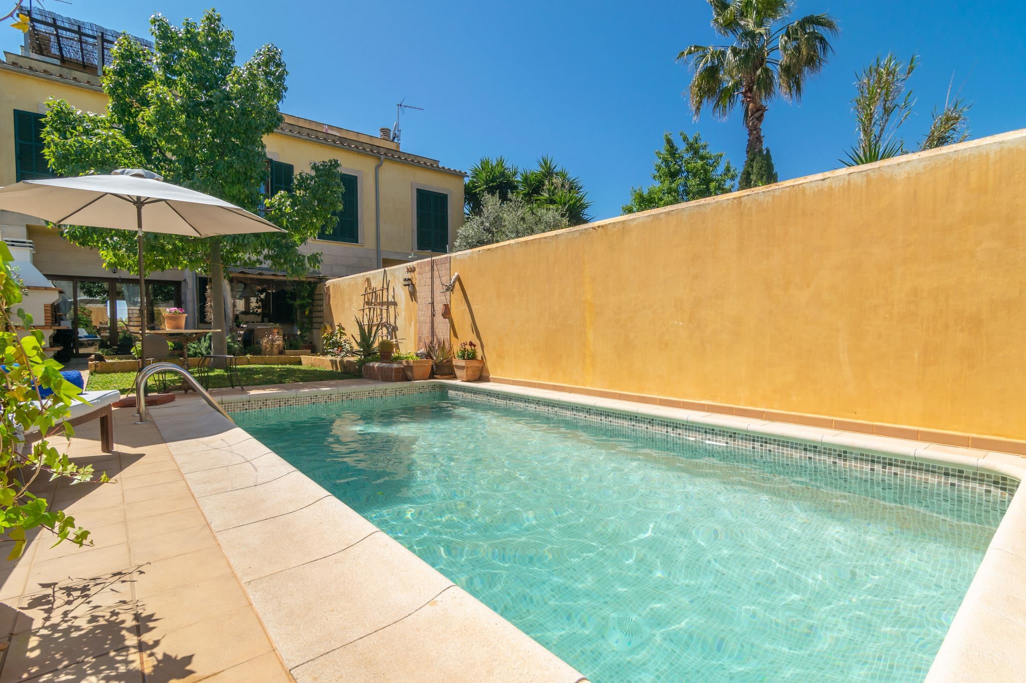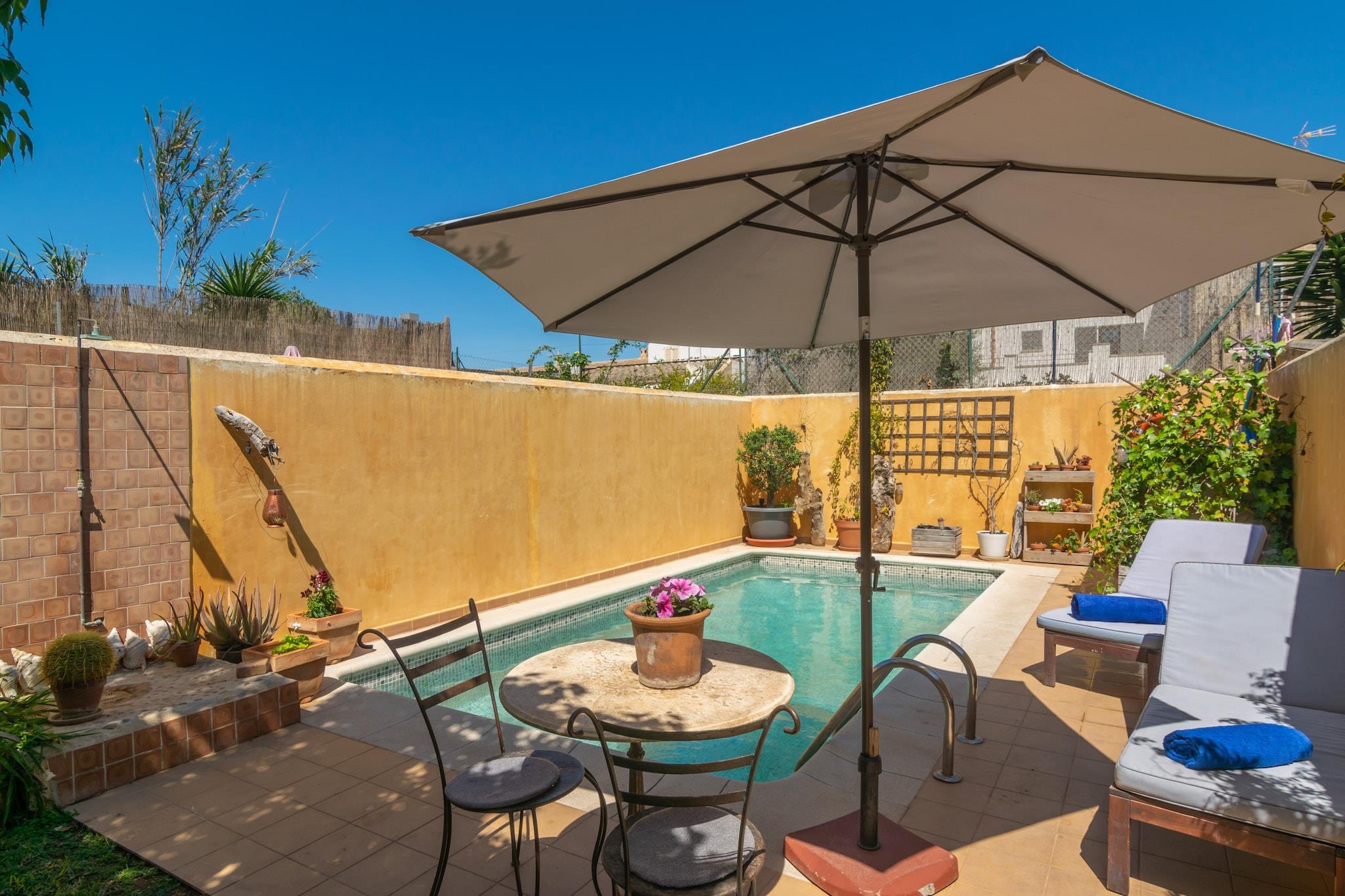 Nyd middelhavslivsstilen i dette smukt renoverede tre-etagers landsbyhus. Udendørsområdet har en saltvandspool (5x2,75m, 1,5m dybde), liggestole og en skyggefuld veranda med en grill og et stort spisebord - perfekt til afslappede familiemåltider. Selvom den ligger i en landsby med nærliggende naboer, byder haven på komfort og charme. Indvendigt indeholder stueetagen en hyggelig stue-spisestue med Smart TV, et åbent køkken med alt det nødvendige og et gæstetoilet. Ovenpå sikrer tre soveværelser med dobbeltsenge (to med AC) og to badeværelser - det ene en suite med bruser, det andet med badekar - afslappende nætter. En anden terrasse med et chill-out-område kroner øverste etage. Babyfaciliteter såsom barneseng og højstol er tilgængelige. Dette hjem ligger i Ses Salines, tæt på Es Trenc-stranden og de fantastiske bugter på det sydøstlige Mallorca. Udforsk Mondragó Naturpark eller nyd fisk og skaldyr i Colonia de Sant Jordi. Turistskat (Ecotasa) gælder for gæster over 16 år og reduceres efter den 9. dag. Valgfri AC er tilgængelig for EURO15/nat. Kæledyr og arrangementer er ikke tilladt. Depositum kræves ved ankomst. Licens: ETV/8459.