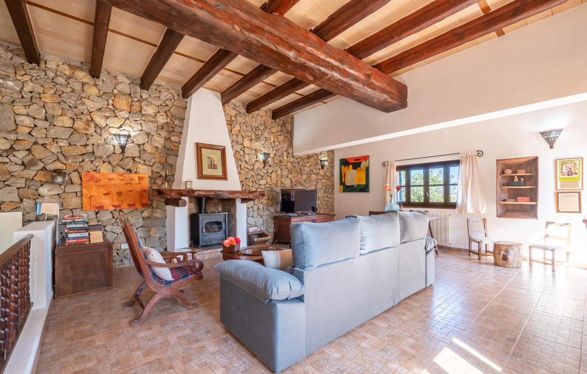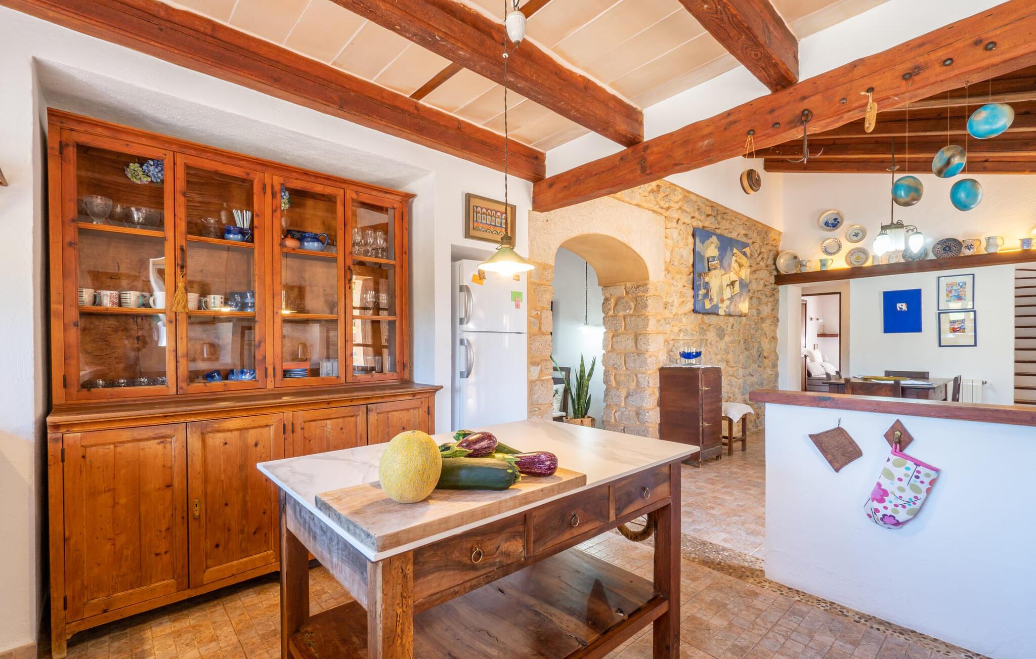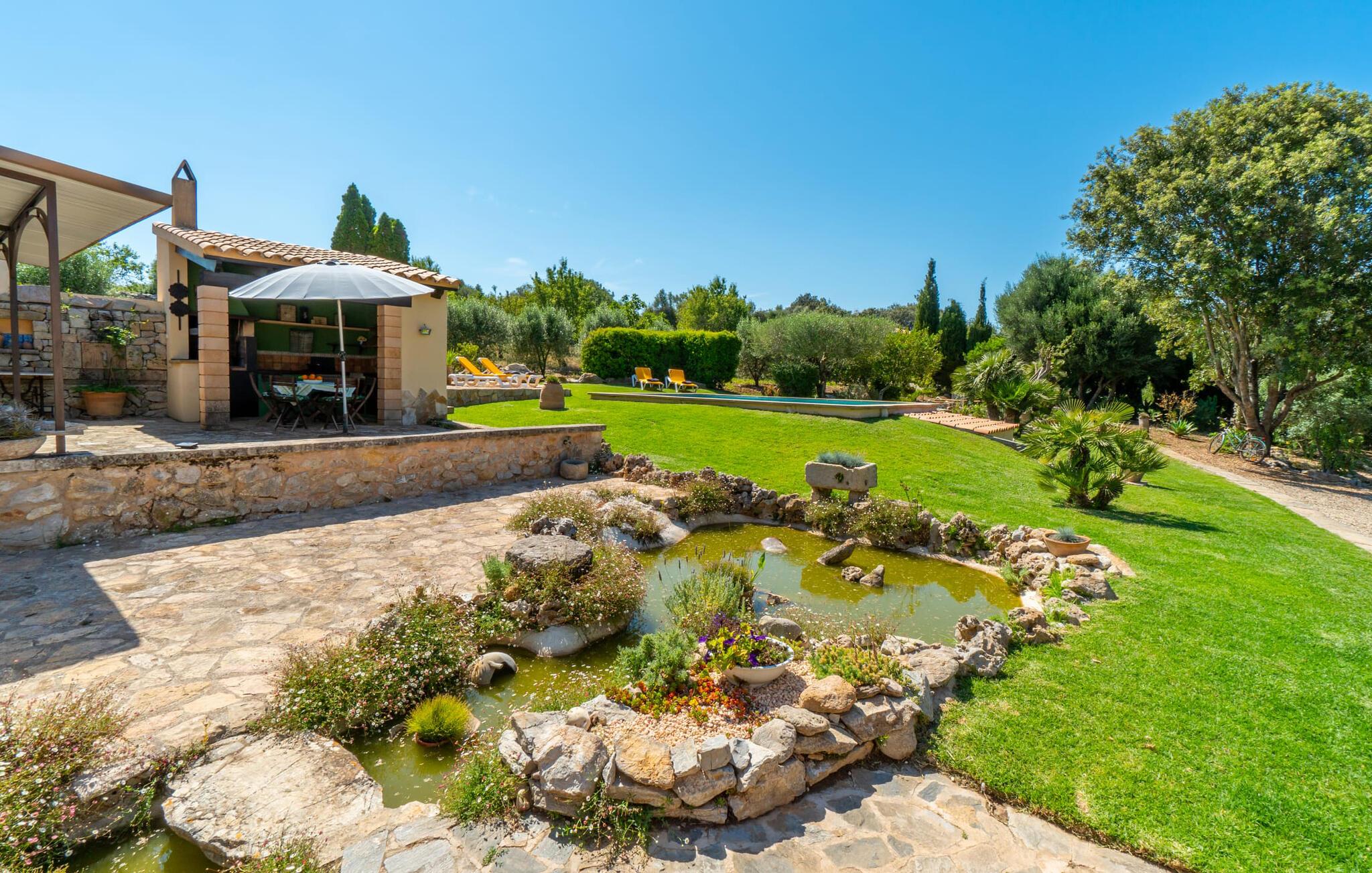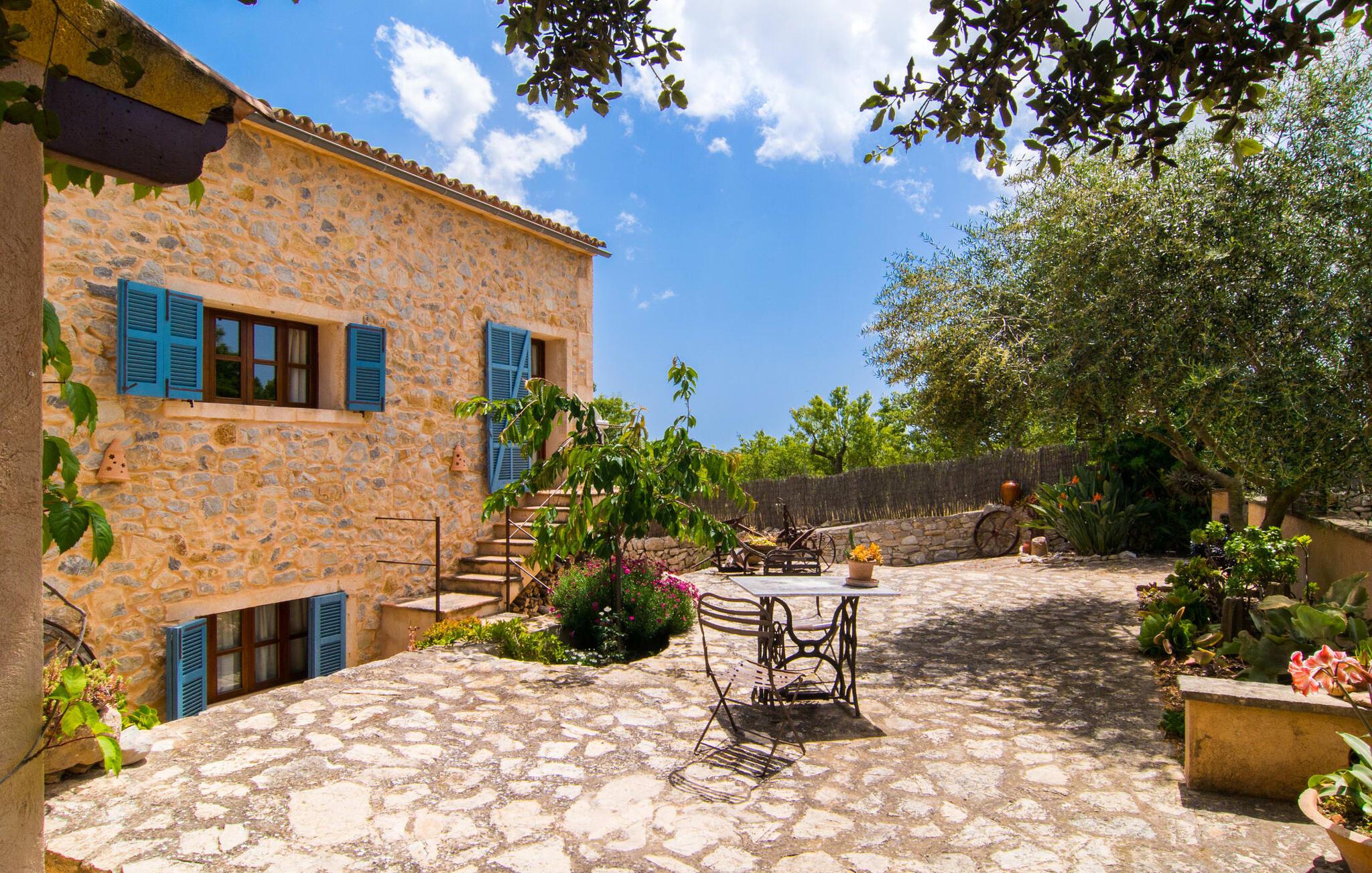 En absolut fortryllende atmosfære byder gæsterne velkommen til villaen "Ses Velletes". Ejendommen ligger i en dejlig idyllisk og rolig beliggenhed, er helt indhegnet og afspærret af en port til indgangen. På den omfattende ejendom, præget af græsplæner og mange middelhavsplanter, finder I smukke, åbne og overdækkede terrasser med en række blomster og designdetaljer, der inviterer jer til at gå på opdagelse og udforske. Kærligt indrettede siddepladser inviterer jer til at slappe af og dvæle udendørs, mens I altid leder efter nye yndlingssteder. Det rustikke spisebord med murstensbænke er velegnet til hyggelige måltider på ethvert tidspunkt af dagen, som I kan nyde komfortabelt og med en vidunderlig udsigt over haven. Hvis I ønsker det, kan I også blot tilberede maden i udekøkkenet og nyde den lige her. I kan tilberede alle mulige friske regionale delikatesser på grillen og måske alle sammen fejre en kulinarisk grillaften. Små nicher, trapper og vægge giver udearealet et særligt malerisk og hjemligt præg. Den søde dam er endda hjemsted for skildpadder. Hjertet i haven er den 7 x 4 m store pool, dekoreret med dekorative lyseblå fliser og udstyret med en komfortabel trappe. Her vil både unge og gamle finde en behagelig forfriskning af hjertens lyst. Der er komfortable liggestole til rådighed til omfattende solbadning, samt flere parasoller, hvis UV-strålerne bliver for stærke. Gør simpelthen ingenting og lad jeres bekymringer ligge - I kan nyde det på en ekstraordinær måde her. I husets stueetage er der køkken med tilhørende spiseplads, soveværelse og to badeværelser. Stuen er på øverste etage. Naturstenselementer, massive fritlagte bjælkelofter samt lette vægge og materialer sikrer en yderst behagelig og samtidig meget æstetisk atmosfære. Det er stemningsfuldt forstærket af varieret rustik udsmykning i form af billeder, gårdmøbler og andre hverdagsting samt andre imponerende individuelle stykker. Det åbne køkken, der kun er løst adskilt fra stuen af en disk, er fuldt udstyret og tilbyder udover moderne apparater også tilstrækkelig opbevarings- og arbejdsplads. En kedel og en italiensk og amerikansk kaffemaskine er kun inkluderet. Ved spisebordet lige ved siden af kan I nyde en indendørs middag sammen i en rustik atmosfære. Stuen har en super behagelig sofazone. Her kan I slappe af som I vil, måske med en god bog eller en underholdende film, da fjernsynet med satellitforbindelse er installeret her. De meget individuelt designede værelser byder jer hjertelig velkommen til en god nats søvn. Vi er sikre på, at alle vil finde deres perfekte sted at sove her. Oprindeligt designede badeværelser byder på naturligt lys og indretning af høj kvalitet. Strygejern og hårtørrer er tilgængelige på stedet, så I ikke behøver at bekymre jer om selv at pakke dem. Der er endnu et dobbeltværelse (uden badeværelse) til rådighed i annekset, så der i alt kan indkvarteres syv personer. Artà er en særdeles smuk by uden store hoteller og med omkring 6.500 indbyggere. Hver tirsdag er der et ugentligt marked i byens centrum, som uden tvivl er et besøg værd. Her finder I et rigt og mangfoldigt udvalg af regionale kulinariske specialiteter samt smukt kunsthåndværk, der er typisk for øen. Strande, der er både smukke og let tilgængelige fra villaen, kan findes i Cala Ratjada, Canyamel, Cala Bona, Costa de los Pinos og Cala Millor Bay. Der er fire golfbaner i området omkring villaen. Den to-etagers naturstensvilla "Ses Velletes" har en rolig beliggenhed, kun 5 minutter i bil nordvest for Artà. Det giver masser af plads til at slappe af og slappe af. Den maleriske gamle bydel i Artà med sine små gader, barer, restauranter og butikker er særligt indbydende. Flere smukke strande kan nås i bil på cirka 20 minutter.