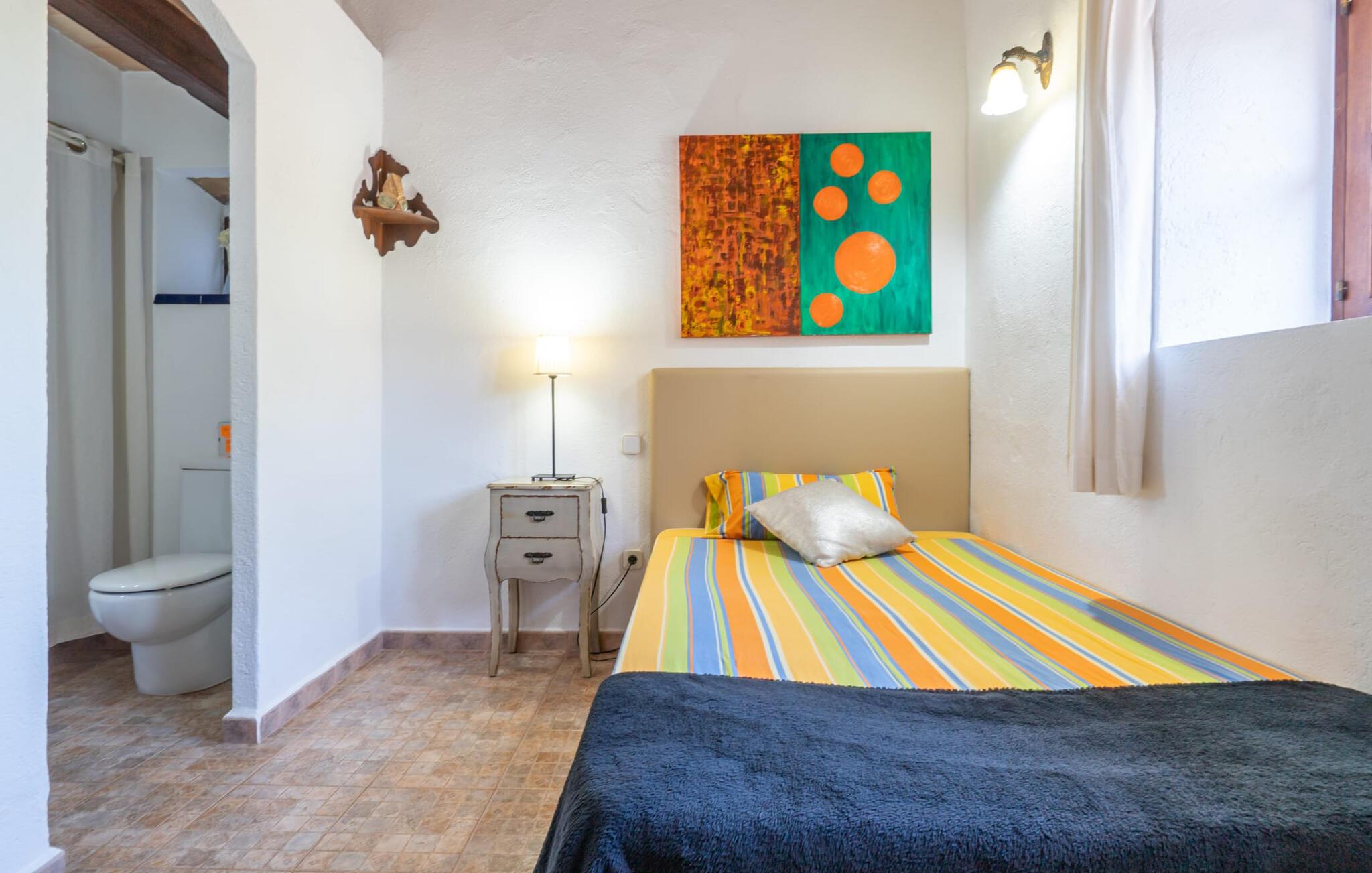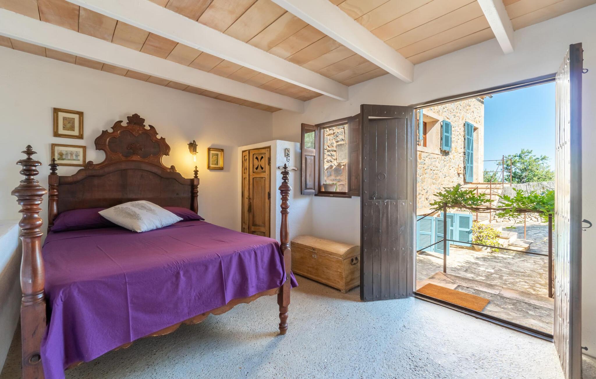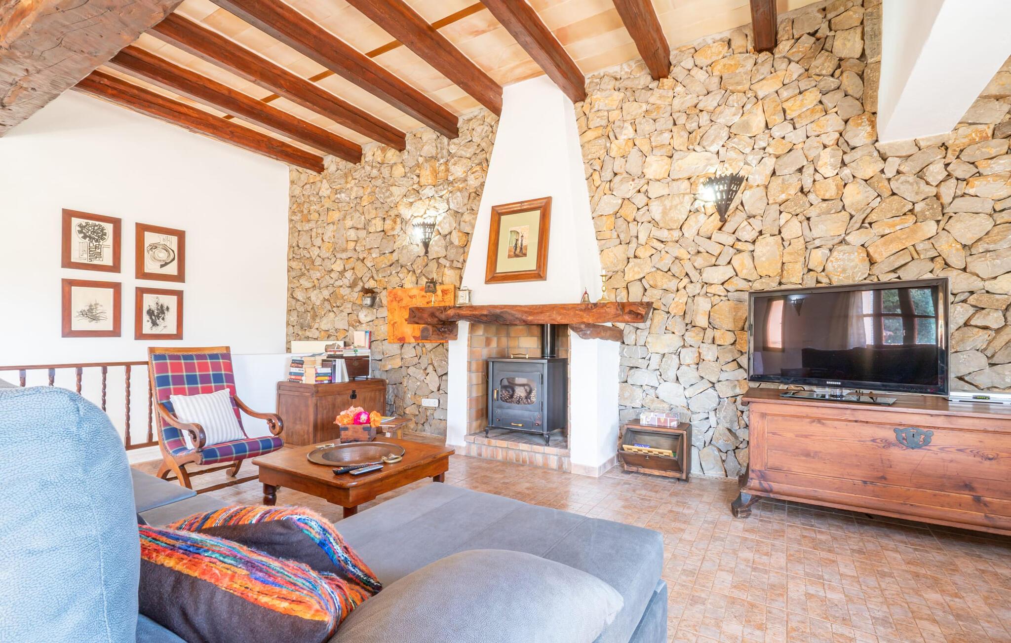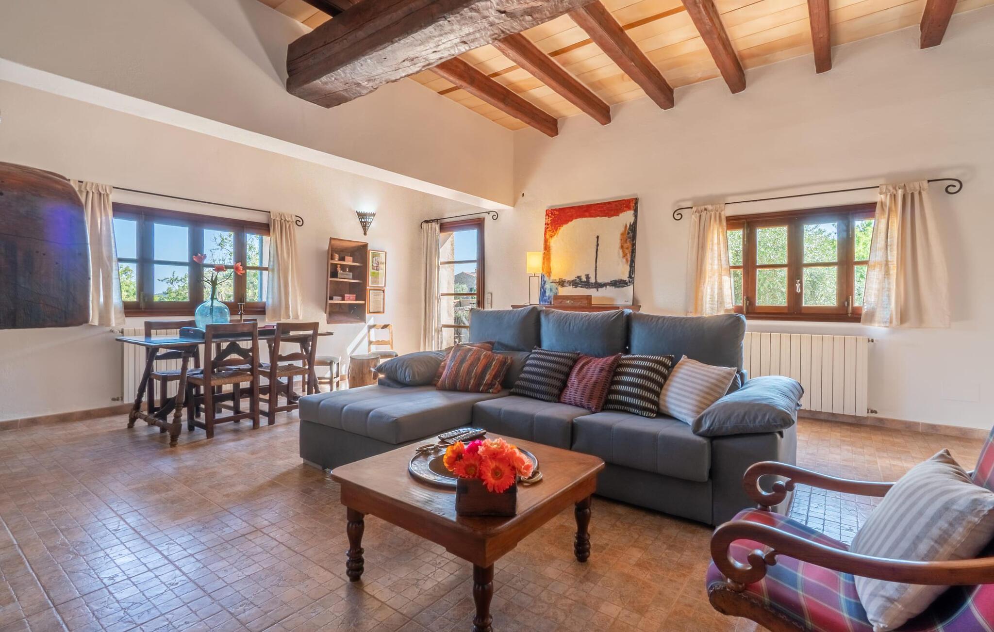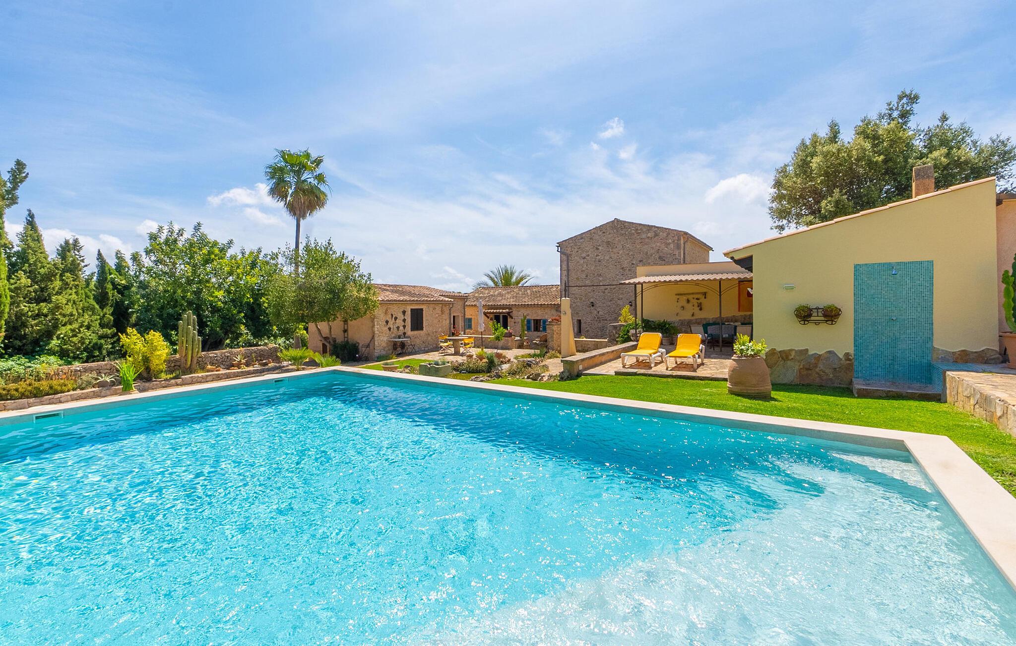 En absolut fortryllende atmosfære byder gæsterne velkommen til villaen "Ses Velletes". Ejendommen ligger i en dejlig idyllisk og rolig beliggenhed, er helt indhegnet og afspærret af en port til indgangen. På den omfattende ejendom, præget af græsplæner og mange middelhavsplanter, finder I smukke, åbne og overdækkede terrasser med en række blomster og designdetaljer, der inviterer jer til at gå på opdagelse og udforske. Kærligt indrettede siddepladser inviterer jer til at slappe af og dvæle udendørs, mens I altid leder efter nye yndlingssteder. Det rustikke spisebord med murstensbænke er velegnet til hyggelige måltider på ethvert tidspunkt af dagen, som I kan nyde komfortabelt og med en vidunderlig udsigt over haven. Hvis I ønsker det, kan I også blot tilberede maden i udekøkkenet og nyde den lige her. I kan tilberede alle mulige friske regionale delikatesser på grillen og måske alle sammen fejre en kulinarisk grillaften. Små nicher, trapper og vægge giver udearealet et særligt malerisk og hjemligt præg. Den søde dam er endda hjemsted for skildpadder. Hjertet i haven er den 7 x 4 m store pool, dekoreret med dekorative lyseblå fliser og udstyret med en komfortabel trappe. Her vil både unge og gamle finde en behagelig forfriskning af hjertens lyst. Der er komfortable liggestole til rådighed til omfattende solbadning, samt flere parasoller, hvis UV-strålerne bliver for stærke. Gør simpelthen ingenting og lad jeres bekymringer ligge - I kan nyde det på en ekstraordinær måde her. I husets stueetage er der køkken med tilhørende spiseplads, soveværelse og to badeværelser. Stuen er på øverste etage. Naturstenselementer, massive fritlagte bjælkelofter samt lette vægge og materialer sikrer en yderst behagelig og samtidig meget æstetisk atmosfære. Det er stemningsfuldt forstærket af varieret rustik udsmykning i form af billeder, gårdmøbler og andre hverdagsting samt andre imponerende individuelle stykker. Det åbne køkken, der kun er løst adskilt fra stuen af en disk, er fuldt udstyret og tilbyder udover moderne apparater også tilstrækkelig opbevarings- og arbejdsplads. En kedel og en italiensk og amerikansk kaffemaskine er kun inkluderet. Ved spisebordet lige ved siden af kan I nyde en indendørs middag sammen i en rustik atmosfære. Stuen har en super behagelig sofazone. Her kan I slappe af som I vil, måske med en god bog eller en underholdende film, da fjernsynet med satellitforbindelse er installeret her. De meget individuelt designede værelser byder jer hjertelig velkommen til en god nats søvn. Vi er sikre på, at alle vil finde deres perfekte sted at sove her. Oprindeligt designede badeværelser byder på naturligt lys og indretning af høj kvalitet. Strygejern og hårtørrer er tilgængelige på stedet, så I ikke behøver at bekymre jer om selv at pakke dem. Der er endnu et dobbeltværelse (uden badeværelse) til rådighed i annekset, så der i alt kan indkvarteres syv personer. Artà er en særdeles smuk by uden store hoteller og med omkring 6.500 indbyggere. Hver tirsdag er der et ugentligt marked i byens centrum, som uden tvivl er et besøg værd. Her finder I et rigt og mangfoldigt udvalg af regionale kulinariske specialiteter samt smukt kunsthåndværk, der er typisk for øen. Strande, der er både smukke og let tilgængelige fra villaen, kan findes i Cala Ratjada, Canyamel, Cala Bona, Costa de los Pinos og Cala Millor Bay. Der er fire golfbaner i området omkring villaen. Den to-etagers naturstensvilla "Ses Velletes" har en rolig beliggenhed, kun 5 minutter i bil nordvest for Artà. Det giver masser af plads til at slappe af og slappe af. Den maleriske gamle bydel i Artà med sine små gader, barer, restauranter og butikker er særligt indbydende. Flere smukke strande kan nås i bil på cirka 20 minutter.