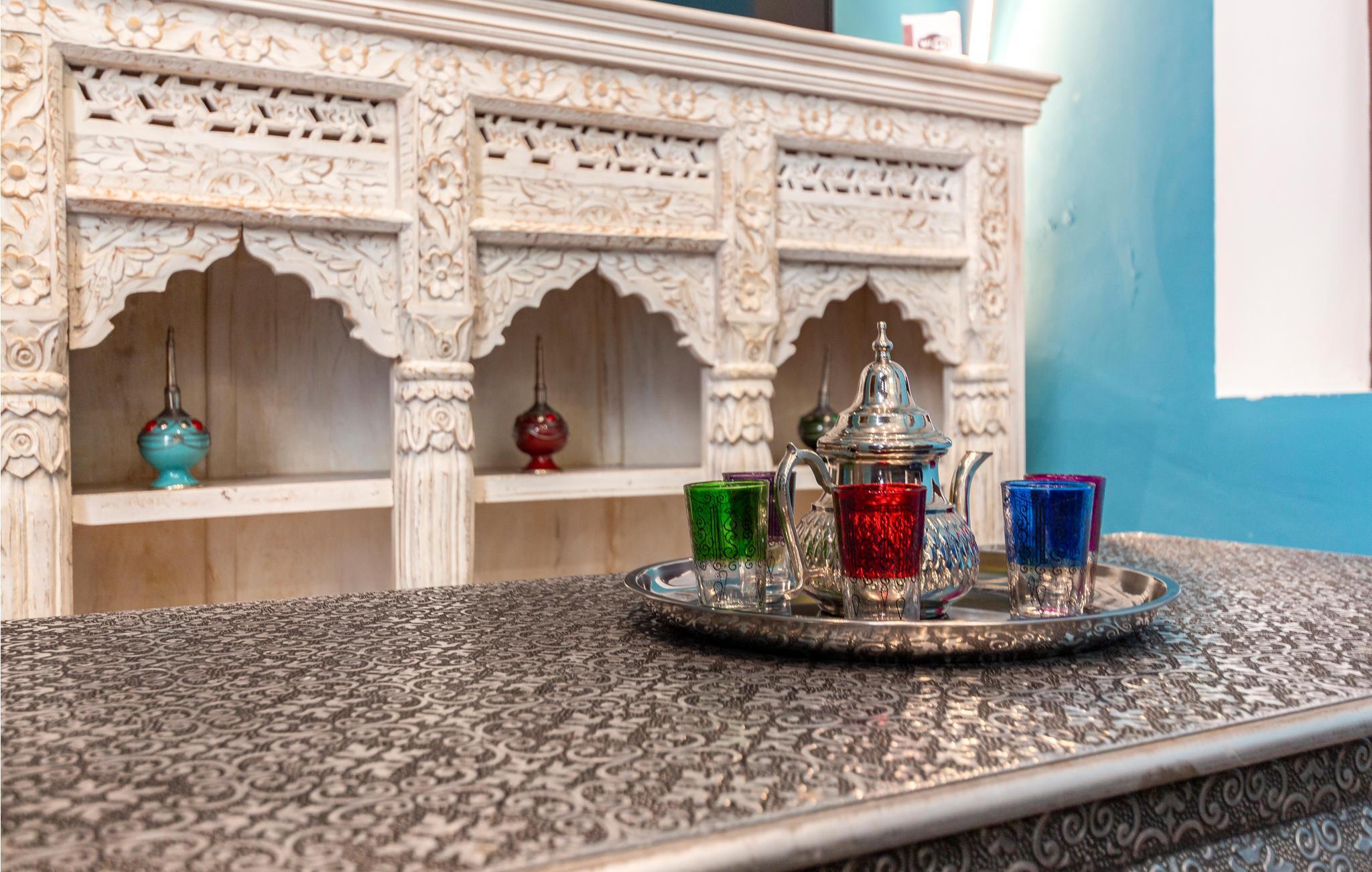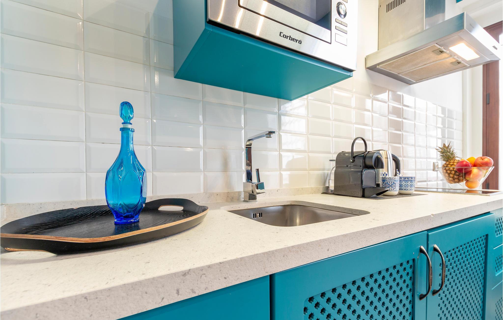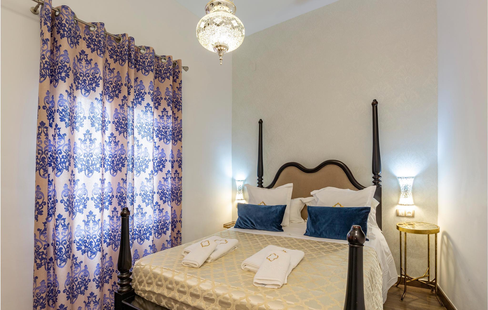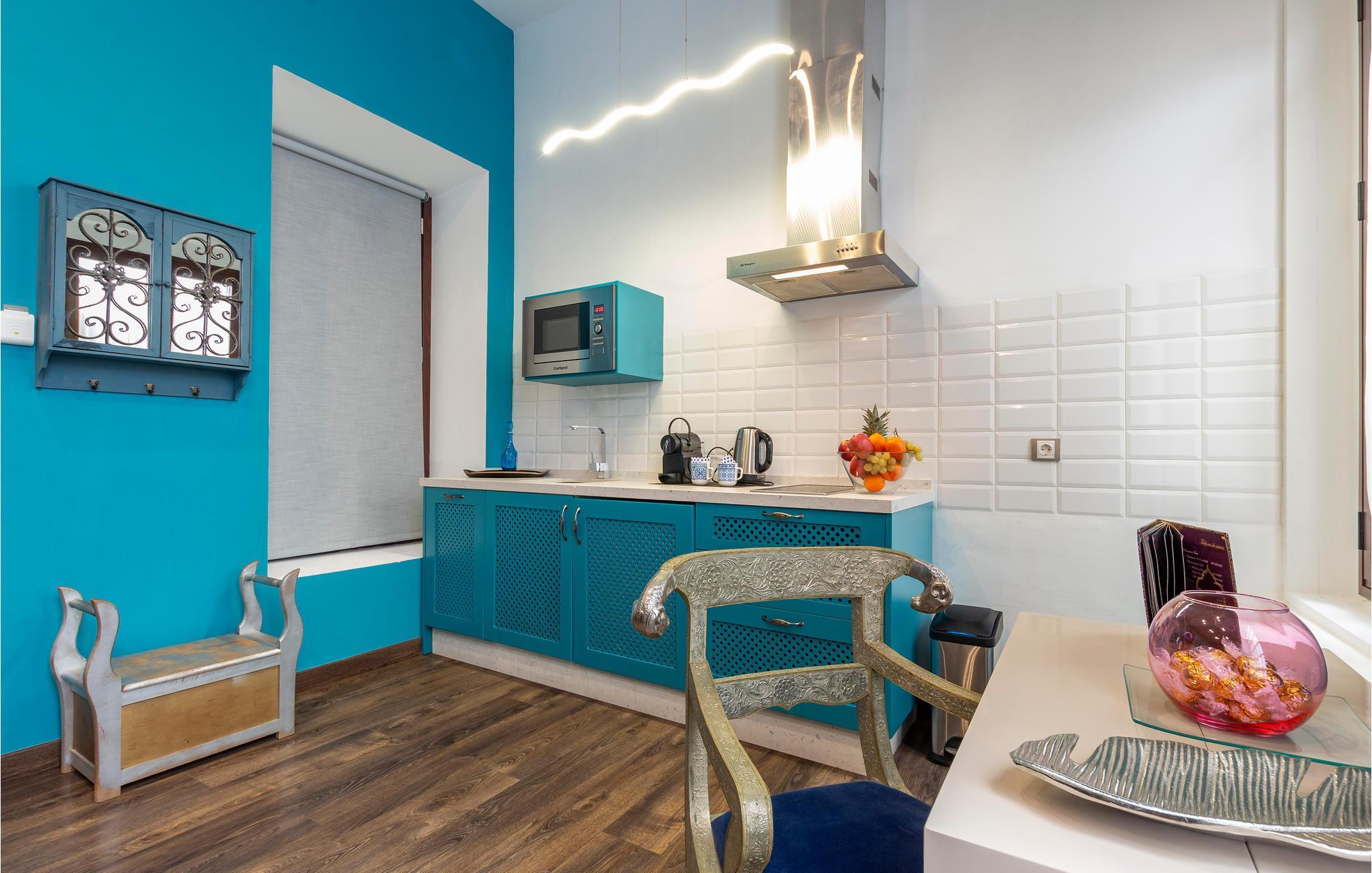 Træd indenfor i en havblå lejlighed i det historiske centrum af Sevilla.