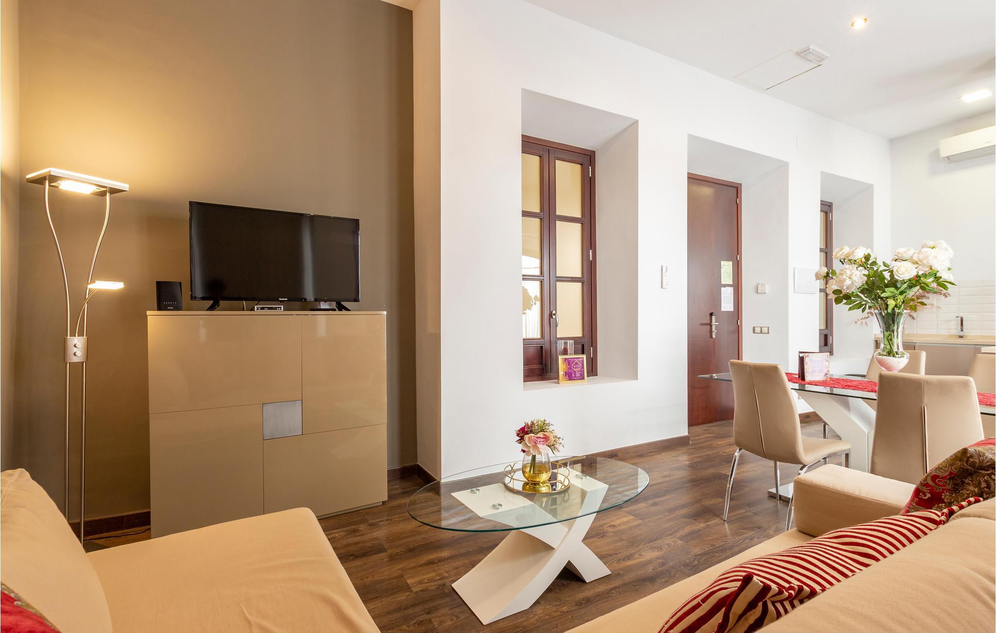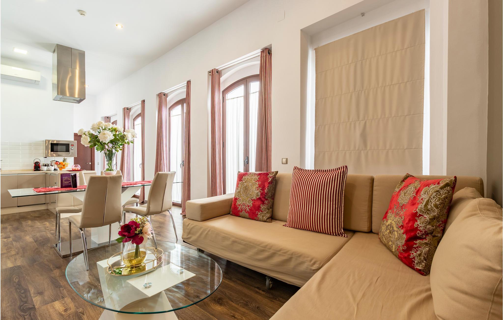 Denne rummelige, kærligt indrettede lejlighed i det historiske centrum af Sevilla byder dig velkommen som udgangspunkt for forskellige udflugter i den andalusiske sol. Her i lejligheden finder du ægte livskvalitet, plads til at brede sig, ideel beliggenhed og en vellykket blanding af traditionelle og moderne elementer. I denne ferieoase finder du et fredeligt refugium midt i storbyens pulserende liv.