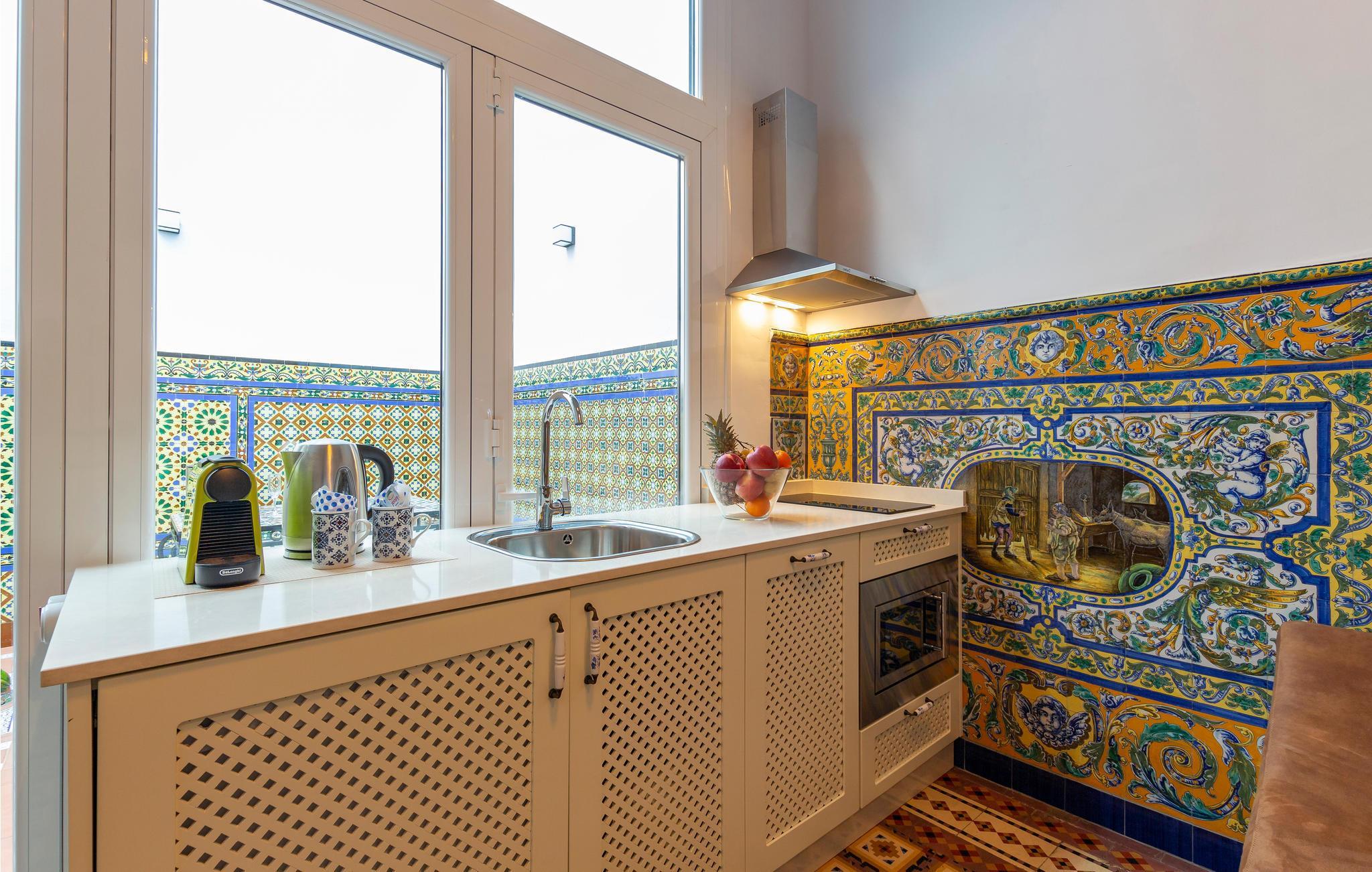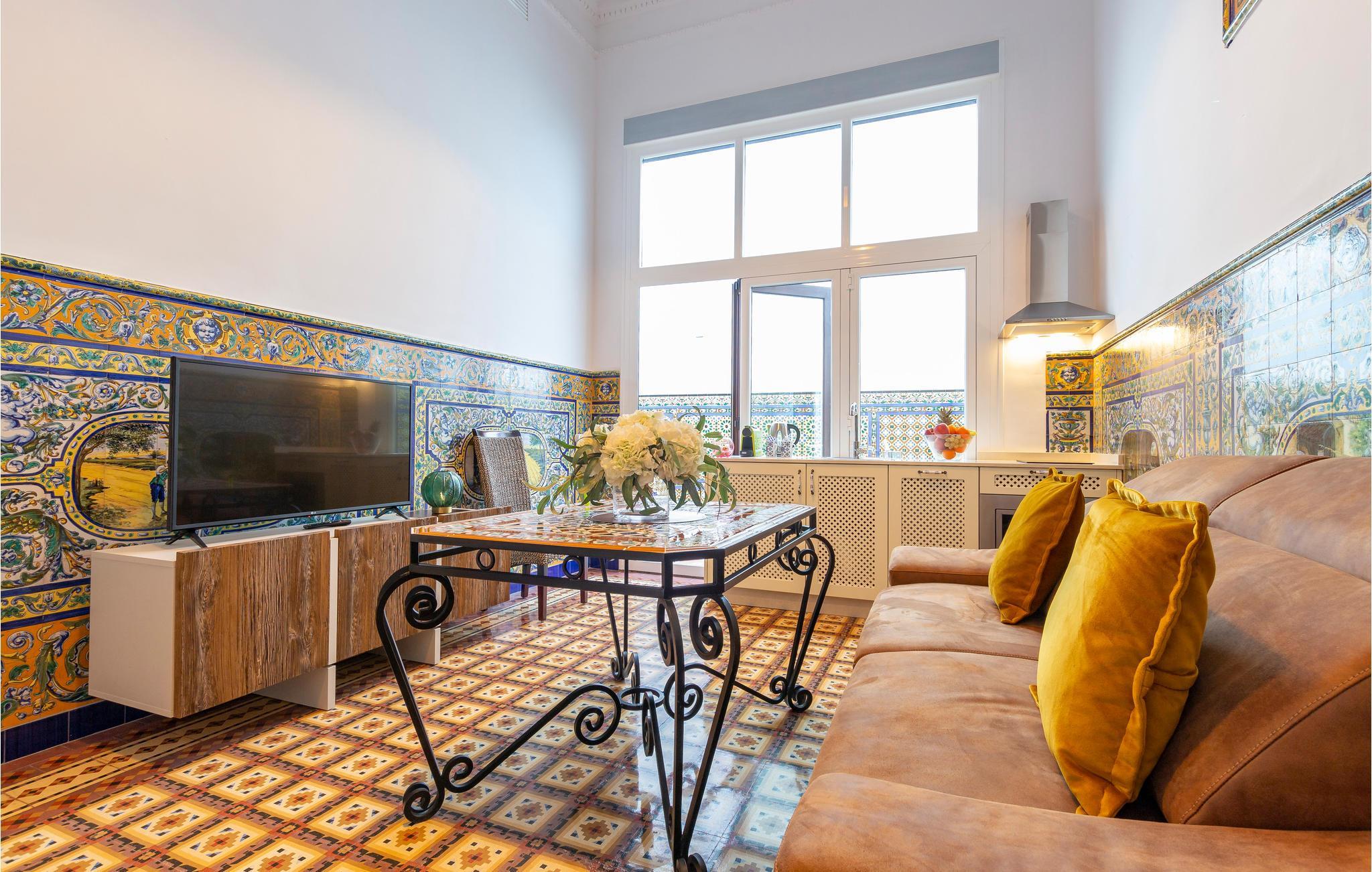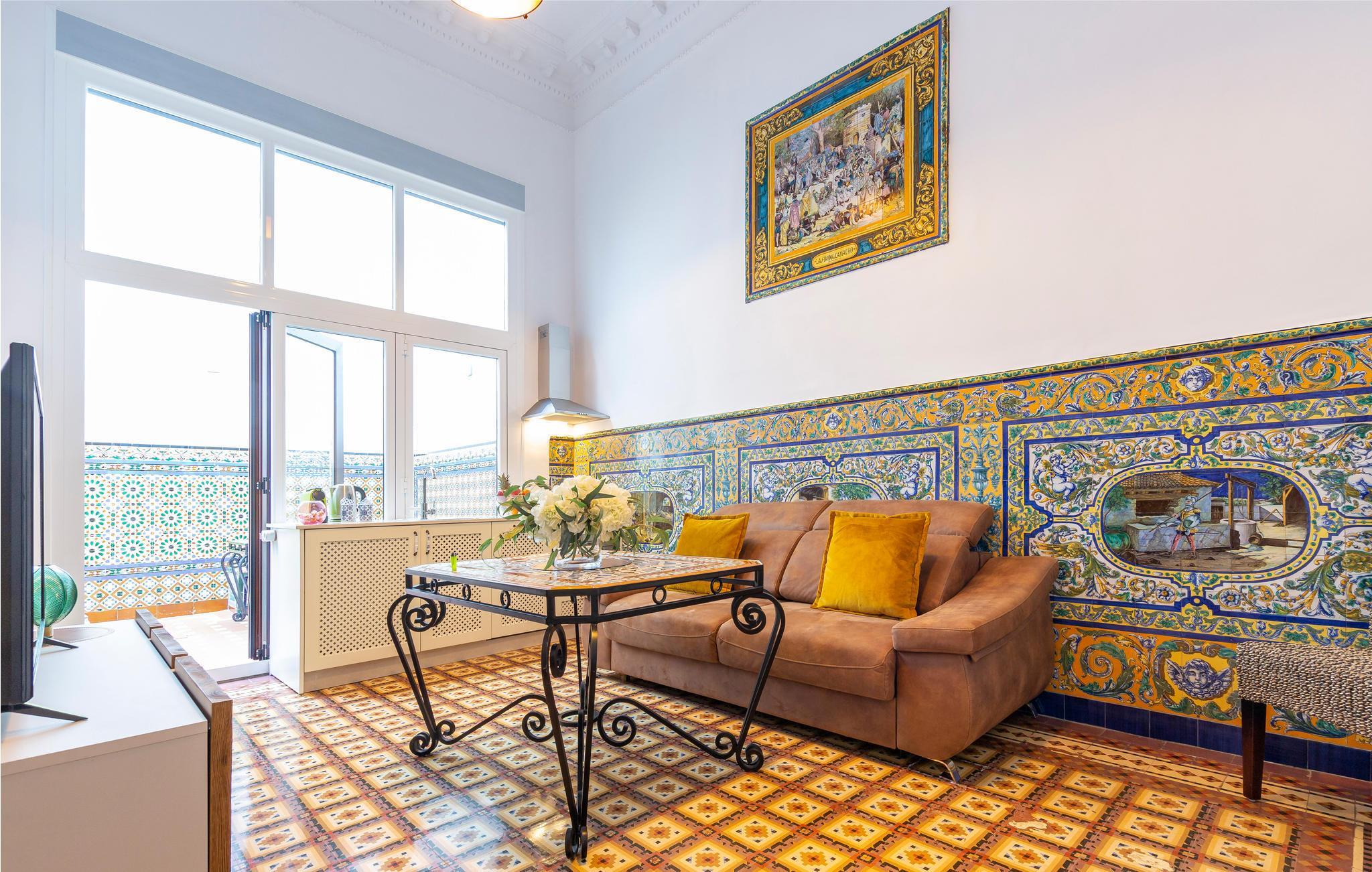 Flot og farverig lejlighed i det historiske centrum af Sevilla.
