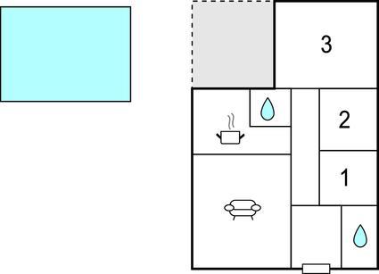 Badeværelse 5m2 (nr. 1) - WC. Varmt og koldt vand. Bruser