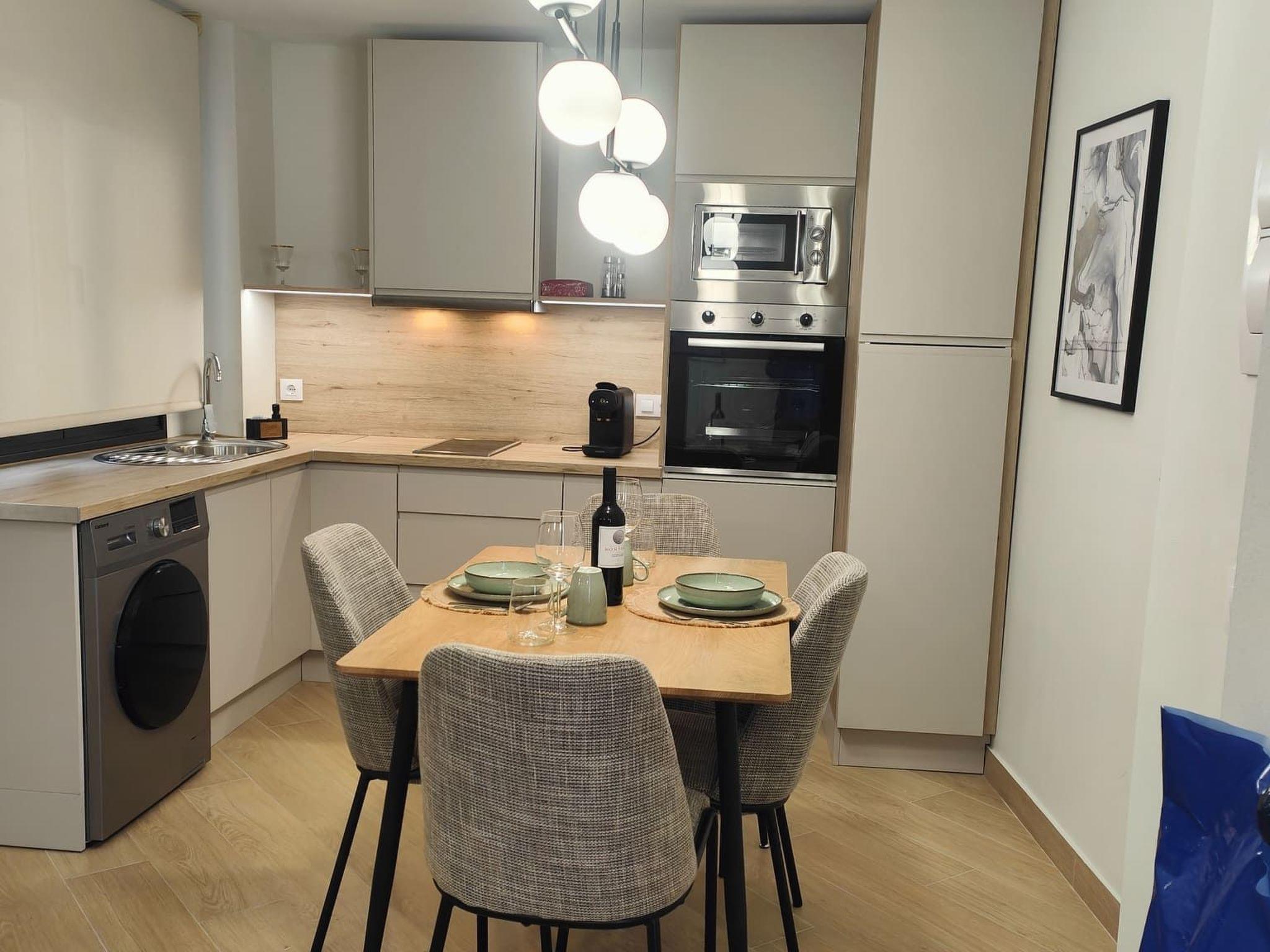 The interior of the flat is equipped with your comfort and convenience in mind. There is air conditioning in all rooms, guaranteeing a cool and pleasant atmosphere all year round. For your moments of relaxation, the living room has a Smart TV and a hydro-massage bathtub, perfect for de-stressing after a day of adventures. In addition, for your convenience, the flat offers a washing machine for your exclusive use and a kitchen equipped with a two-burner ceramic hob and a capsule coffee machine, allowing you to prepare delicious meals and coffees as if you were at home.