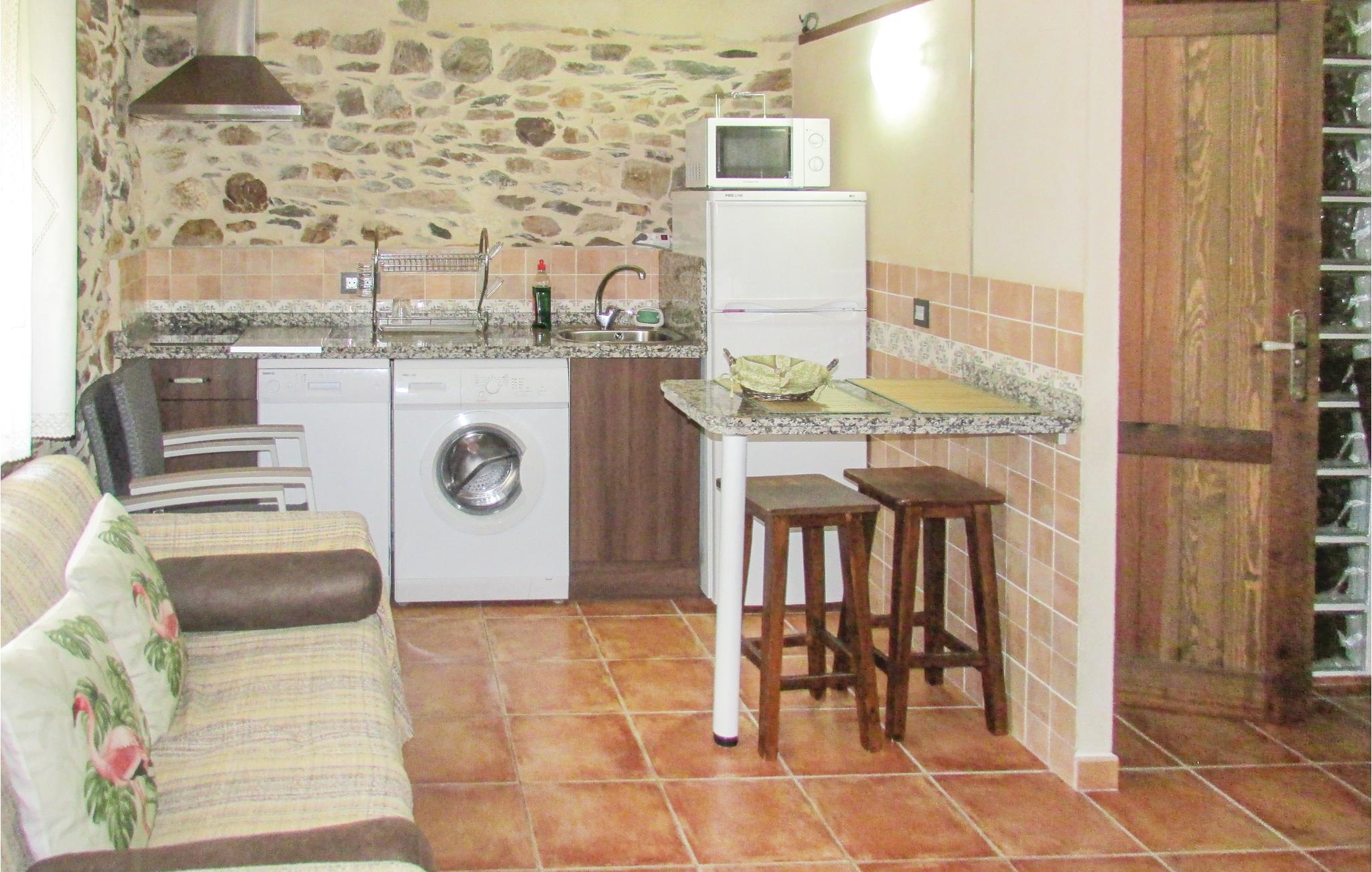 Denne hyggelige ferielejlighed ligger på et pragtfuldt landsted i Aldeanueva de la Sierra. De rustikke stenvægge skaber sammen med de moderne møbler en varm hjemlig atmosfære. På grund af centralvarmen er huset også i vintermånederne et hyggeligt feriested. I dette vidunderlige landskab er der kun tre km til en fantastisk sø. Her kan I bade midt i naturen og nyde det friske søvand, mens I kigger op i den blå himmel og ser de store fugle svæve over jeres hoveder. Hvis I har mere lyst til at bade i en pool, er der fire km til en svømmehal, hvor I kan svømme helt uafhængig af den udendørs temperatur.