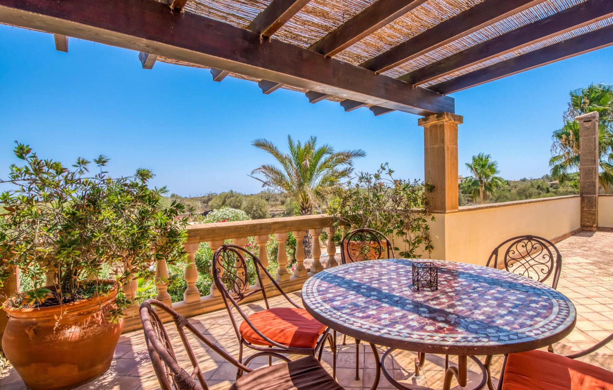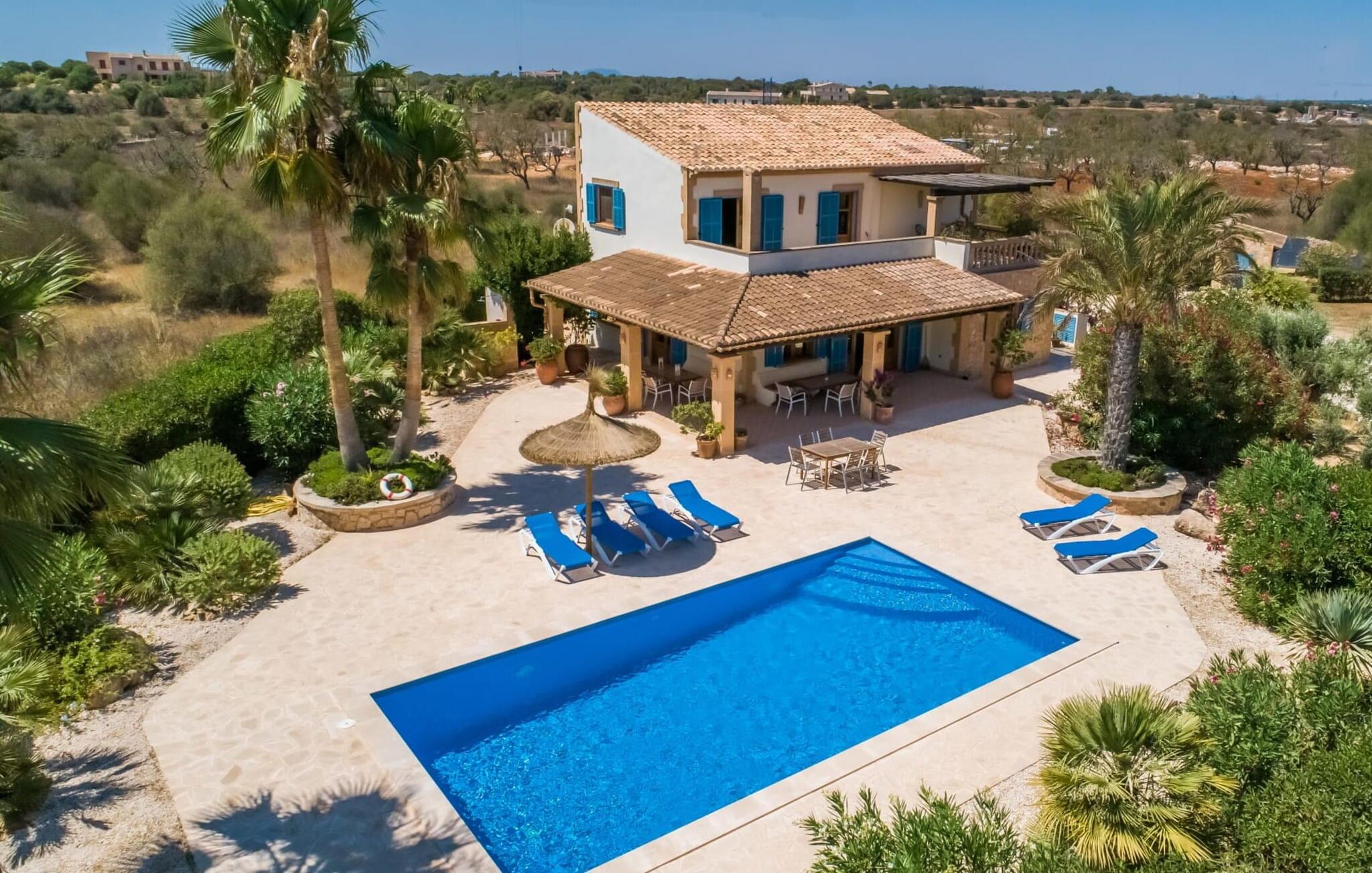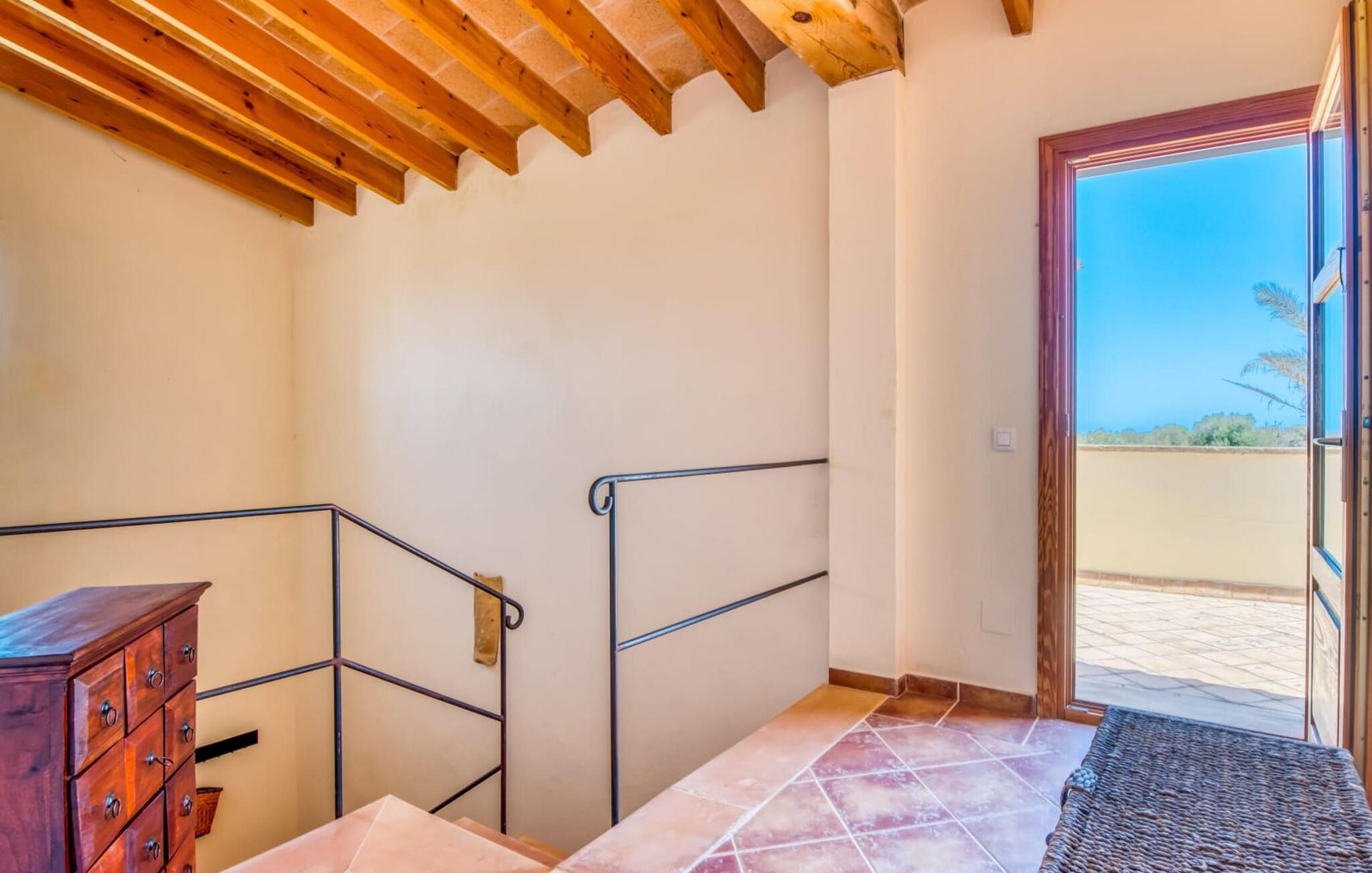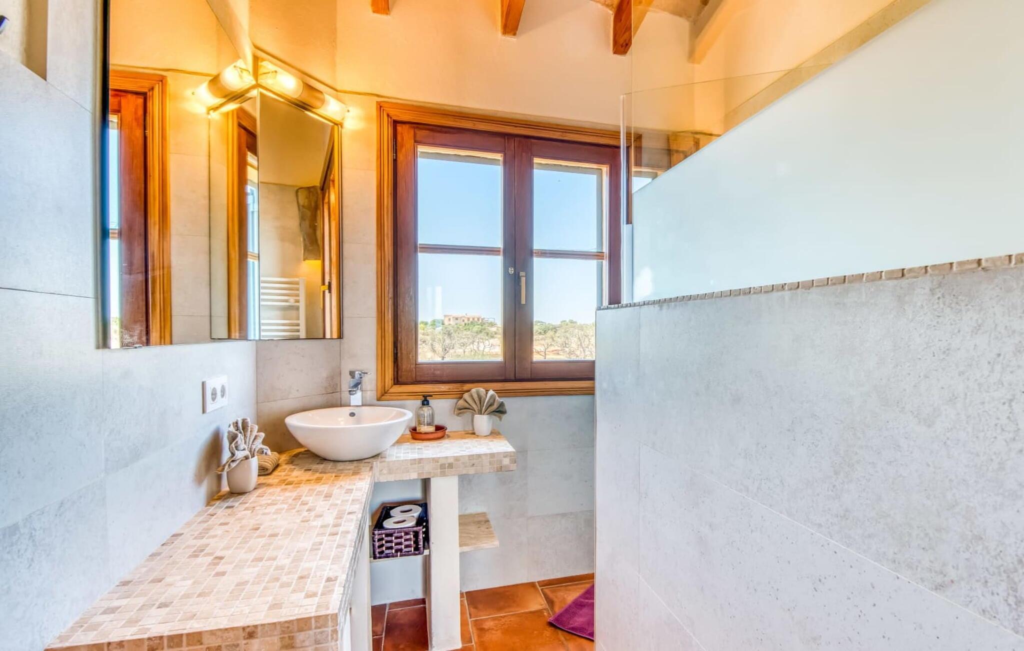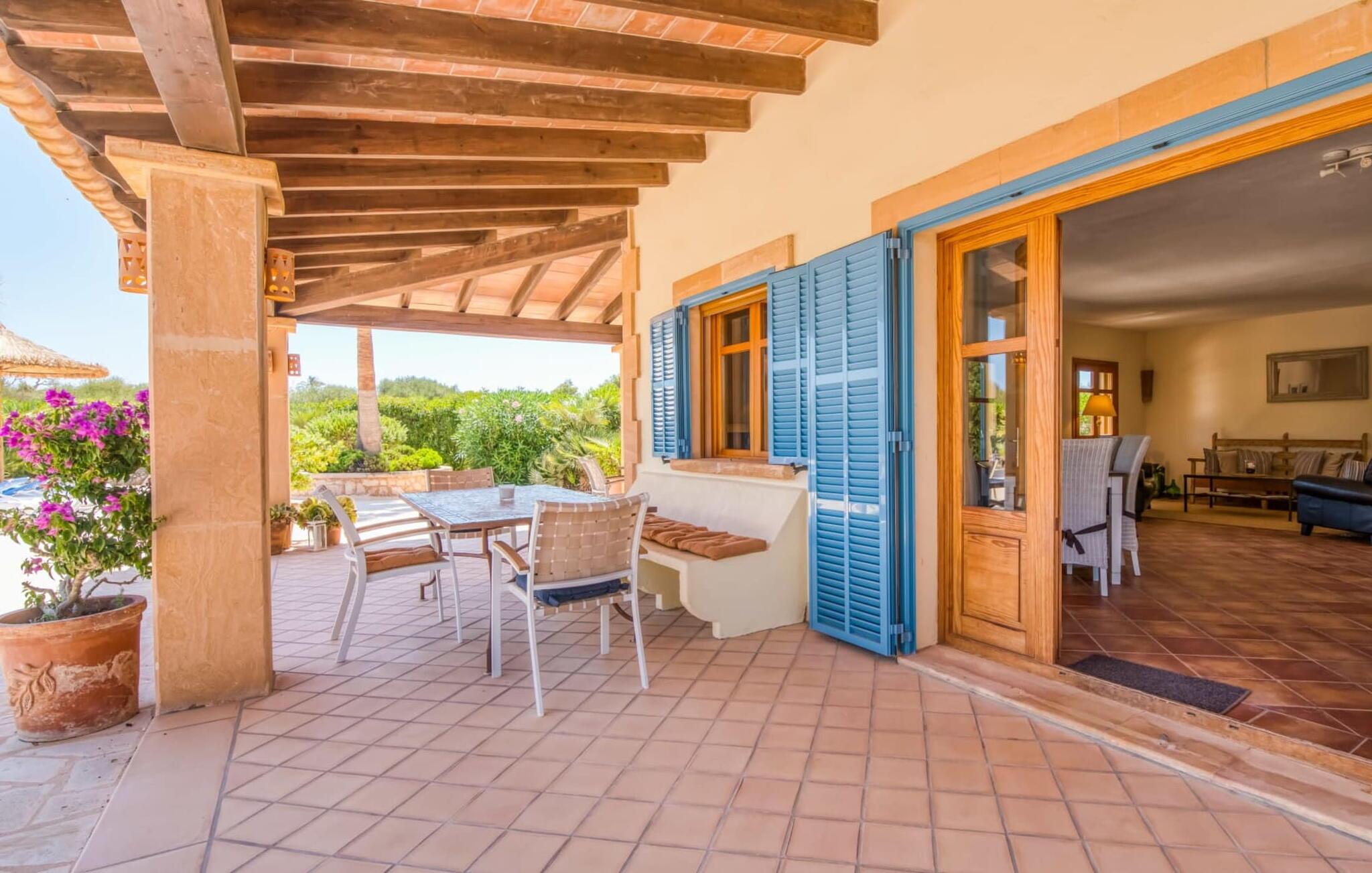 Den familievenlige villa "Sila" imponerer med sin unikke, rolige og helt afsondrede beliggenhed på en grund på næsten 10.000 m² dækket med palmer og oleander. jeres blik strækker sig langt ud over ejendommens grænser, mens I nyder afsondretheden i denne fortryllende villa på baggrund af olivenlunde og landbrugsparceller. Huset ligger dog på ingen måde isoleret, men derimod ved porten til den smukke by Santanyí. I vil hurtigt bemærke, at I bor i nærheden af et af de smukkeste steder på den sydlige del af øen – om ikke med det samme, så helt sikkert, når I nyder den eventyrlige udsigt fra den rummelige altan på øverste etage. I når til huset via en lang indkørsel - den muntre villa med smukke lyseblå skodder og talrige terrasser fremstår så fredfyldt og stille, at I straks vil føle jer helt velkommen. Alt på hele ejendommen og i villaen fremstår særligt naturligt og autentisk - dette understreges også af den frodige have, der omgiver villaen. Den blå himmel afspejles i pool-liggestolene og azurblå skodder omkring den store, private pool på 50 m² med en stor, omgivende naturstenterrasse. Solbad på den indbydende poolterrasse og nyd middagen med hele gruppen i ejendommens overdækkede udendørsarealer. Værelserne er lyse og venlige. Et åbent opholdsområde med to komfortable sofaer inviterer jer til at tilbringe en hyggelig aften med at se tv. Fra stuen er der udgang til en spiseplads med en påklædningsstol til de yngste gæster. Dette opholdsområde byder på letplejede terracotta-farvede fliser, vægge i bløde jordfarver, honningfarvede trævinduer og fliser omdannet til lamper og monteret på væggen, hvilket fremhæver husets særlige naturlige atmosfære. Det komfortable køkken er placeret bag spisepladsen og er funktionelt udstyret med opvaskemaskine, komfur med gas- og keramiske kogeplader, stort fritstående køleskab, kaffemaskine (Nespresso, I skal selv medbringe puder) og meget mere . Med de ægte mallorcanske fliser på vægge og arbejdsflader bidrager dette rum til husets autentiske stil. Af sikkerhedsmæssige årsager bør forældre med små børn bemærke, at trapperne er åbne og kan udgøre en potentiel fare. Der er plads nok til at op til 6 personer (plus en baby) kan slappe af i villaens tre utroligt rummelige og komfortable soveværelser. I soveværelserne finder I de samme smukke gulvfliser, lyse, muntre vægge og delvist fritlagte træbjælker. Begge badeværelser er udstyret med natursten. Hvis I har lyst til en dag på stranden, er de smukkeste strande i den sydlige del af øen kun få minutter væk. Cala Llombards ligger blot 2 km fra villaen. Mange mallorcanere og rejseguider anser det for at være en af de smukkeste badebugter på Mallorca. Den fjordlignende bugt Cala Figuera, kun 4 km væk, er også et besøg værd. Santanyí ligger kun 4,3 km væk, hvilket gør det nemt at komme dertil for at slentre, shoppe, natteliv og sightseeing. Uanset hvordan I ønsker at personliggøre jeres ferie - og aktiviteterne her er næsten ubegrænsede - er vi sikre på, at I vil nyde jeres ferie i landvillaen "Sila" fuldt ud. Villaen "Sila" ligger mellem høje palmer og oleandere på en afsondret ejendom i en rolig beliggenhed nær Santanyí på den sydlige spids af øen. Santanyí ligger kun 4,3 km væk og byder på adskillige butikker og supermarkeder samt gode restauranter og barer. Ikke langt fra Santanyí ligger Cap de ses Salines, som markerer øens sydligste punkt. De smukkeste strande på den 35 km lange kystlinje, herunder Calo des Moro eller Cala Llombard, ligger kun 2 km væk.