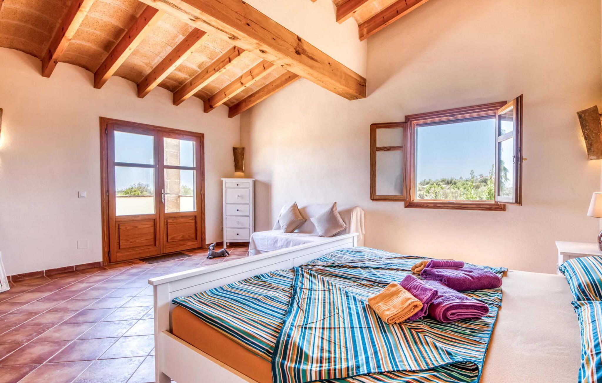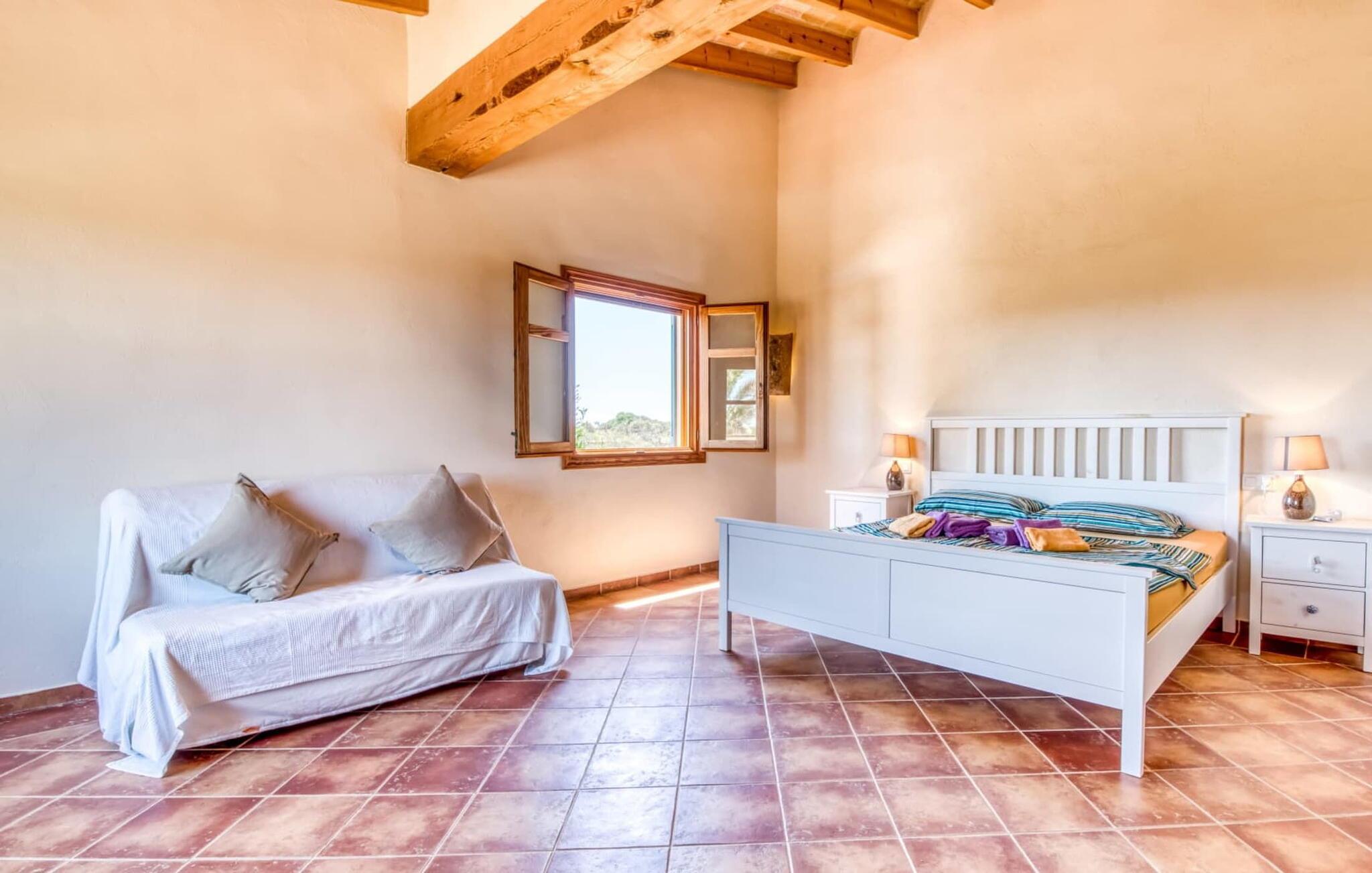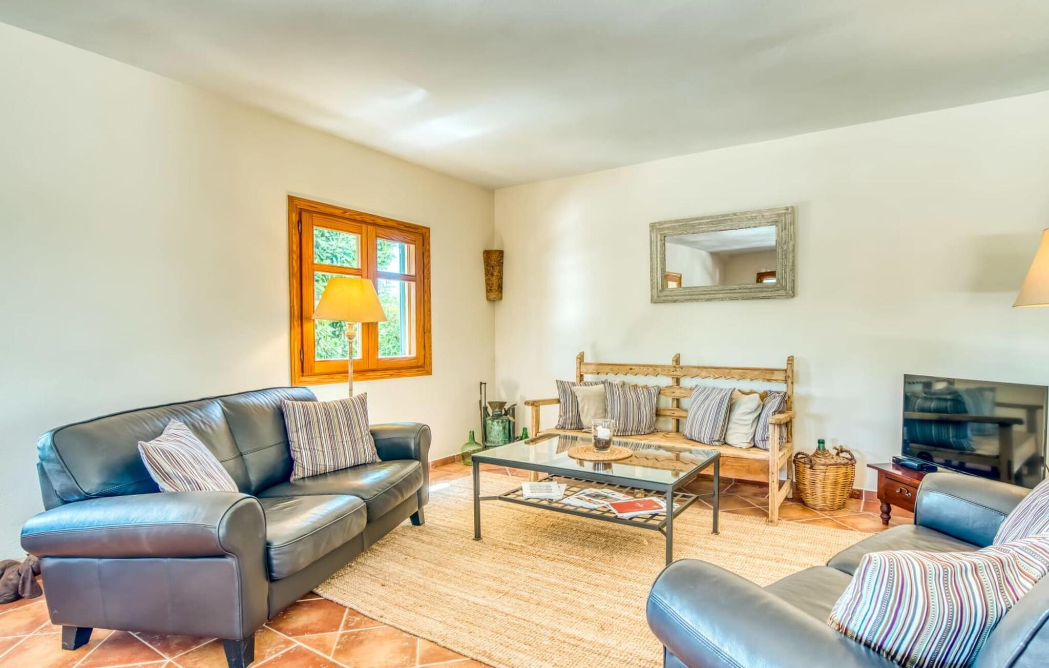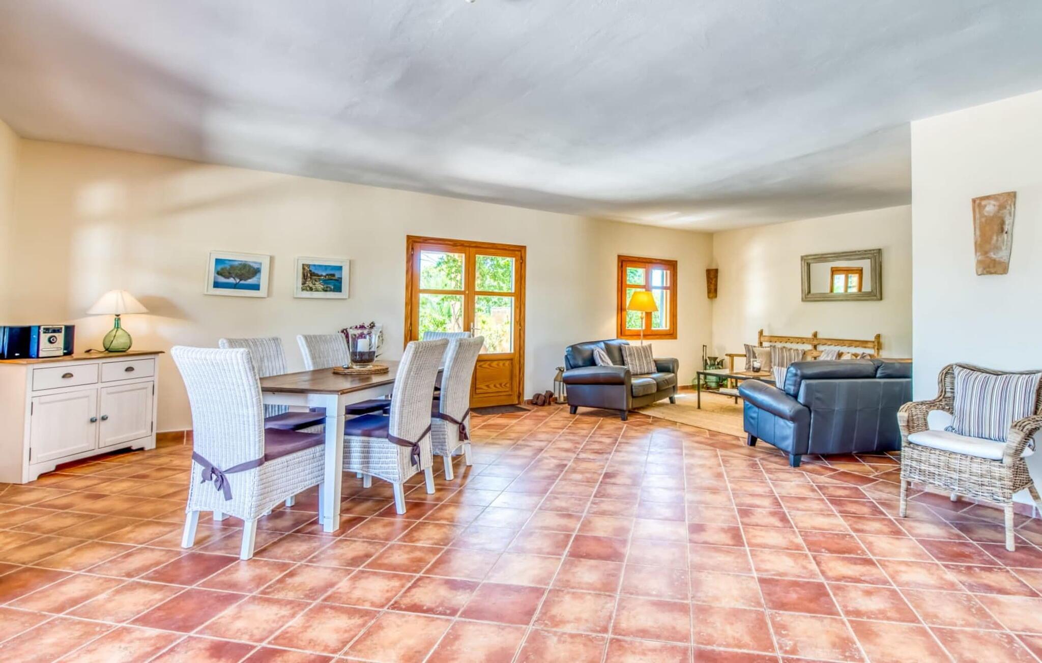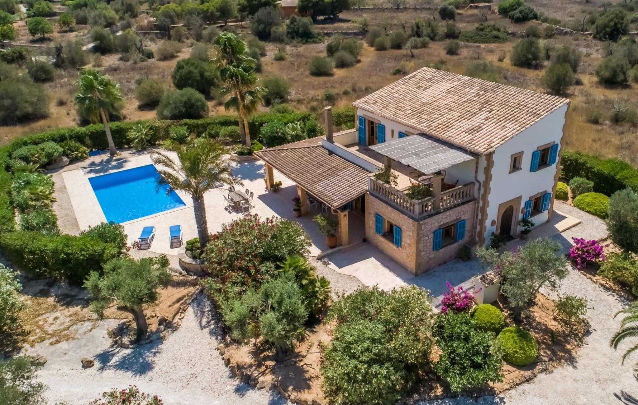 Den familievenlige villa "Sila" imponerer med sin unikke, rolige og helt afsondrede beliggenhed på en grund på næsten 10.000 m² dækket med palmer og oleander. jeres blik strækker sig langt ud over ejendommens grænser, mens I nyder afsondretheden i denne fortryllende villa på baggrund af olivenlunde og landbrugsparceller. Huset ligger dog på ingen måde isoleret, men derimod ved porten til den smukke by Santanyí. I vil hurtigt bemærke, at I bor i nærheden af et af de smukkeste steder på den sydlige del af øen – om ikke med det samme, så helt sikkert, når I nyder den eventyrlige udsigt fra den rummelige altan på øverste etage. I når til huset via en lang indkørsel - den muntre villa med smukke lyseblå skodder og talrige terrasser fremstår så fredfyldt og stille, at I straks vil føle jer helt velkommen. Alt på hele ejendommen og i villaen fremstår særligt naturligt og autentisk - dette understreges også af den frodige have, der omgiver villaen. Den blå himmel afspejles i pool-liggestolene og azurblå skodder omkring den store, private pool på 50 m² med en stor, omgivende naturstenterrasse. Solbad på den indbydende poolterrasse og nyd middagen med hele gruppen i ejendommens overdækkede udendørsarealer. Værelserne er lyse og venlige. Et åbent opholdsområde med to komfortable sofaer inviterer jer til at tilbringe en hyggelig aften med at se tv. Fra stuen er der udgang til en spiseplads med en påklædningsstol til de yngste gæster. Dette opholdsområde byder på letplejede terracotta-farvede fliser, vægge i bløde jordfarver, honningfarvede trævinduer og fliser omdannet til lamper og monteret på væggen, hvilket fremhæver husets særlige naturlige atmosfære. Det komfortable køkken er placeret bag spisepladsen og er funktionelt udstyret med opvaskemaskine, komfur med gas- og keramiske kogeplader, stort fritstående køleskab, kaffemaskine (Nespresso, I skal selv medbringe puder) og meget mere . Med de ægte mallorcanske fliser på vægge og arbejdsflader bidrager dette rum til husets autentiske stil. Af sikkerhedsmæssige årsager bør forældre med små børn bemærke, at trapperne er åbne og kan udgøre en potentiel fare. Der er plads nok til at op til 6 personer (plus en baby) kan slappe af i villaens tre utroligt rummelige og komfortable soveværelser. I soveværelserne finder I de samme smukke gulvfliser, lyse, muntre vægge og delvist fritlagte træbjælker. Begge badeværelser er udstyret med natursten. Hvis I har lyst til en dag på stranden, er de smukkeste strande i den sydlige del af øen kun få minutter væk. Cala Llombards ligger blot 2 km fra villaen. Mange mallorcanere og rejseguider anser det for at være en af de smukkeste badebugter på Mallorca. Den fjordlignende bugt Cala Figuera, kun 4 km væk, er også et besøg værd. Santanyí ligger kun 4,3 km væk, hvilket gør det nemt at komme dertil for at slentre, shoppe, natteliv og sightseeing. Uanset hvordan I ønsker at personliggøre jeres ferie - og aktiviteterne her er næsten ubegrænsede - er vi sikre på, at I vil nyde jeres ferie i landvillaen "Sila" fuldt ud. Villaen "Sila" ligger mellem høje palmer og oleandere på en afsondret ejendom i en rolig beliggenhed nær Santanyí på den sydlige spids af øen. Santanyí ligger kun 4,3 km væk og byder på adskillige butikker og supermarkeder samt gode restauranter og barer. Ikke langt fra Santanyí ligger Cap de ses Salines, som markerer øens sydligste punkt. De smukkeste strande på den 35 km lange kystlinje, herunder Calo des Moro eller Cala Llombard, ligger kun 2 km væk.