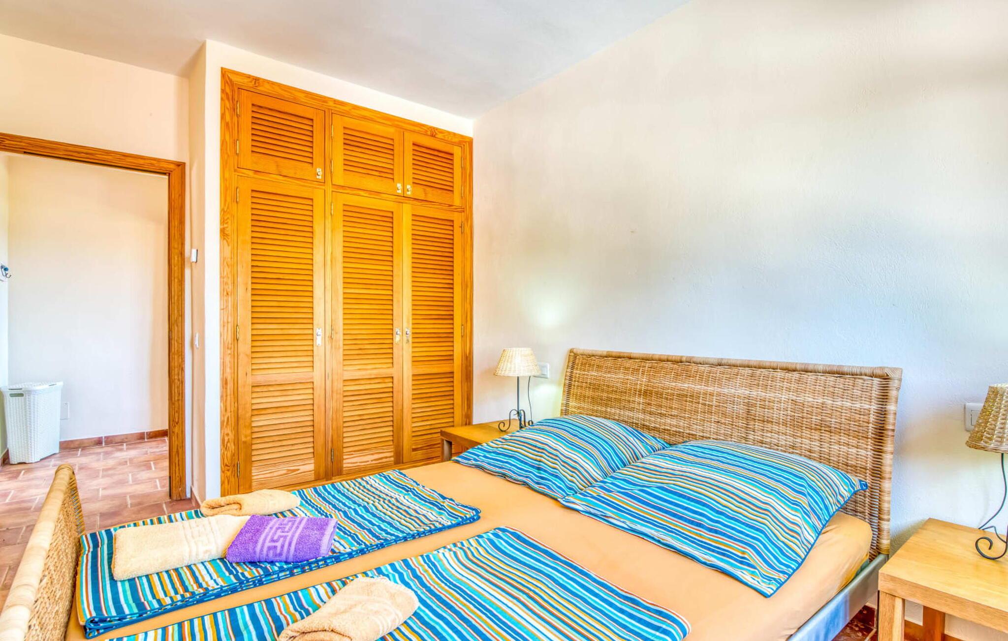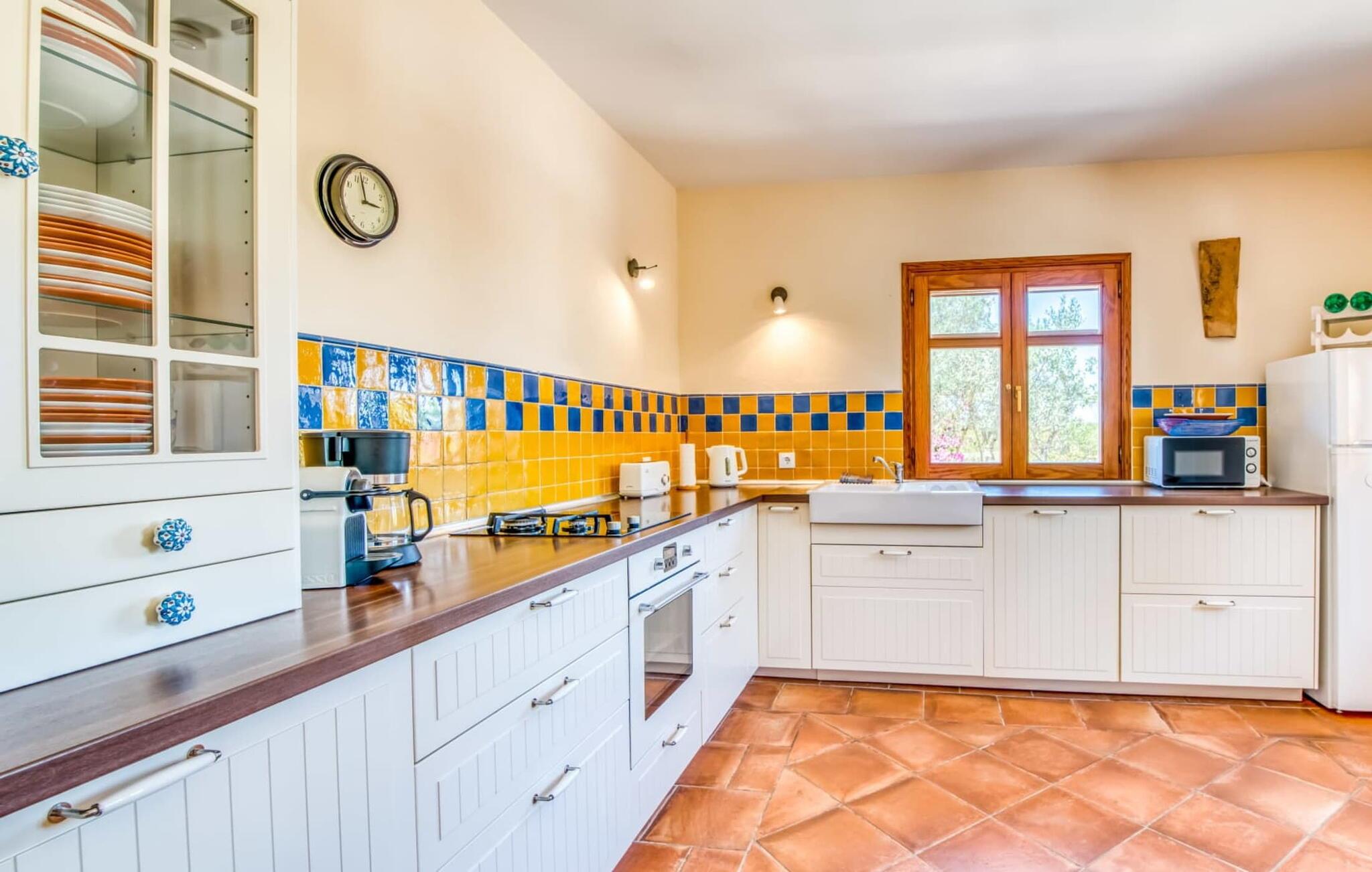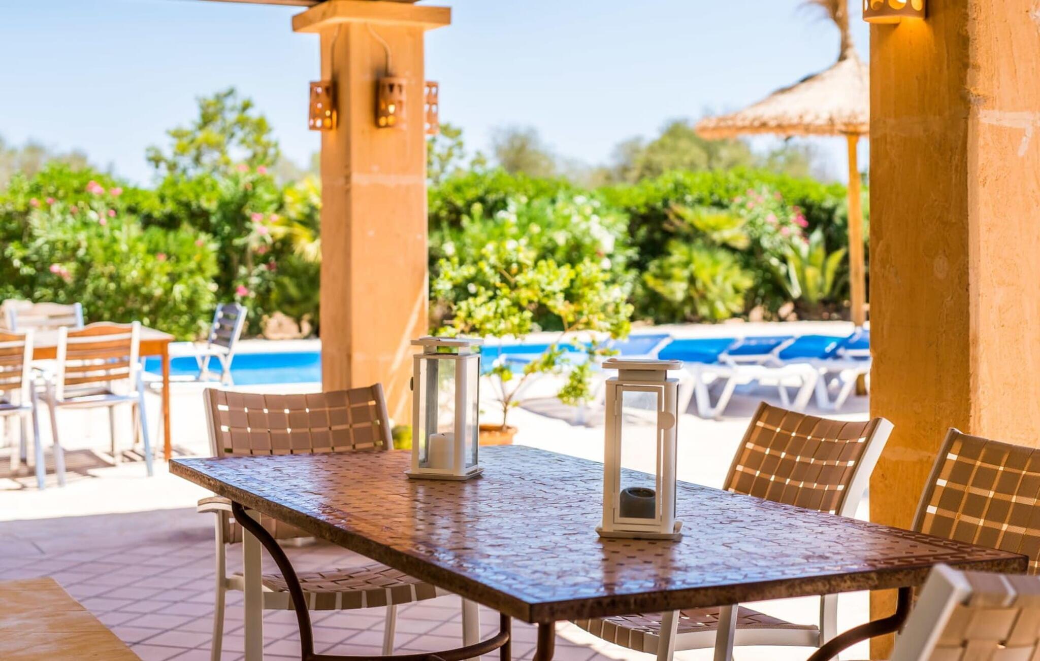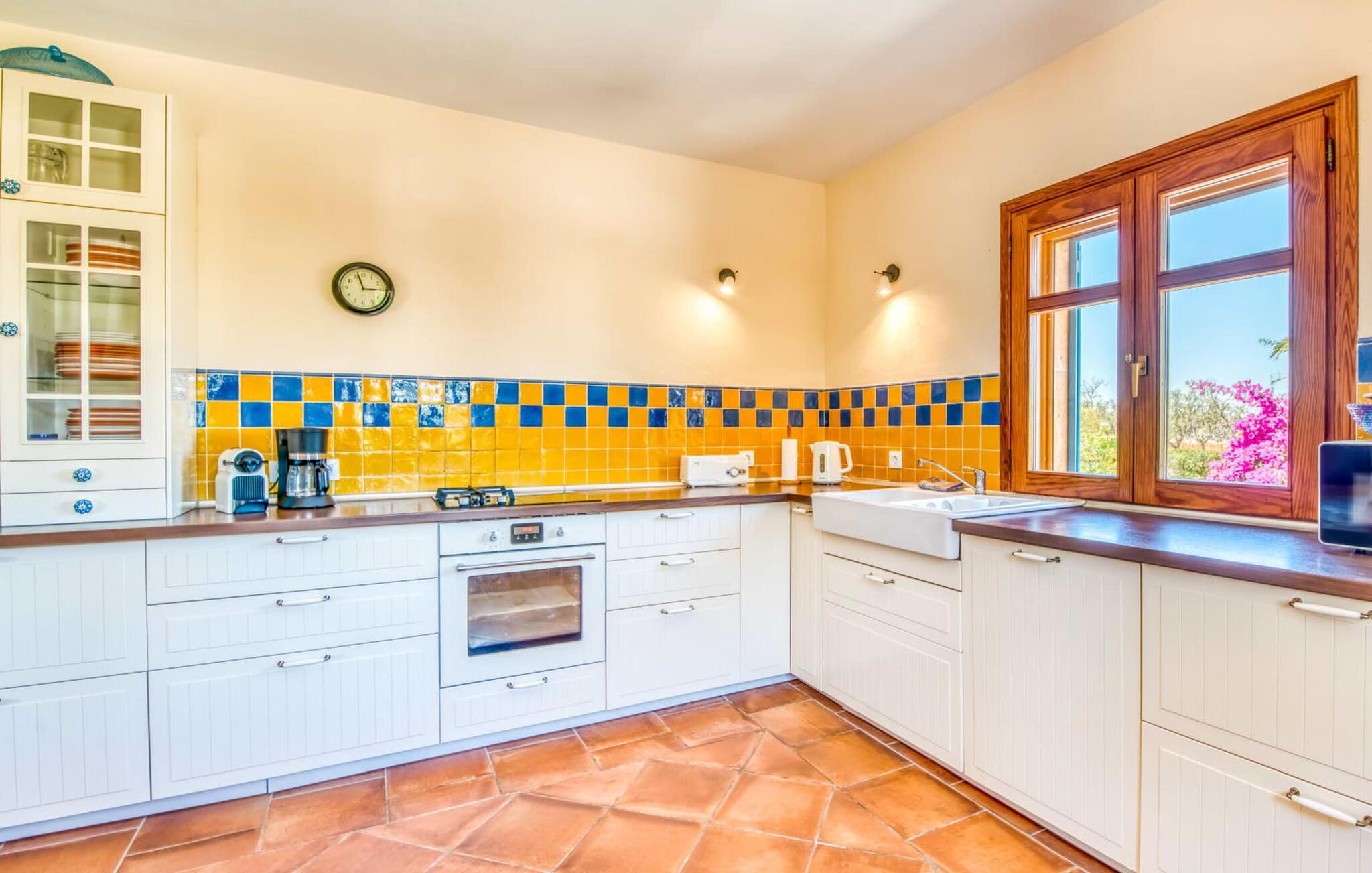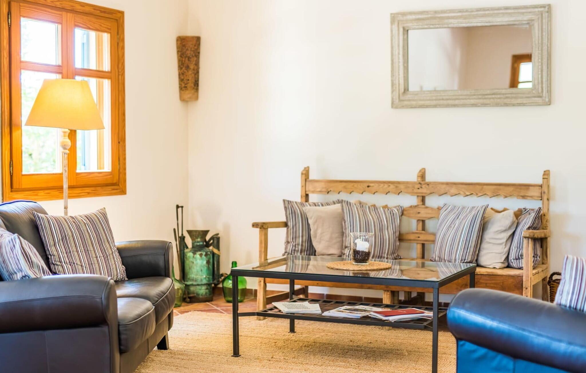 Den familievenlige villa "Sila" imponerer med sin unikke, rolige og helt afsondrede beliggenhed på en grund på næsten 10.000 m² dækket med palmer og oleander. jeres blik strækker sig langt ud over ejendommens grænser, mens I nyder afsondretheden i denne fortryllende villa på baggrund af olivenlunde og landbrugsparceller. Huset ligger dog på ingen måde isoleret, men derimod ved porten til den smukke by Santanyí. I vil hurtigt bemærke, at I bor i nærheden af et af de smukkeste steder på den sydlige del af øen – om ikke med det samme, så helt sikkert, når I nyder den eventyrlige udsigt fra den rummelige altan på øverste etage. I når til huset via en lang indkørsel - den muntre villa med smukke lyseblå skodder og talrige terrasser fremstår så fredfyldt og stille, at I straks vil føle jer helt velkommen. Alt på hele ejendommen og i villaen fremstår særligt naturligt og autentisk - dette understreges også af den frodige have, der omgiver villaen. Den blå himmel afspejles i pool-liggestolene og azurblå skodder omkring den store, private pool på 50 m² med en stor, omgivende naturstenterrasse. Solbad på den indbydende poolterrasse og nyd middagen med hele gruppen i ejendommens overdækkede udendørsarealer. Værelserne er lyse og venlige. Et åbent opholdsområde med to komfortable sofaer inviterer jer til at tilbringe en hyggelig aften med at se tv. Fra stuen er der udgang til en spiseplads med en påklædningsstol til de yngste gæster. Dette opholdsområde byder på letplejede terracotta-farvede fliser, vægge i bløde jordfarver, honningfarvede trævinduer og fliser omdannet til lamper og monteret på væggen, hvilket fremhæver husets særlige naturlige atmosfære. Det komfortable køkken er placeret bag spisepladsen og er funktionelt udstyret med opvaskemaskine, komfur med gas- og keramiske kogeplader, stort fritstående køleskab, kaffemaskine (Nespresso, I skal selv medbringe puder) og meget mere . Med de ægte mallorcanske fliser på vægge og arbejdsflader bidrager dette rum til husets autentiske stil. Af sikkerhedsmæssige årsager bør forældre med små børn bemærke, at trapperne er åbne og kan udgøre en potentiel fare. Der er plads nok til at op til 6 personer (plus en baby) kan slappe af i villaens tre utroligt rummelige og komfortable soveværelser. I soveværelserne finder I de samme smukke gulvfliser, lyse, muntre vægge og delvist fritlagte træbjælker. Begge badeværelser er udstyret med natursten. Hvis I har lyst til en dag på stranden, er de smukkeste strande i den sydlige del af øen kun få minutter væk. Cala Llombards ligger blot 2 km fra villaen. Mange mallorcanere og rejseguider anser det for at være en af de smukkeste badebugter på Mallorca. Den fjordlignende bugt Cala Figuera, kun 4 km væk, er også et besøg værd. Santanyí ligger kun 4,3 km væk, hvilket gør det nemt at komme dertil for at slentre, shoppe, natteliv og sightseeing. Uanset hvordan I ønsker at personliggøre jeres ferie - og aktiviteterne her er næsten ubegrænsede - er vi sikre på, at I vil nyde jeres ferie i landvillaen "Sila" fuldt ud. Villaen "Sila" ligger mellem høje palmer og oleandere på en afsondret ejendom i en rolig beliggenhed nær Santanyí på den sydlige spids af øen. Santanyí ligger kun 4,3 km væk og byder på adskillige butikker og supermarkeder samt gode restauranter og barer. Ikke langt fra Santanyí ligger Cap de ses Salines, som markerer øens sydligste punkt. De smukkeste strande på den 35 km lange kystlinje, herunder Calo des Moro eller Cala Llombard, ligger kun 2 km væk.