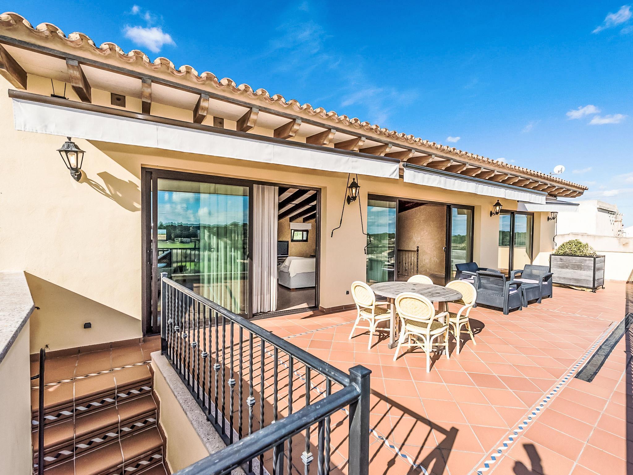 Sineu: Large, beautiful house "Ses Vistes", 2 storeys, renovated. In the resort 400 m from the centre of Sineu, in a quiet, sunny position, 2.5 km from the edge of the forest, 24 km from the sea, 24 km from the beach. Private: pergola (47 m2), terrace (47 m2), garden furniture, barbecue. In the house: internet access, WiFi, storage room for bicycles, air conditioning, washing machine. Single garage at the house. Grocery, supermarket 500 m, restaurant, bar 400 m, bakery 380 m, pedestrian zone 400 m, 4 minute walk to the centre, bus stop 400 m, railway station 900 m, sandy beach 24 km, rocky beach 25 km, outdoor swimming pool 900 m. Sports harbour 25 km, golf course (18 hole) 15 km, tennis 900 m, riding stable 14 km, sports centre 900 m. Please note: no lift. Suitable for seniors, not suitable for small children. Object suitable for 5 adults. The owner does not accept any youth groups. Loading and unloading of baggage is possible at the holiday house. Airfield 35 km from the property. Neighbourhood highly sensitive to noise. Quietness and good behaviour expected.