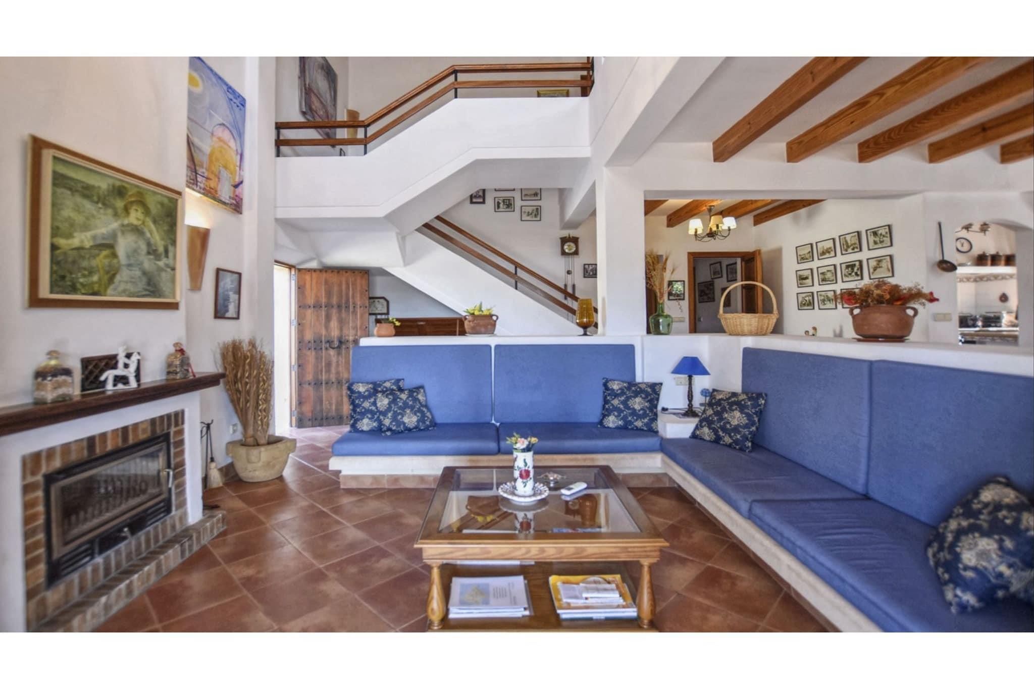 Denne charmerende og samtidig hyggelige landejendom ligger i udkanten af byen Sineu, i centrum af Mallorca, kendt for sit autentiske ugentlige marked. På trods af øens meget centrale beliggenhed kan du nå fantastiske strande som Can Picafort og Playas de Muro på kun omkring 15 minutter i bil. Selve ejendommen har en fantastisk landlig beliggenhed på en lille bakke med en fantastisk udsigt, der garanterer uforglemmelige solnedgange. Vi gør dog opmærksom på, at man kan høre en del trafikstøj på den tilstødende gade. Huset med et boligareal på ca. 220 m² byder i to etager på en rummelig og lys stue-spisestue og det tilstødende køkken med morgenmadsbar. Der er i alt fire soveværelser (2x dobbeltseng, 1x mindre dobbeltseng, 1x hver enkeltseng) og 3 badeværelser, så der er plads nok til op til 8 personer. Stuen og alle soveværelser har aircondition.